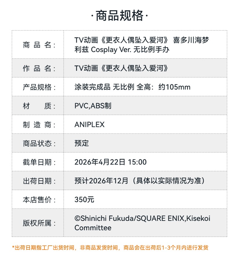 【GSC预售定金】喜多川海梦 利兹 Cosplay Ver. 无比例手办 TV动画《更衣人偶坠入爱河》