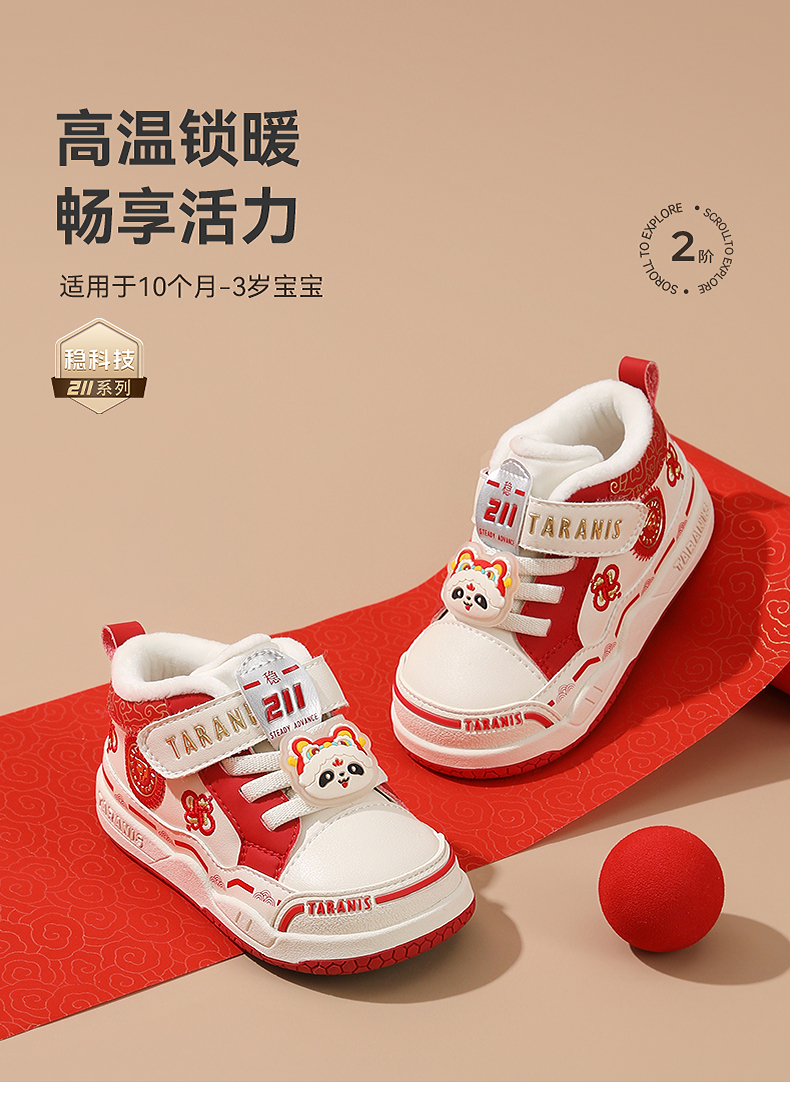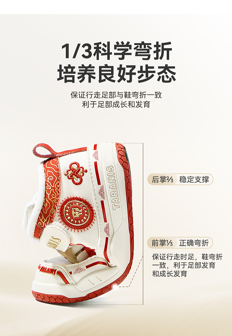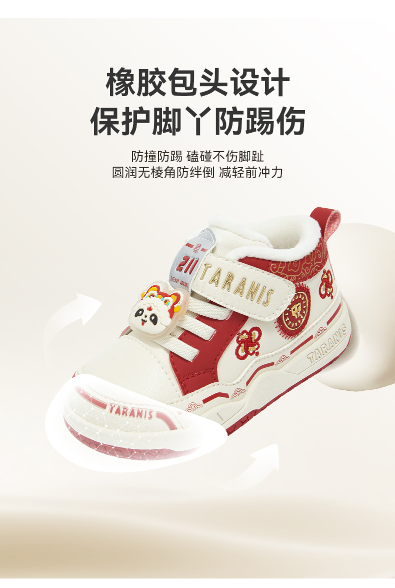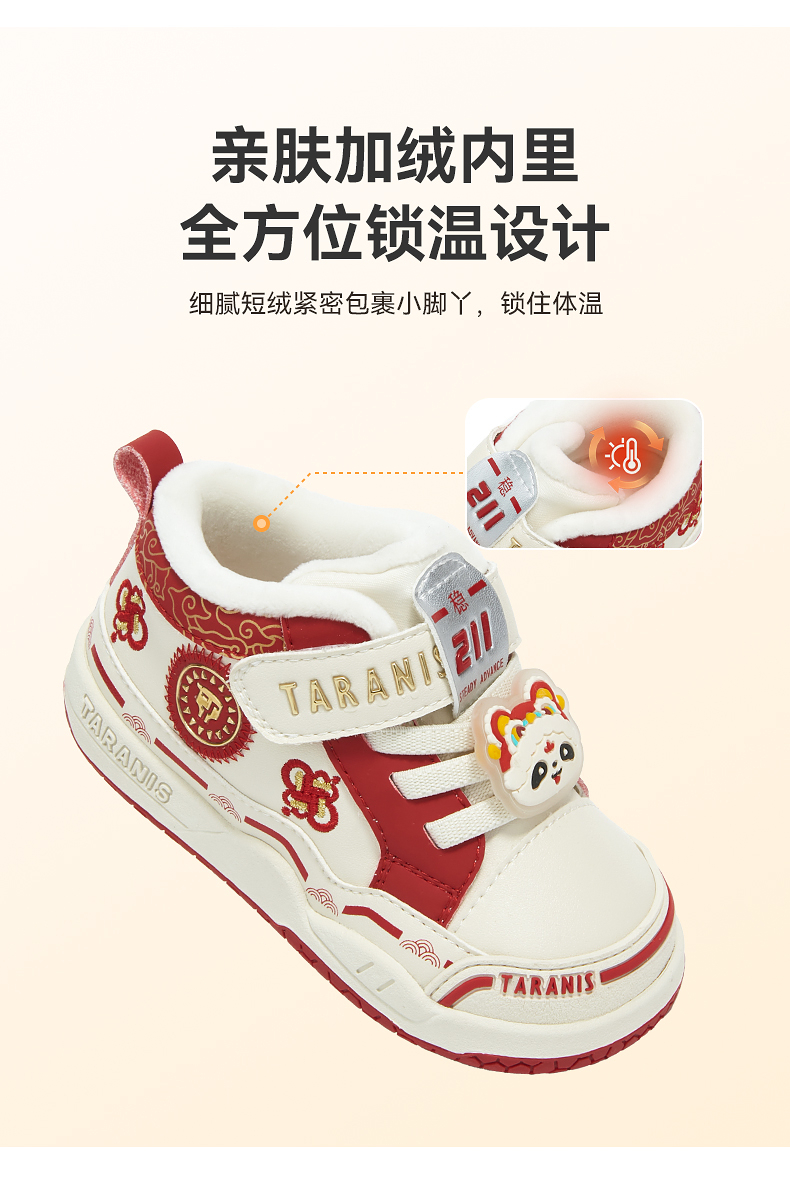 泰兰尼斯211学步鞋男宝宝冬季新年款童鞋防滑机能鞋加绒保暖女童T25T5D7527