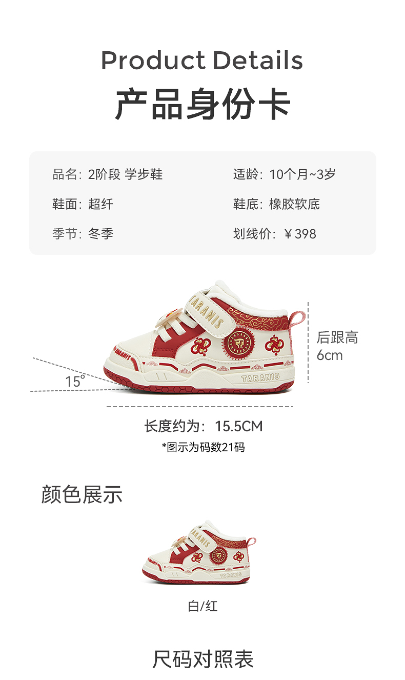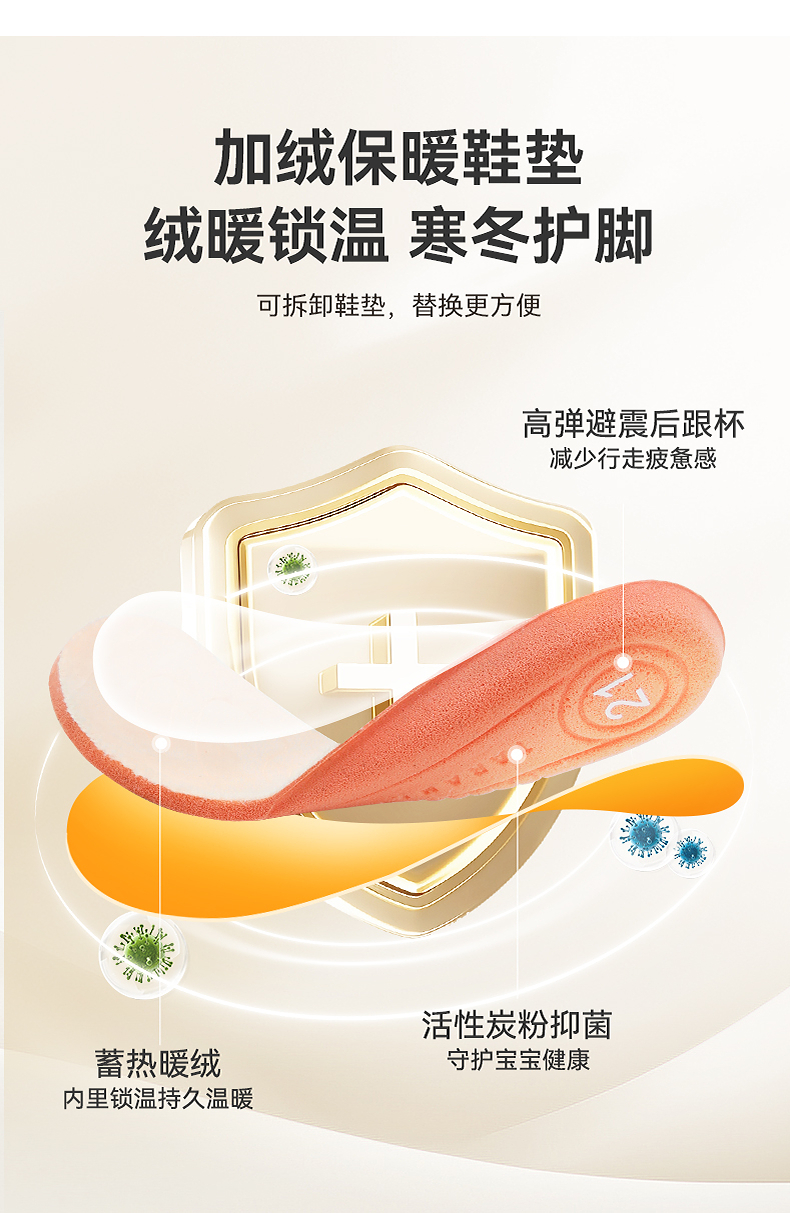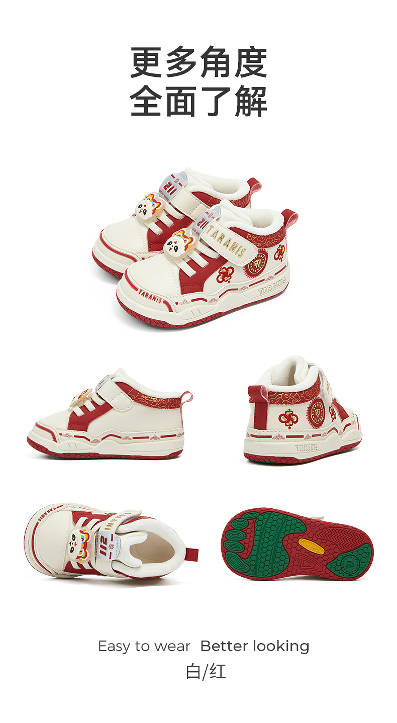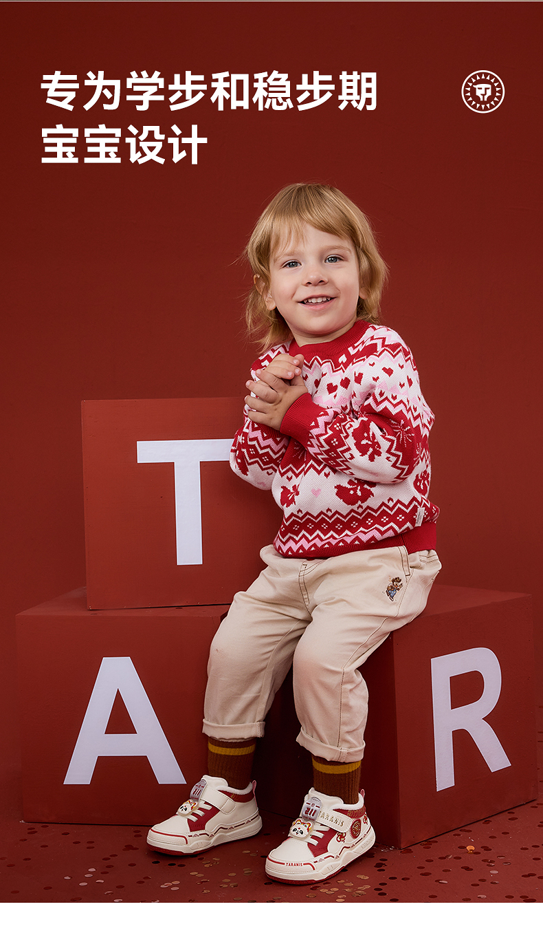 泰兰尼斯211学步鞋男宝宝冬季新年款童鞋防滑机能鞋加绒保暖女童T25T5D7527