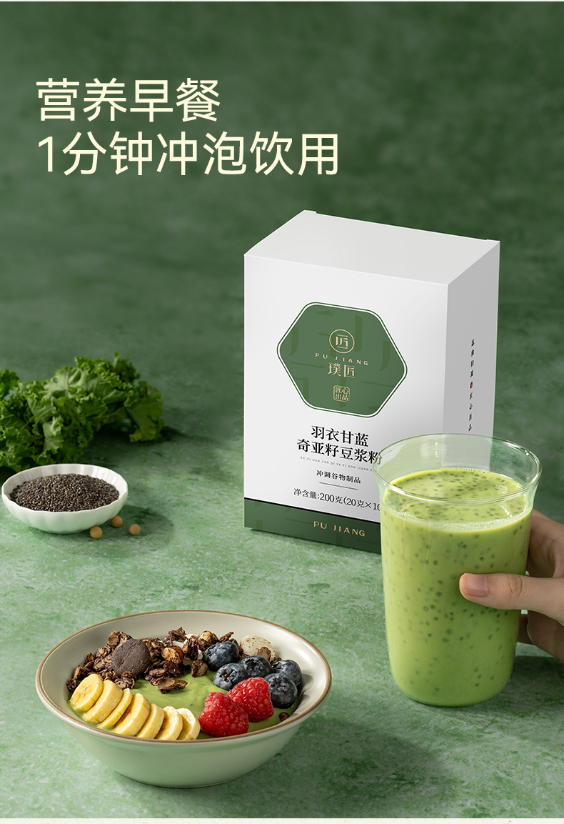 璞匠羽衣甘蓝奇亚籽豆浆粉官方旗舰店冲泡即食营养早餐健身代餐粉