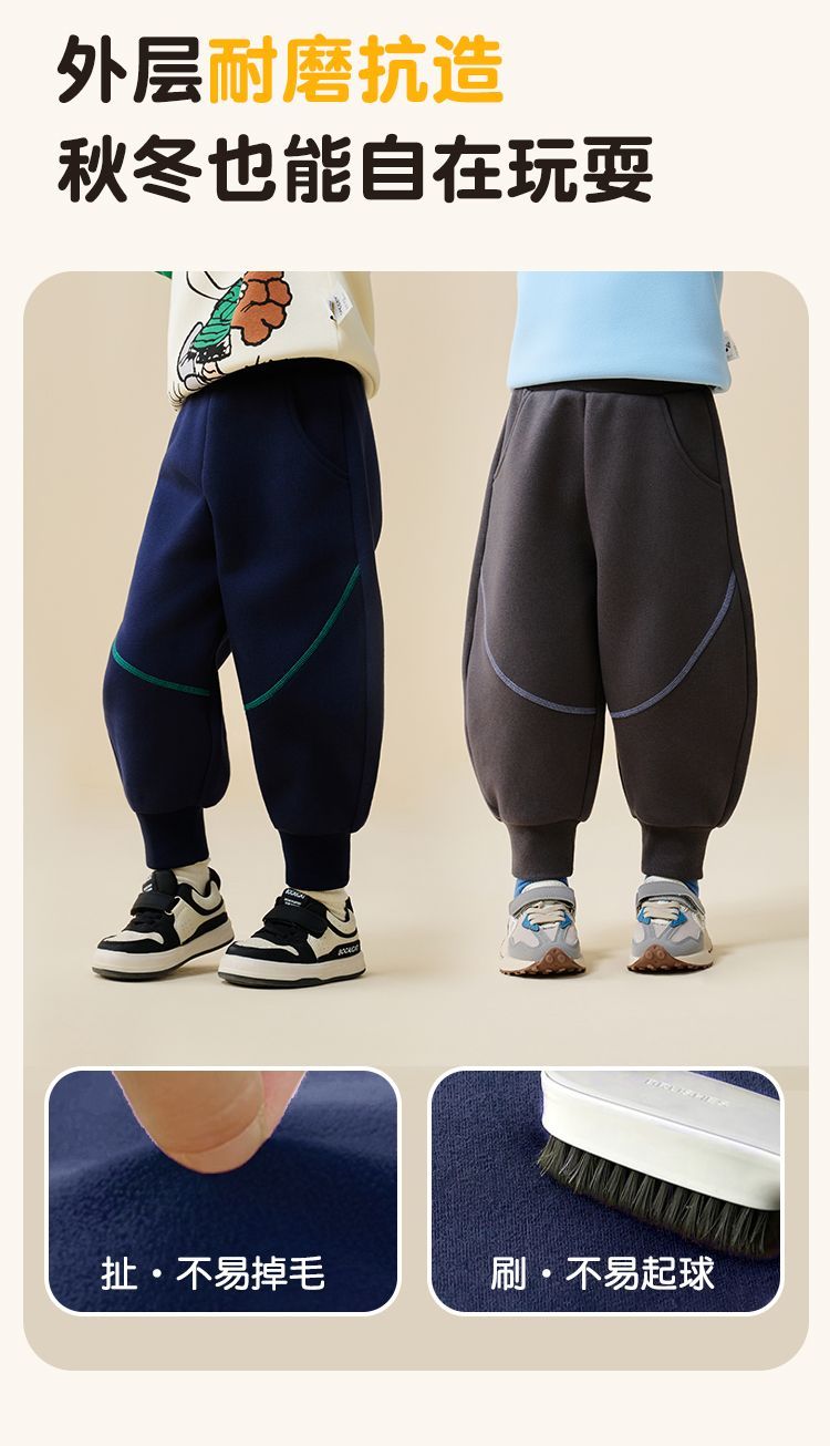 【90-130】【加绒】【史努比】冬季男童羊羔绒加绒保暖卫裤