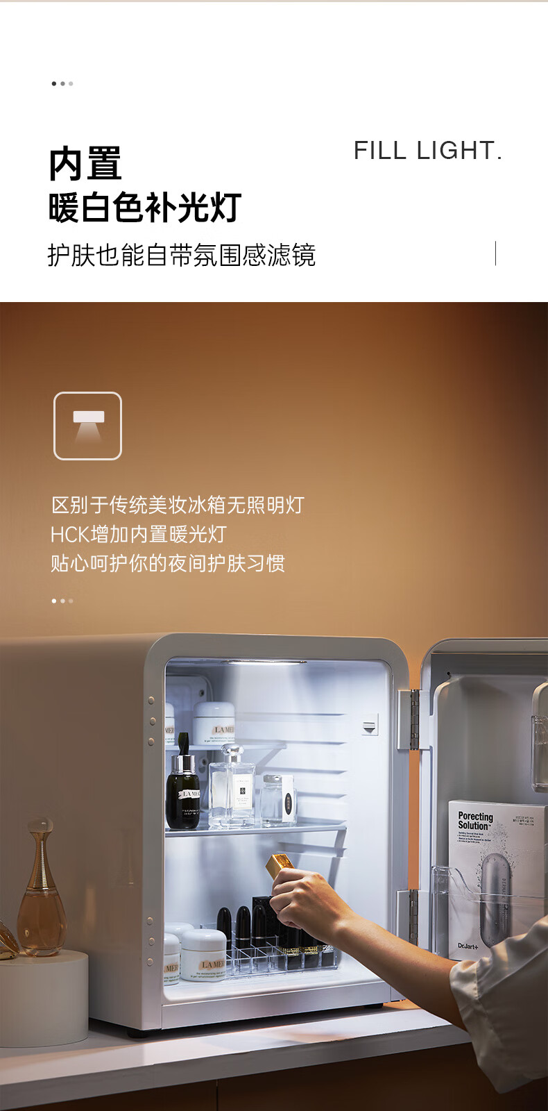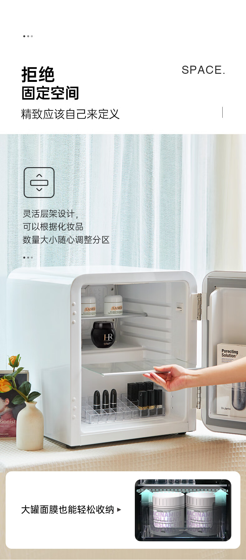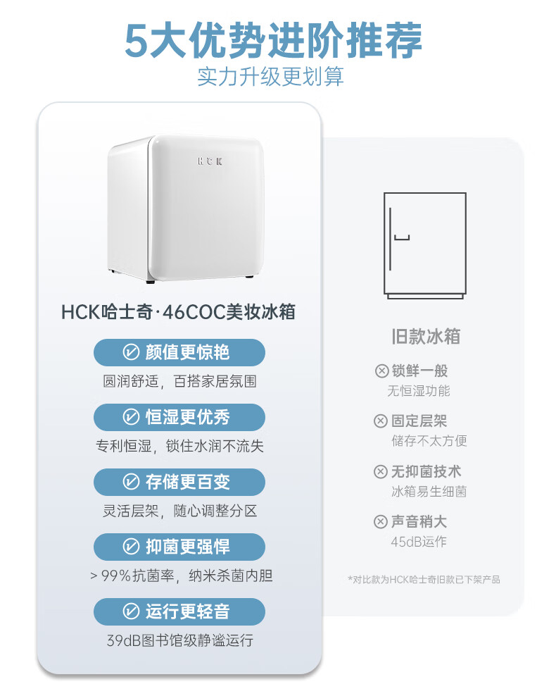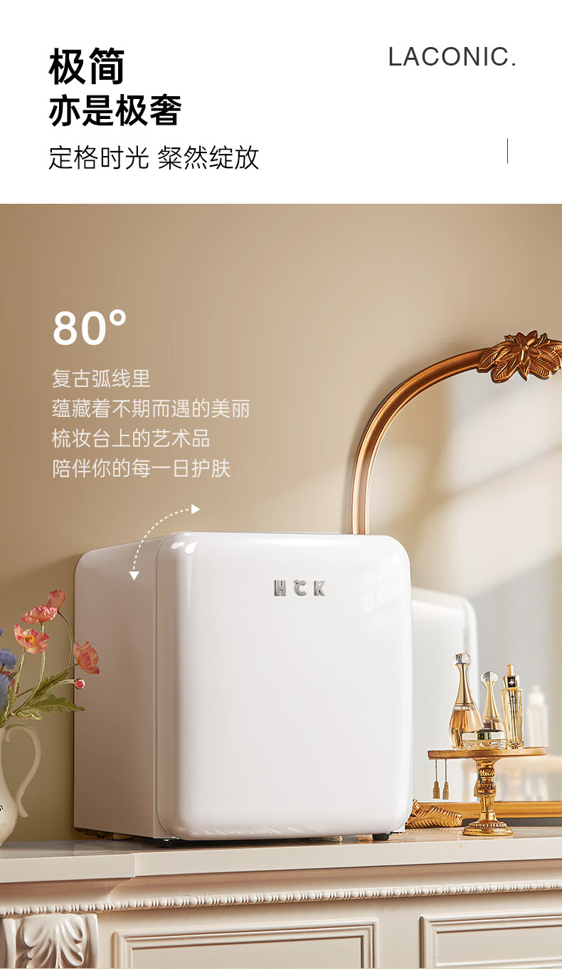 哈士奇 BC-46COC白色 客厅冰箱复古小型化妆品专用护肤品面膜美容美妆香水冰箱迷你型精准控温42升
