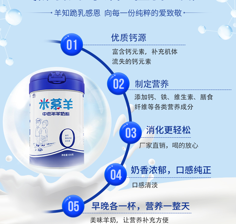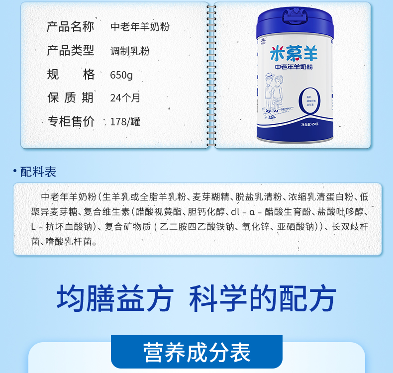【羊羊羊】羊羊羊米慕羊中老年羊奶粉无蔗糖成人高钙羊奶粉650g