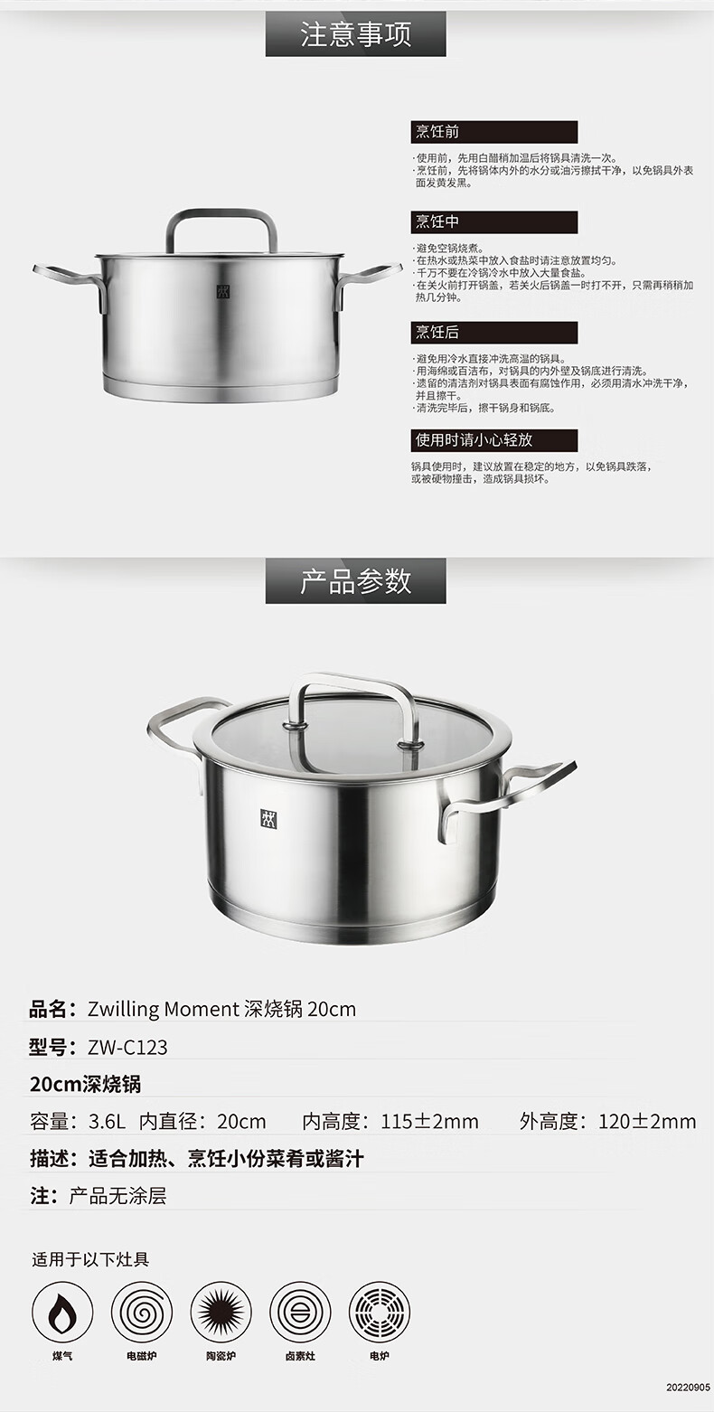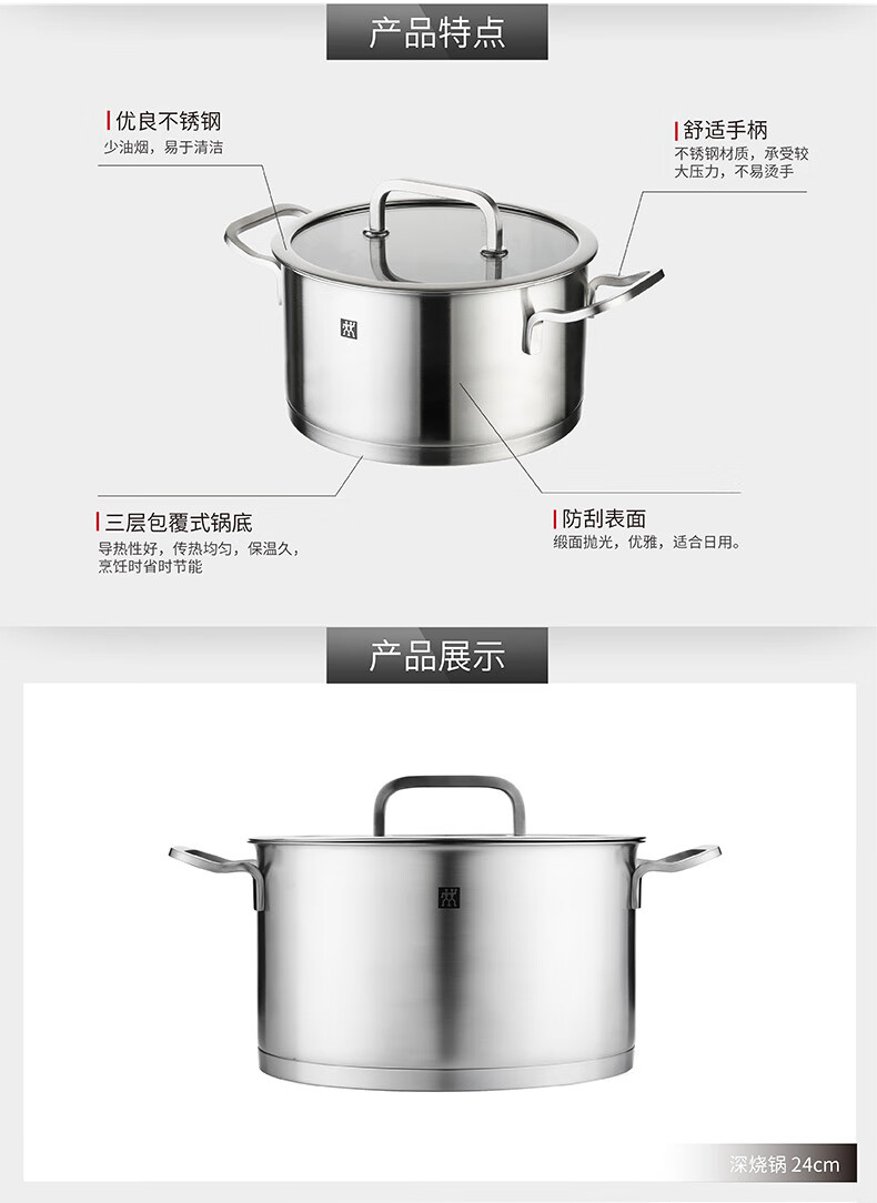 双立人(ZWILLING)Moment深烧锅锅具特渠 ZW-C131 24cm