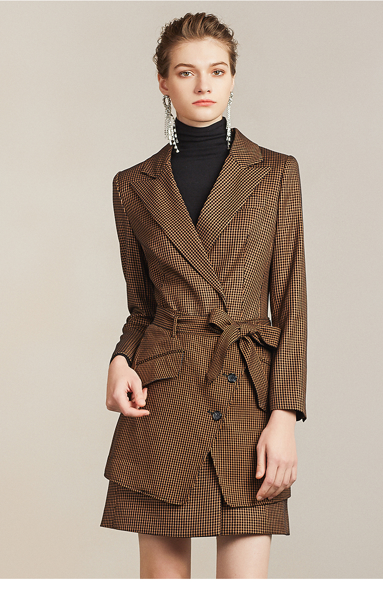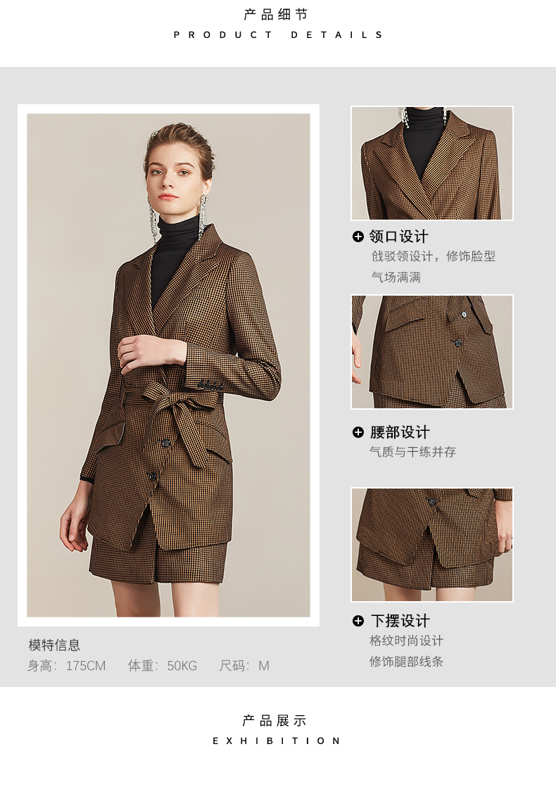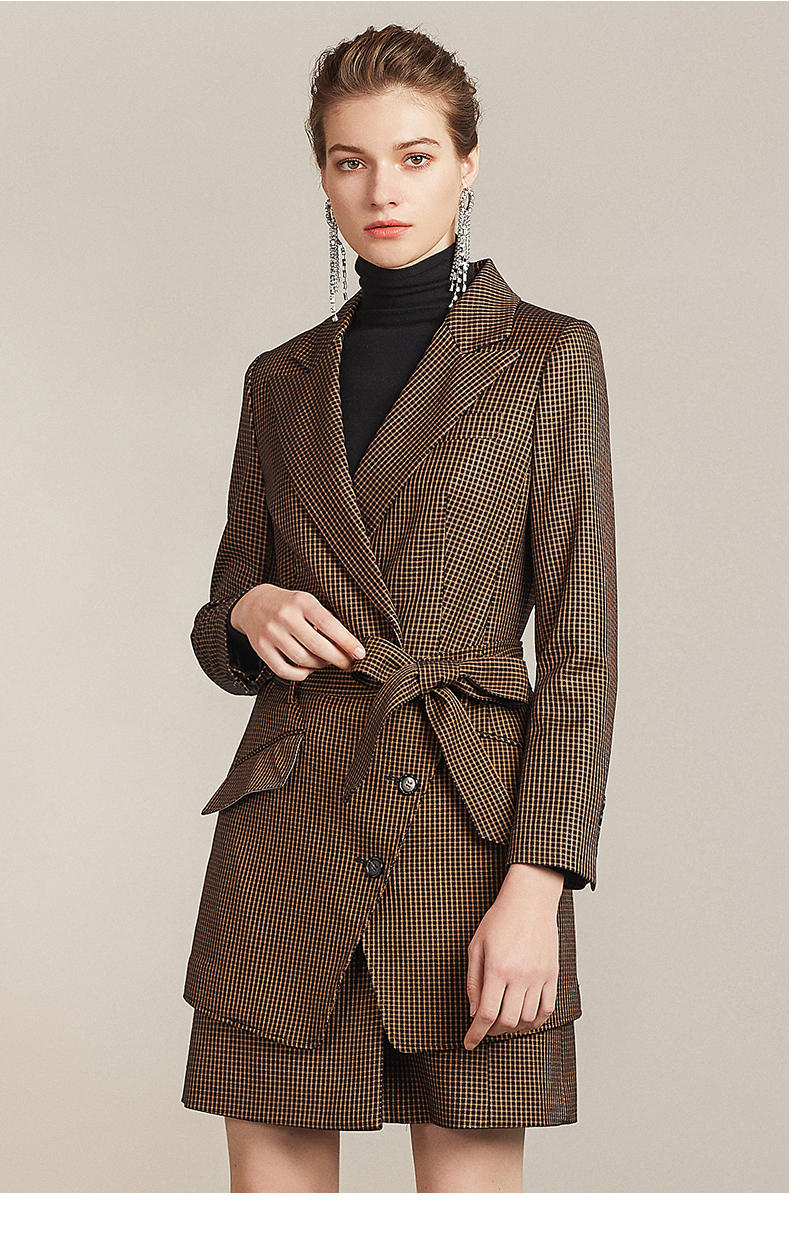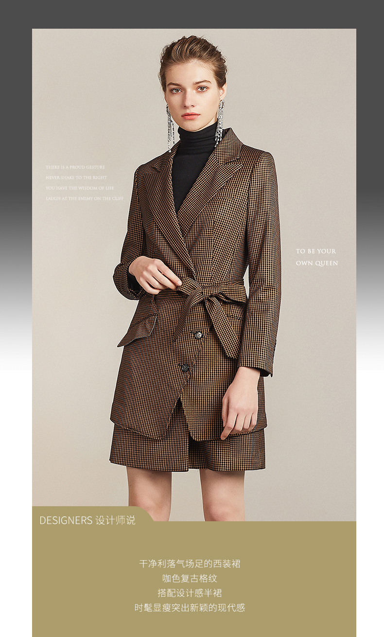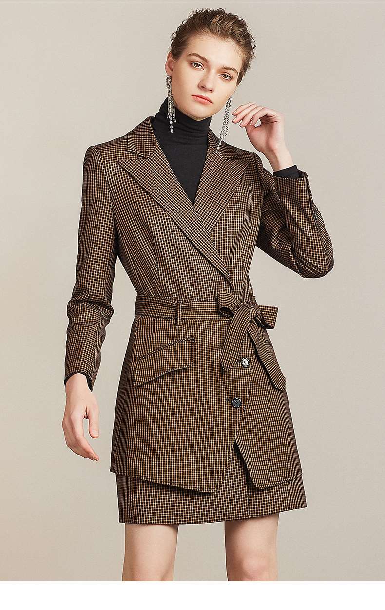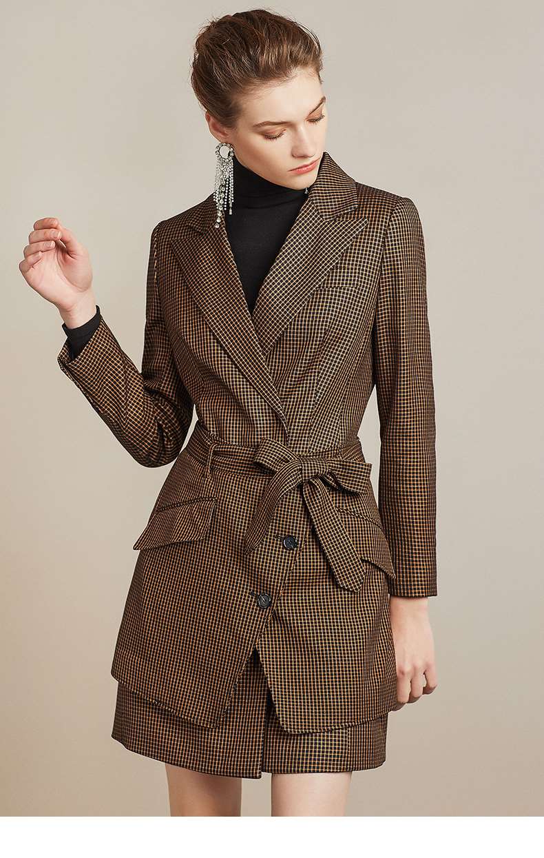 IWY/复古设计感黑咖格子西装套装女职业商务干练百搭气质204028Q1S1