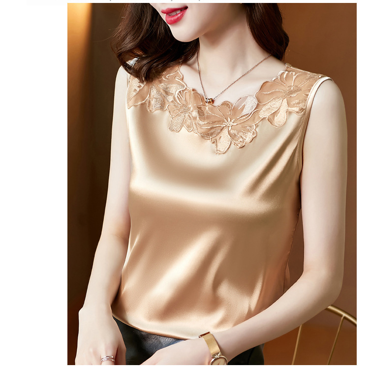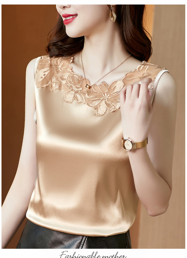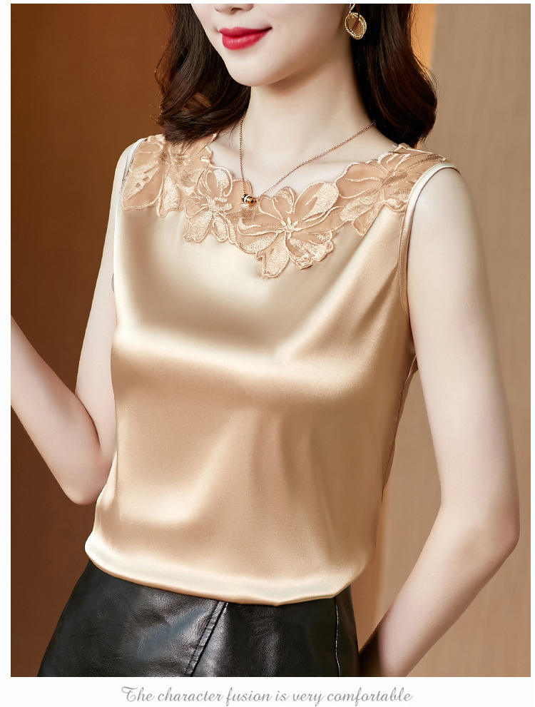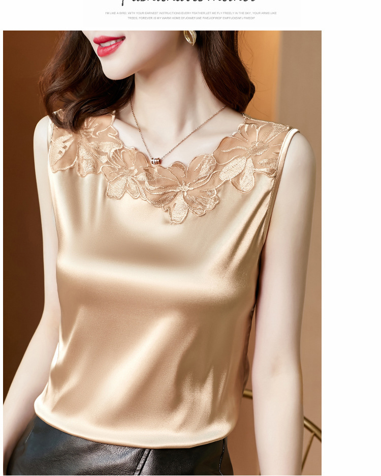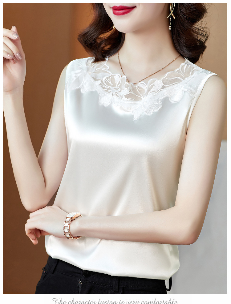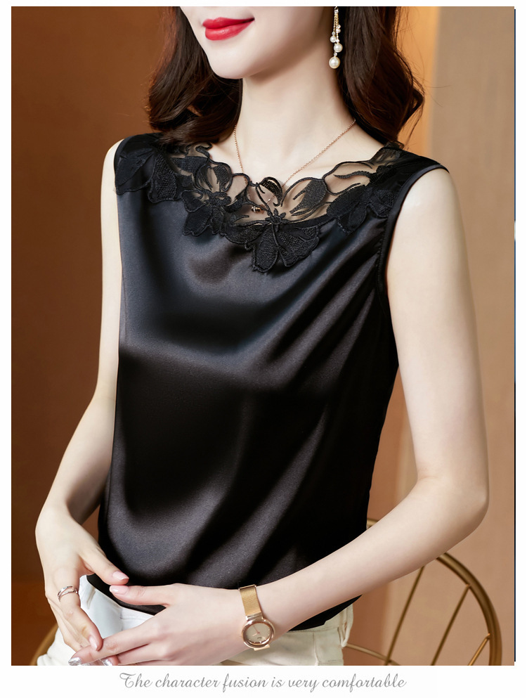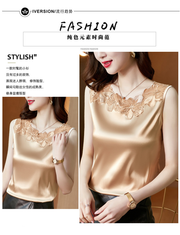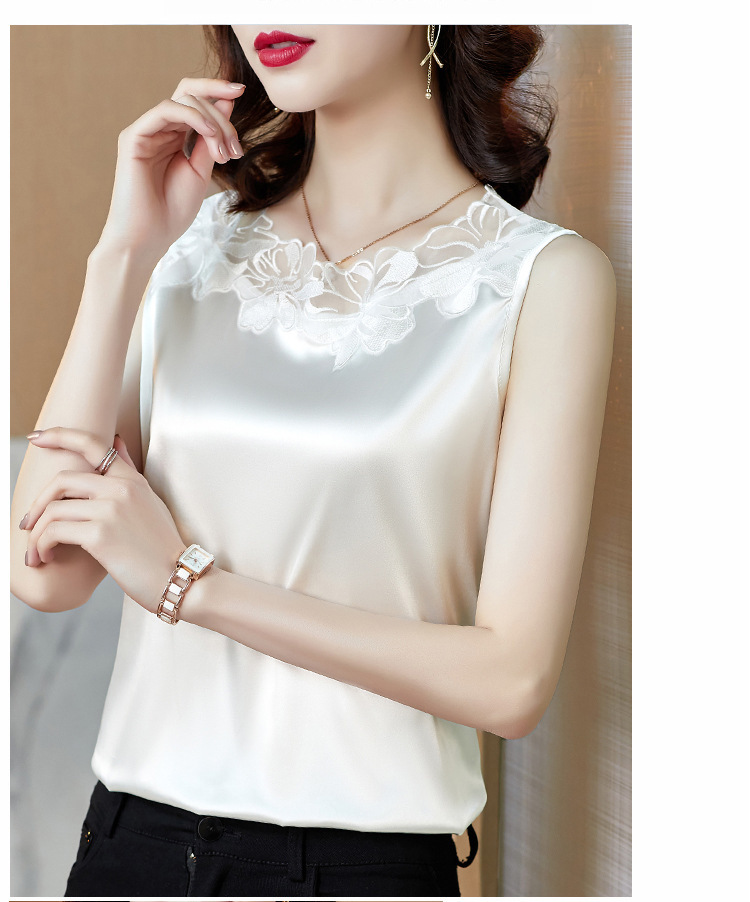 花边V领吊带背心宽肩无袖打底衫宽松上衣KQL-E001M3916