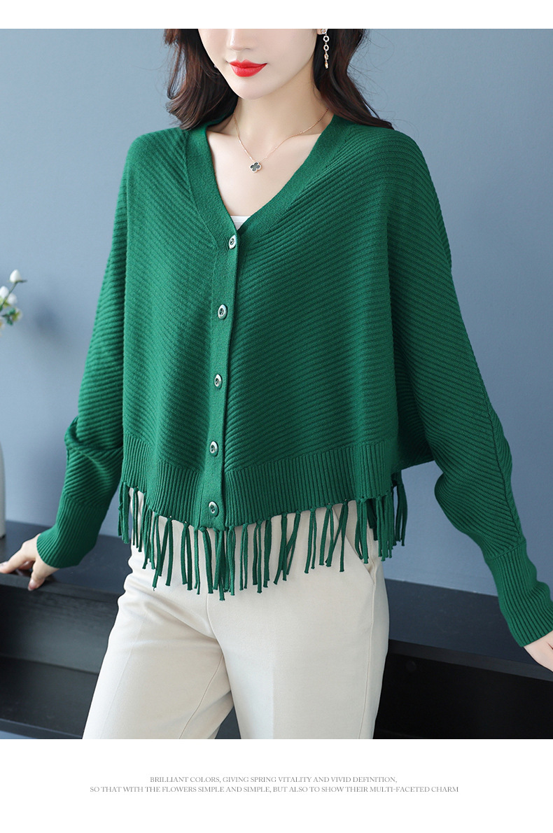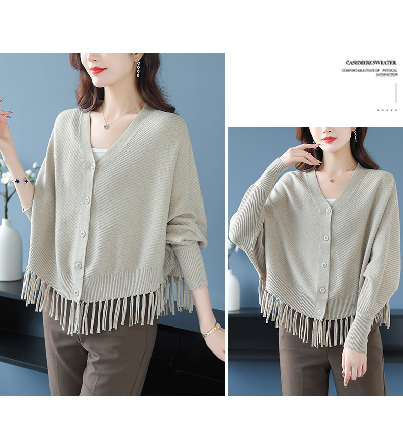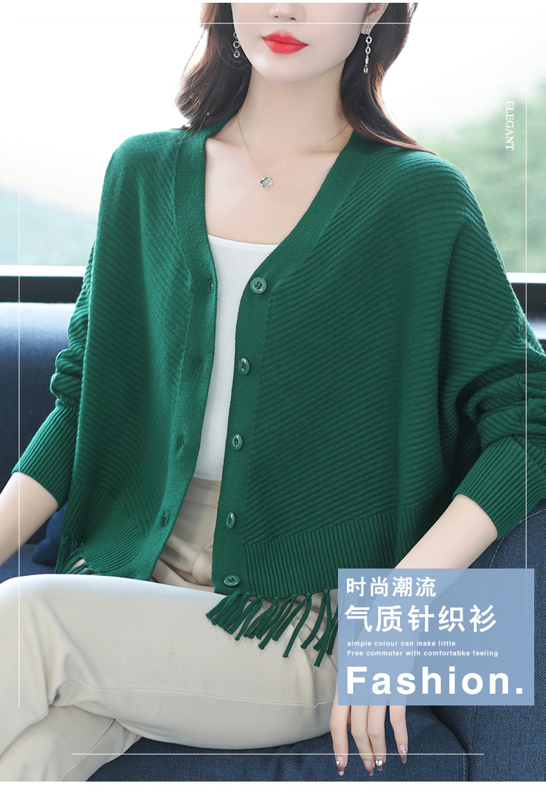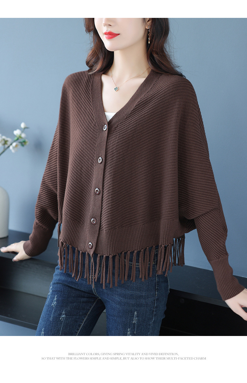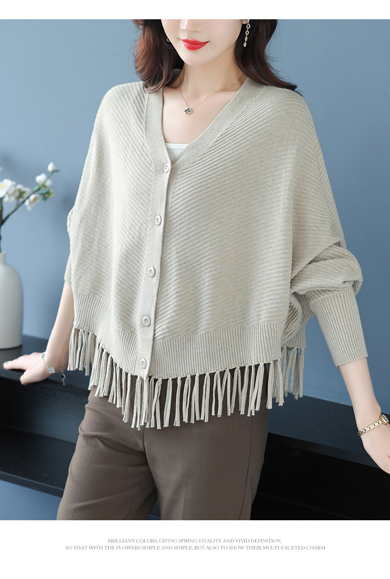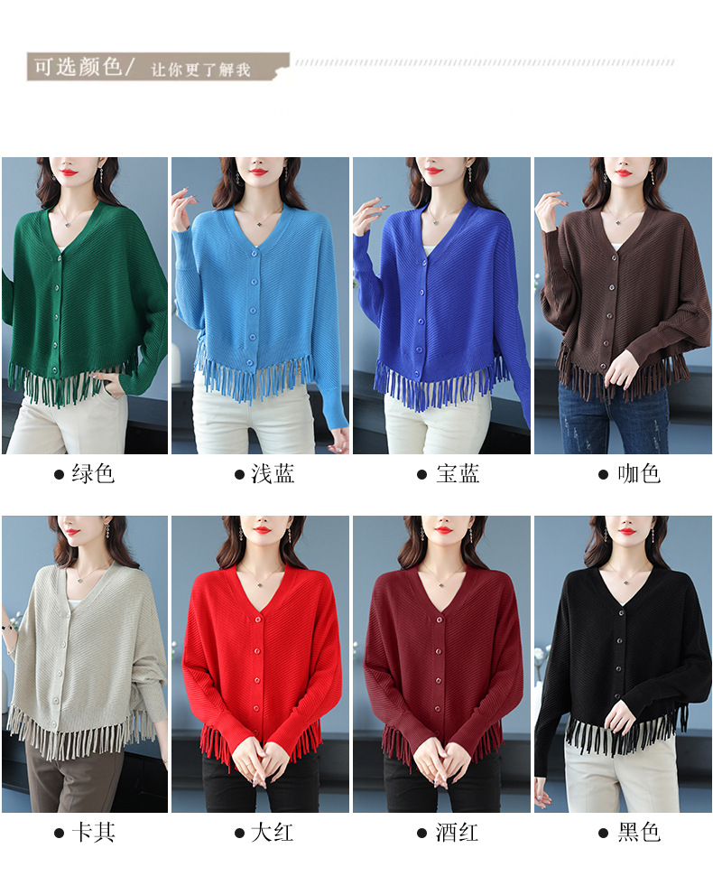 蝙蝠袖流苏针织开衫外套,小个子外搭春秋新款宽松毛衣外套潮CC-10-3332