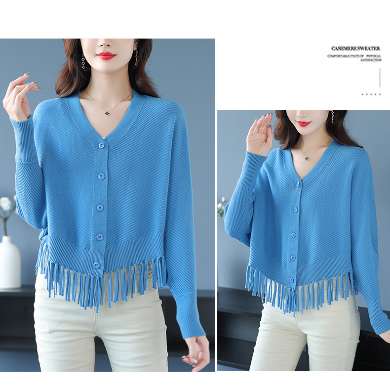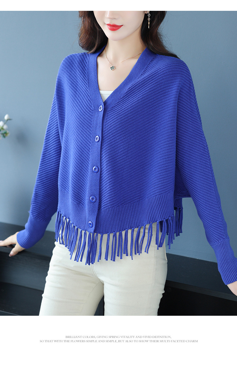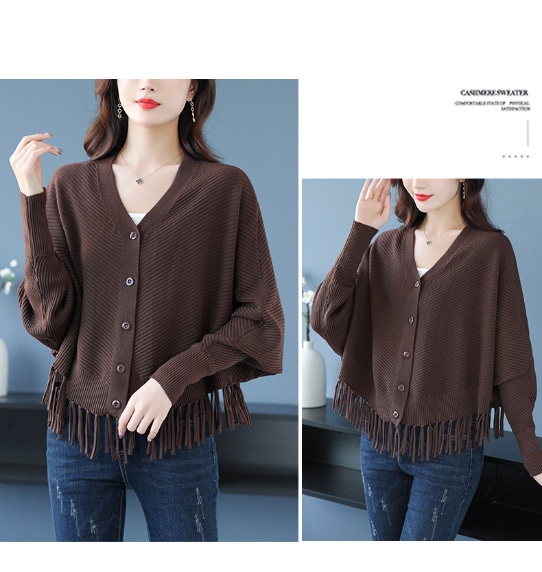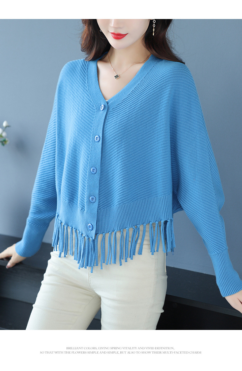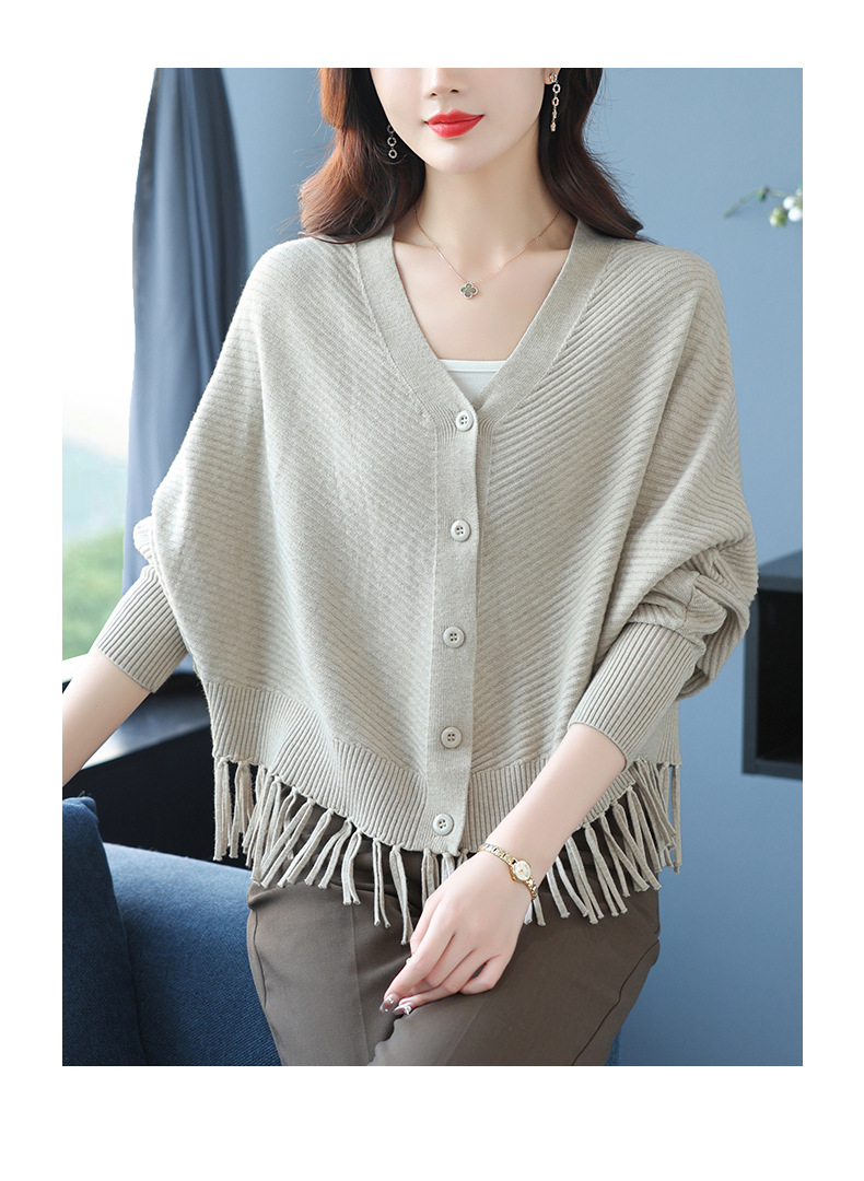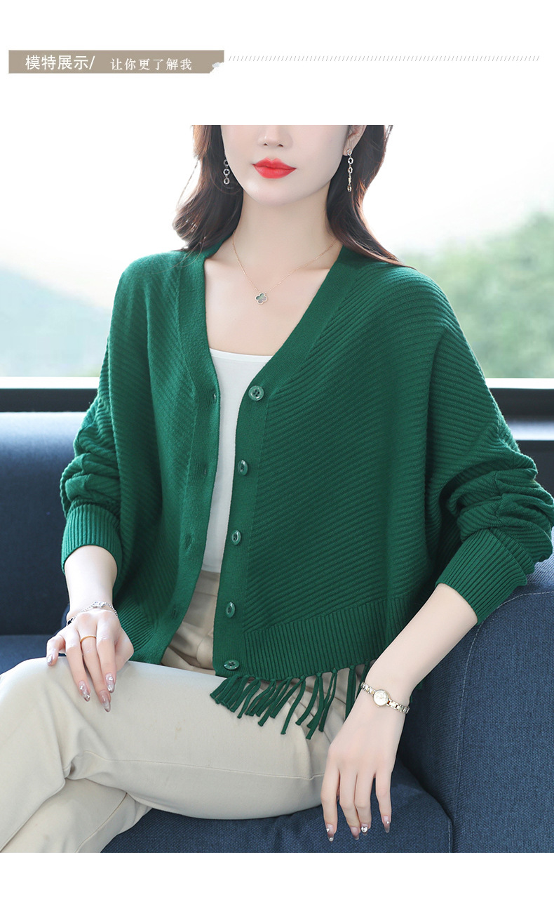 蝙蝠袖流苏针织开衫外套,小个子外搭春秋新款宽松毛衣外套潮CC-10-3332