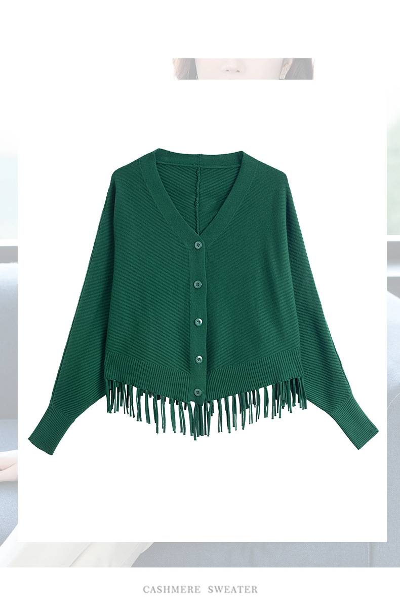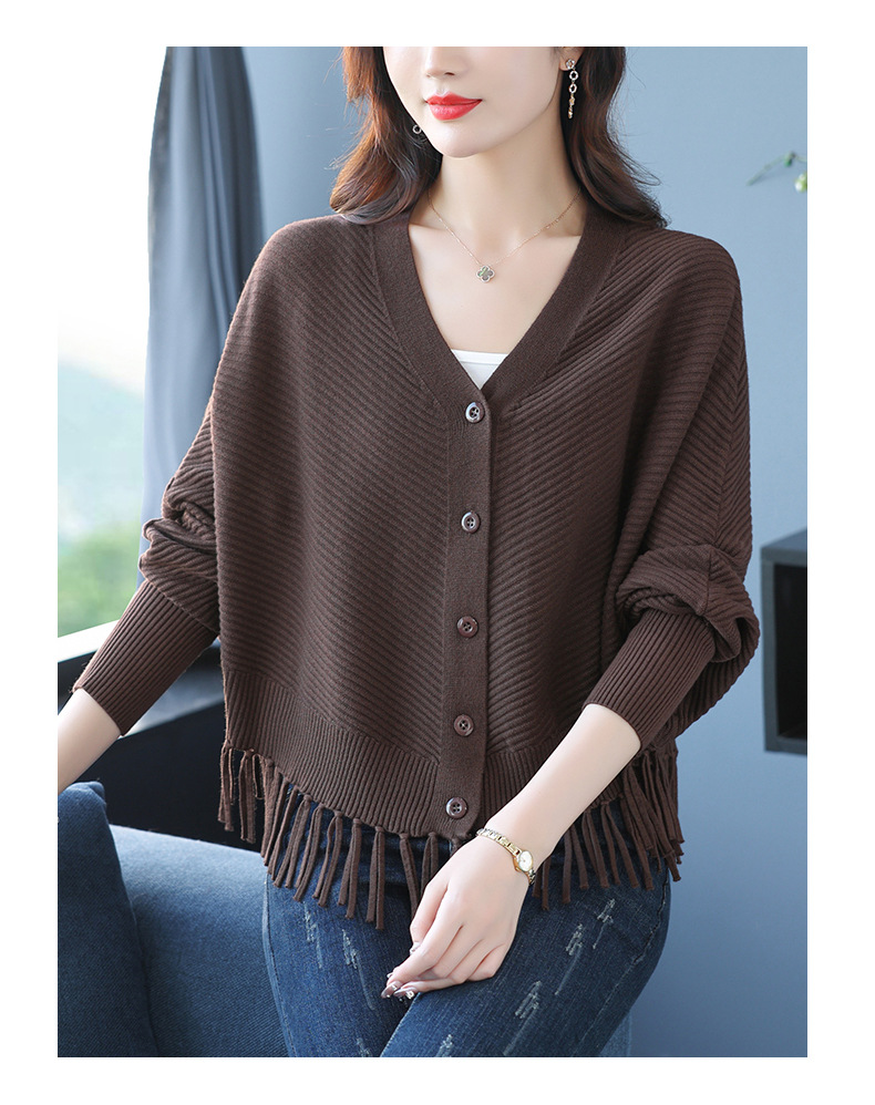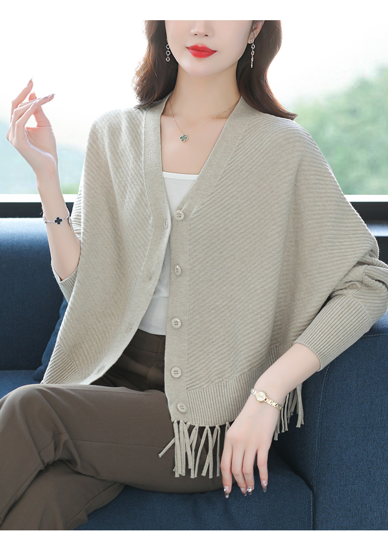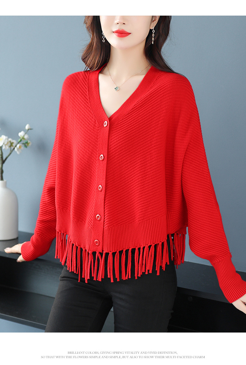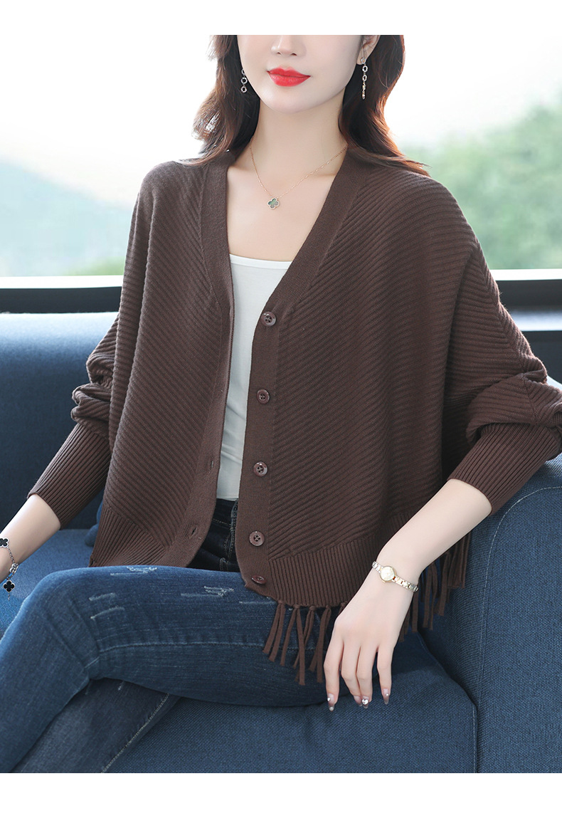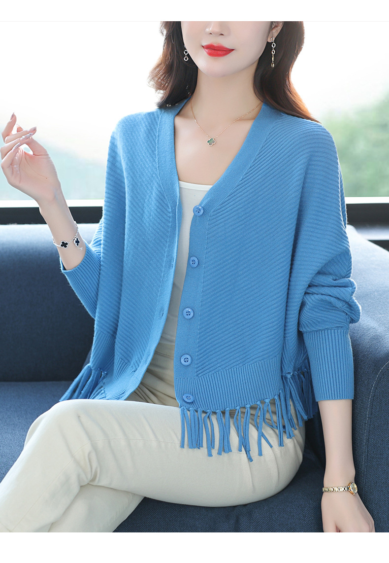 蝙蝠袖流苏针织开衫外套,小个子外搭春秋新款宽松毛衣外套潮CC-10-3332