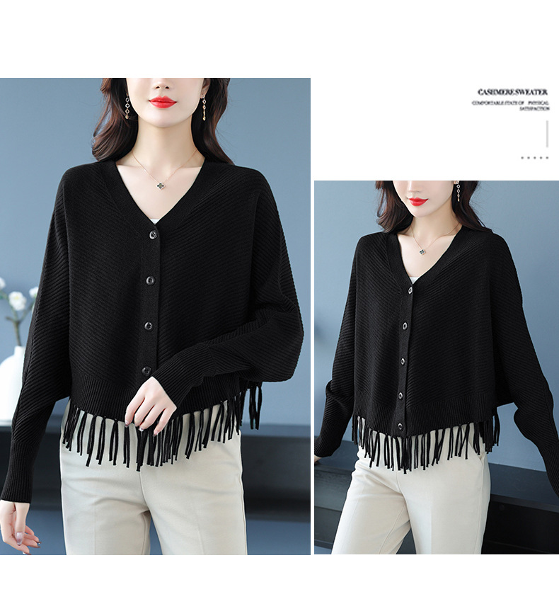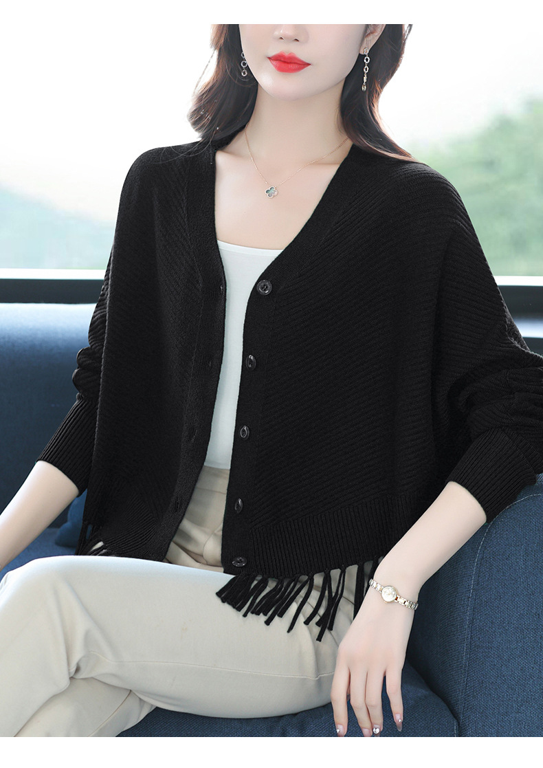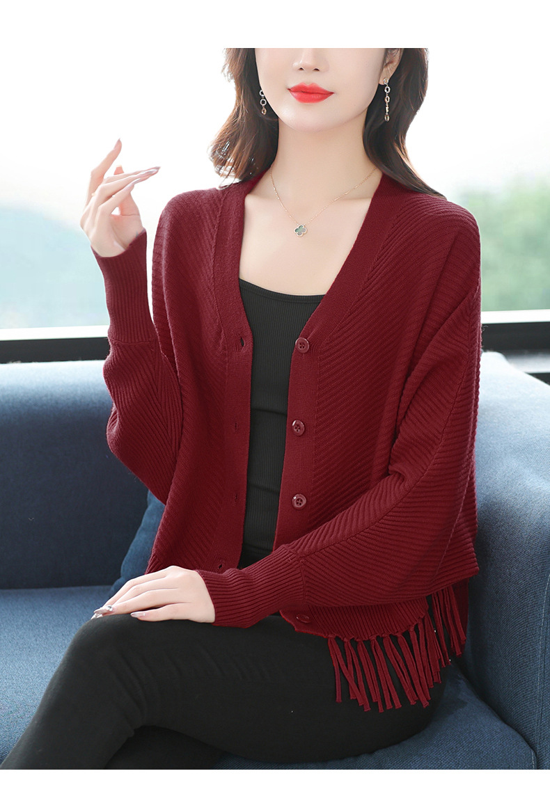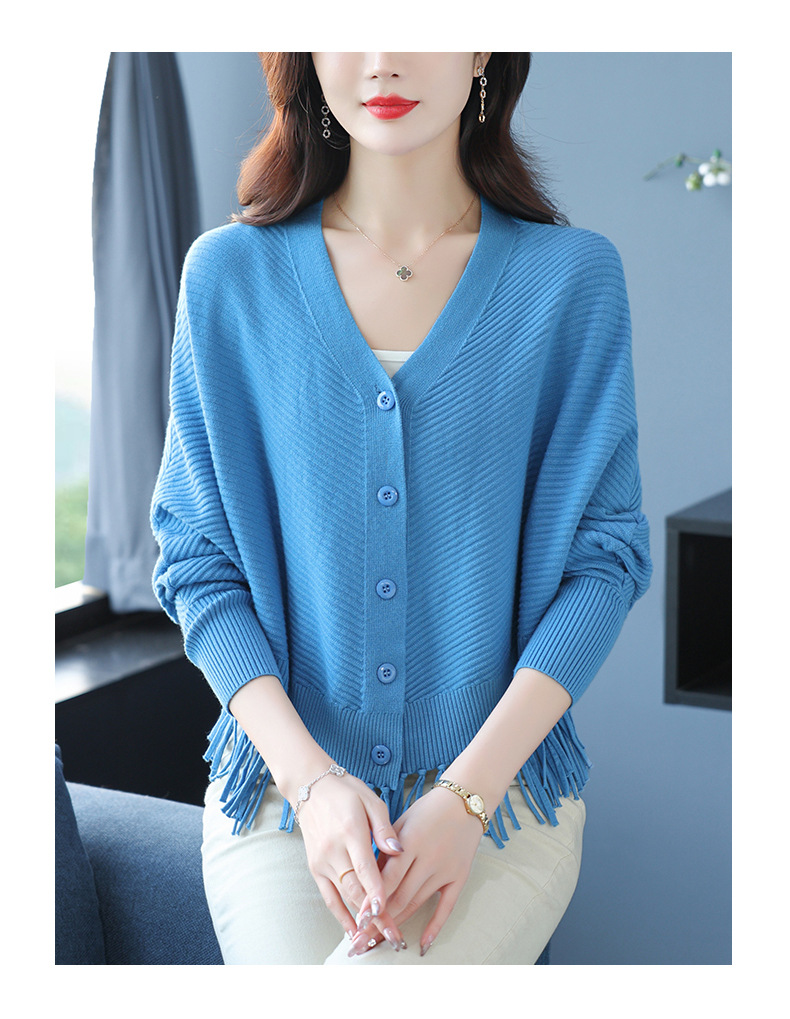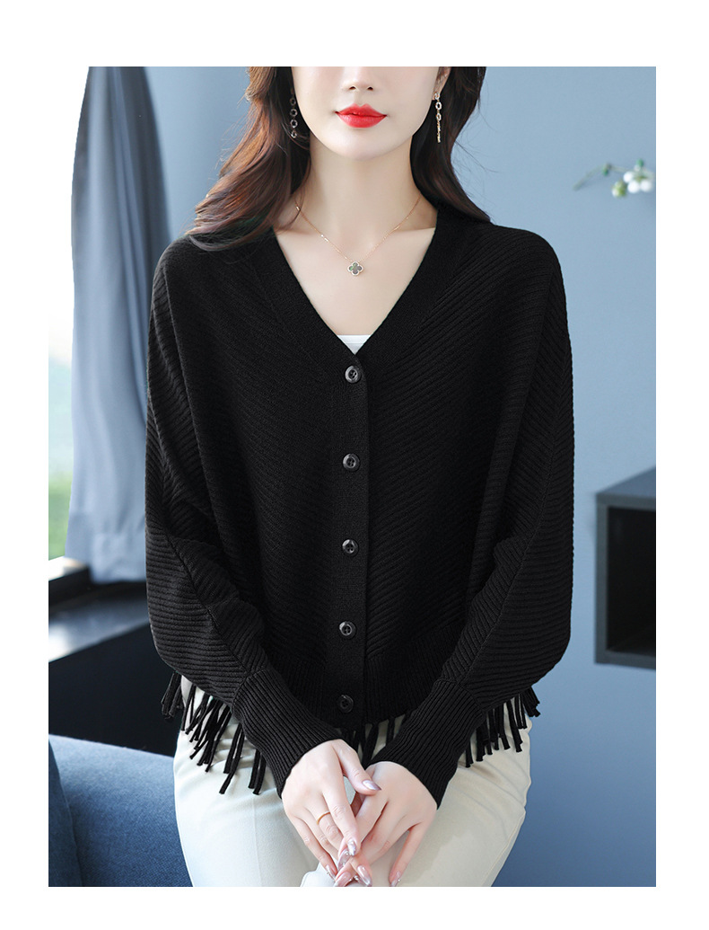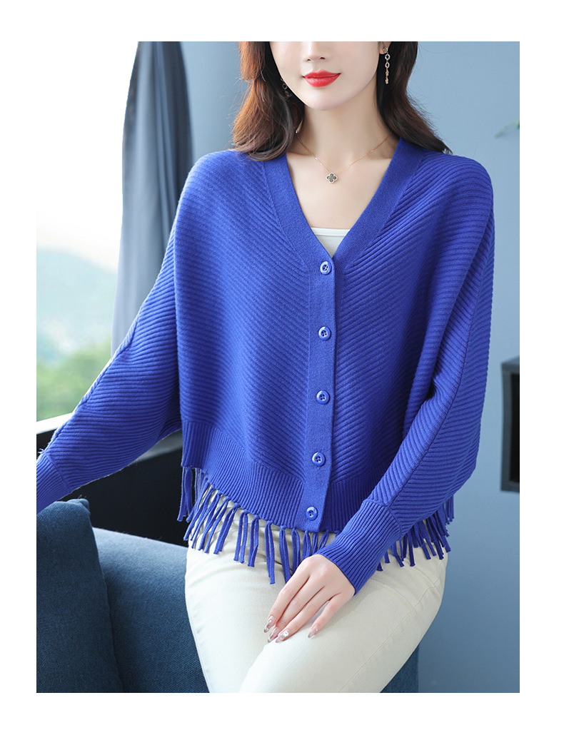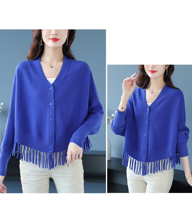 蝙蝠袖流苏针织开衫外套,小个子外搭春秋新款宽松毛衣外套潮CC-10-3332