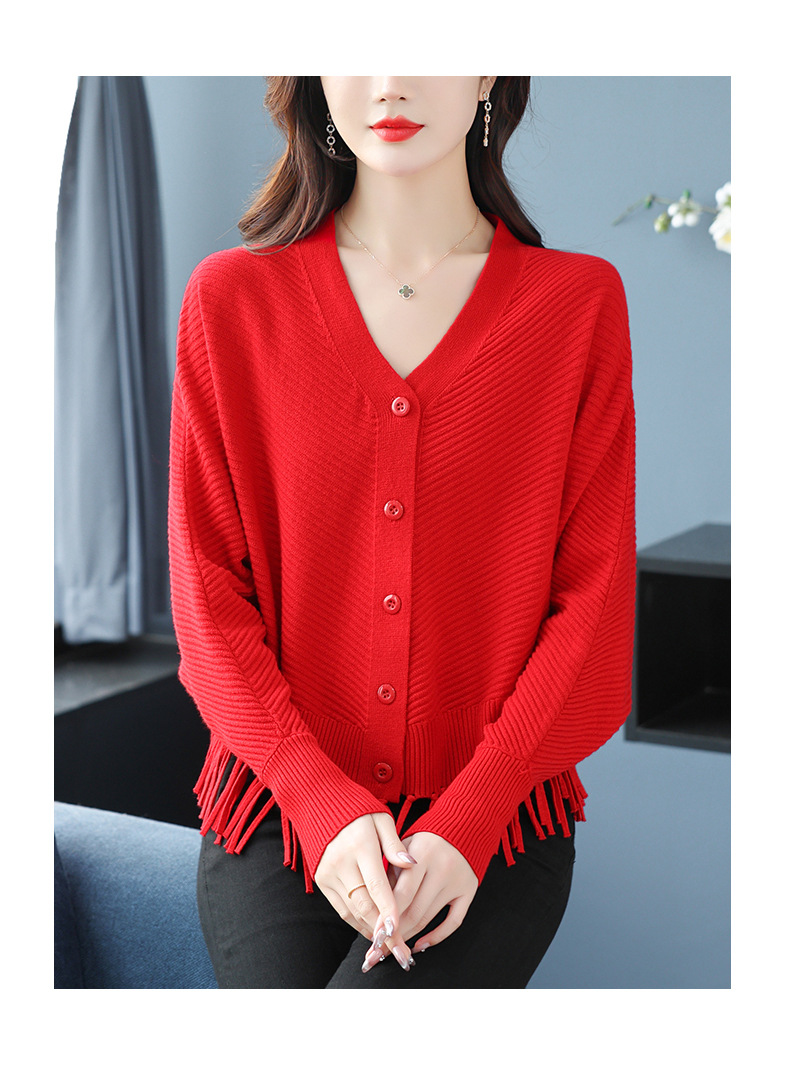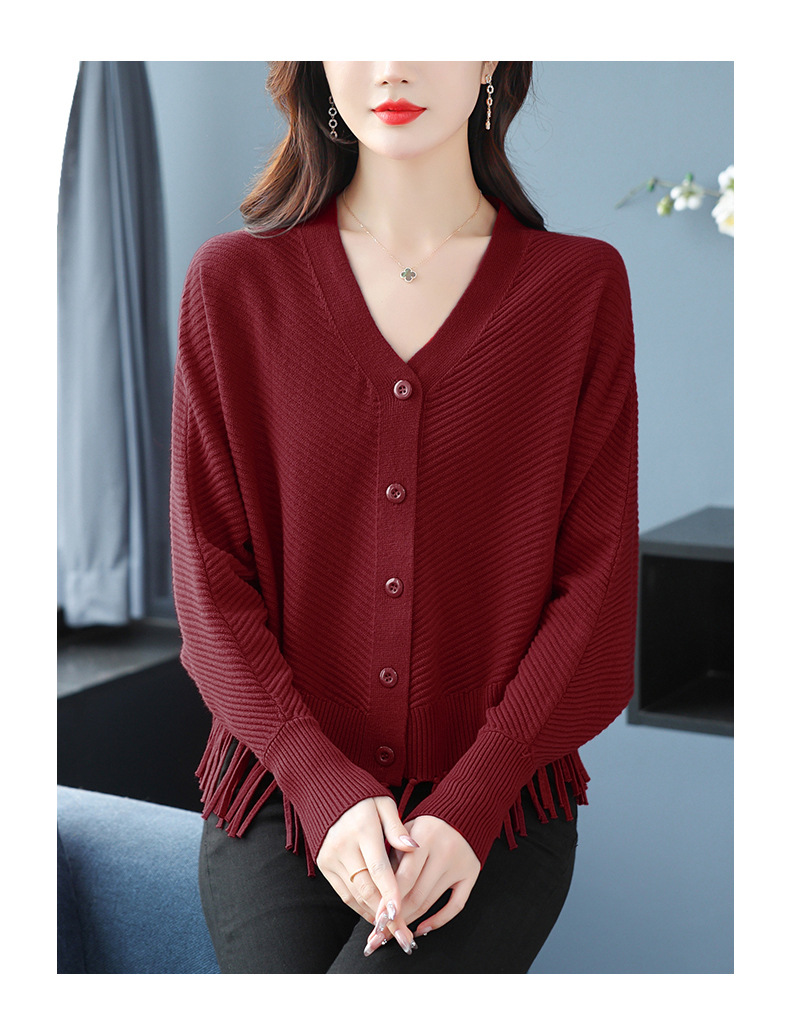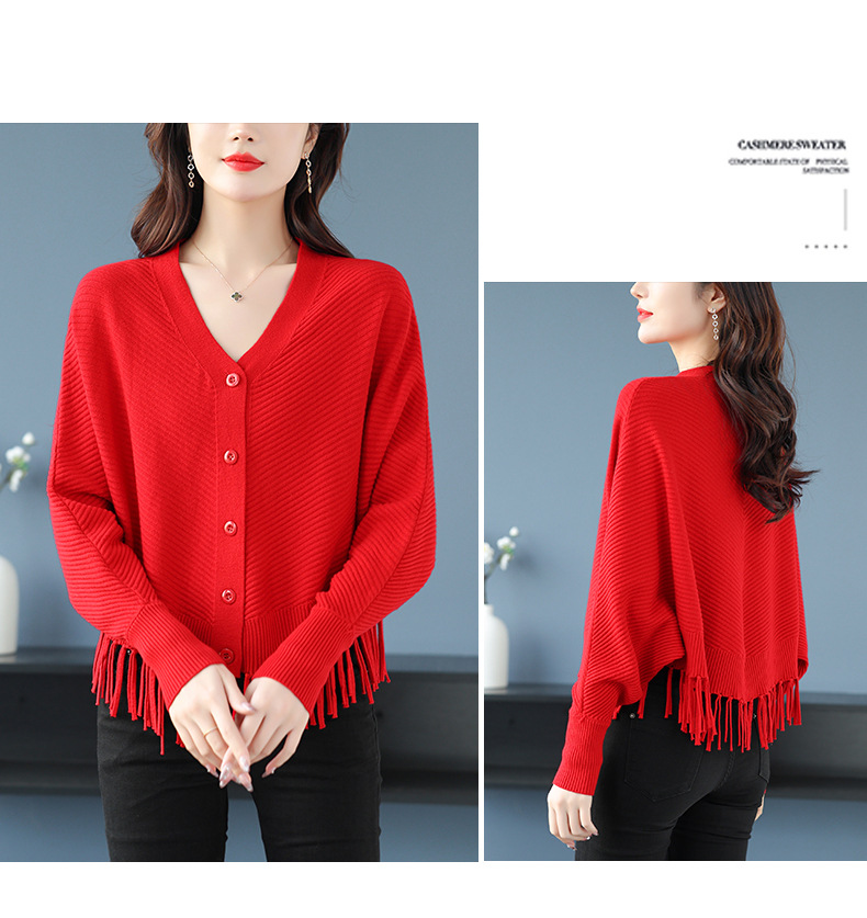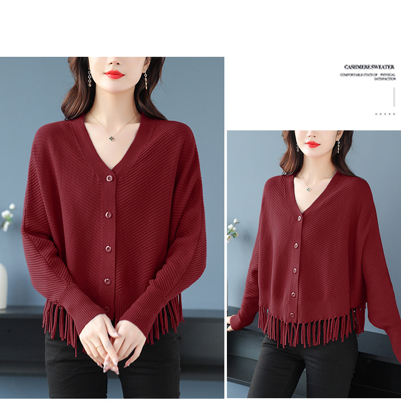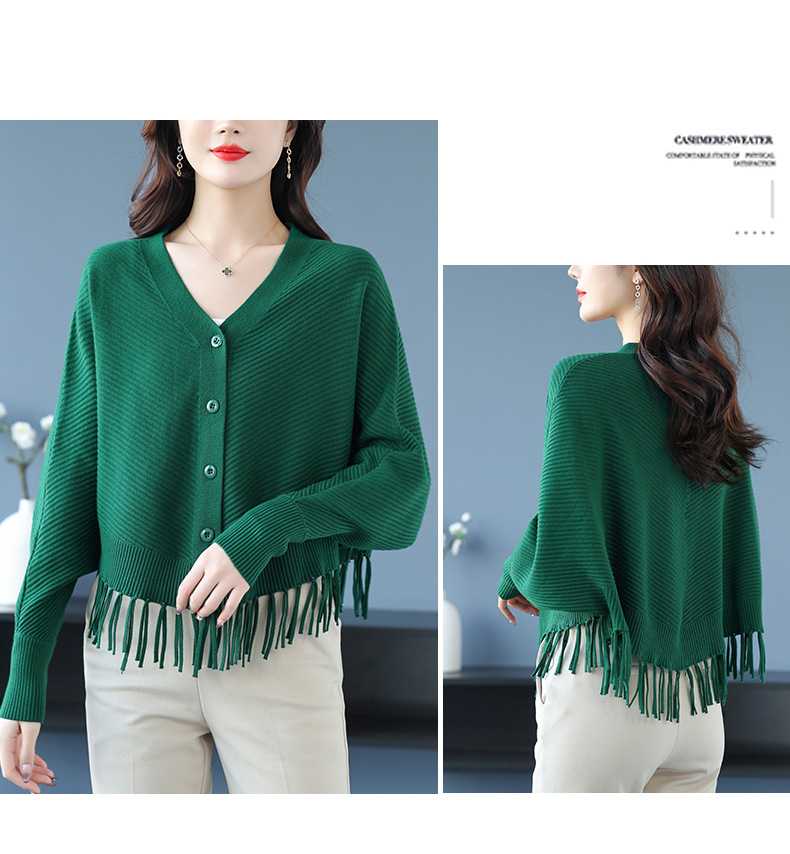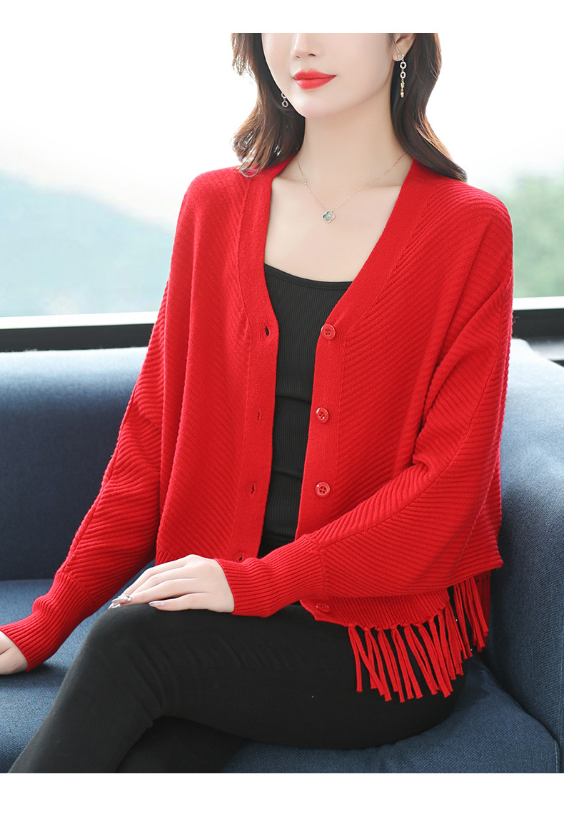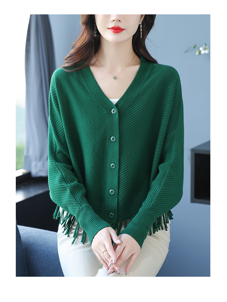 蝙蝠袖流苏针织开衫外套,小个子外搭春秋新款宽松毛衣外套潮CC-10-3332