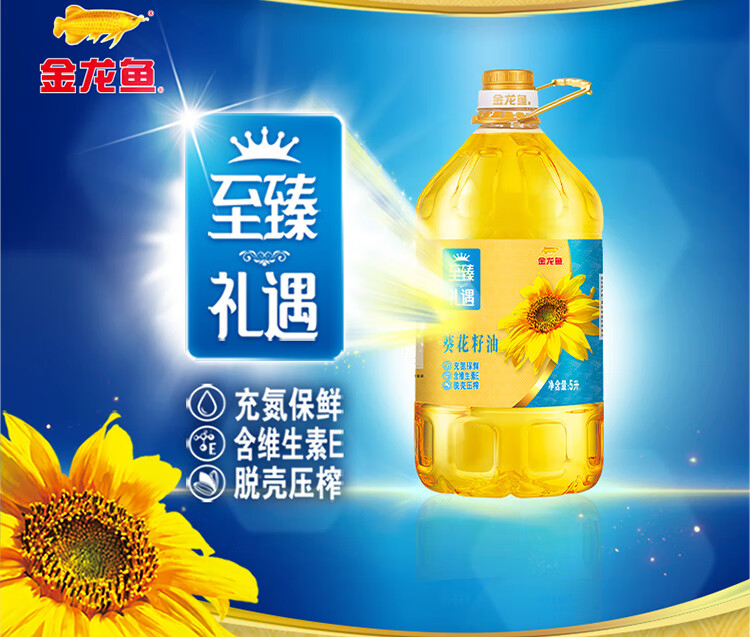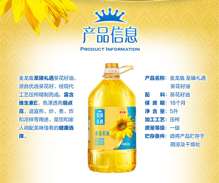 【发出后不支持拦截退货】金龙鱼 至臻礼遇葵花籽油/压榨/一级 5L