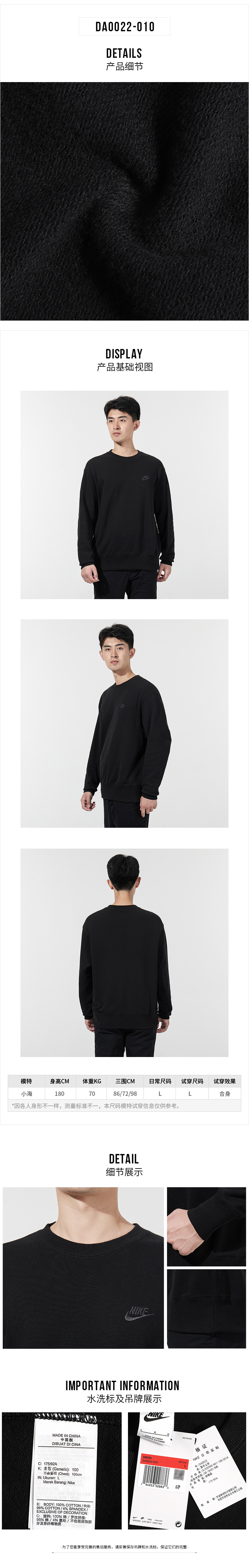 NIKE耐克卫衣男子 2021冬季新款加绒保暖透气防风休闲运动套头衫 DA0022-010 黑色/毛圈内里(纯棉)