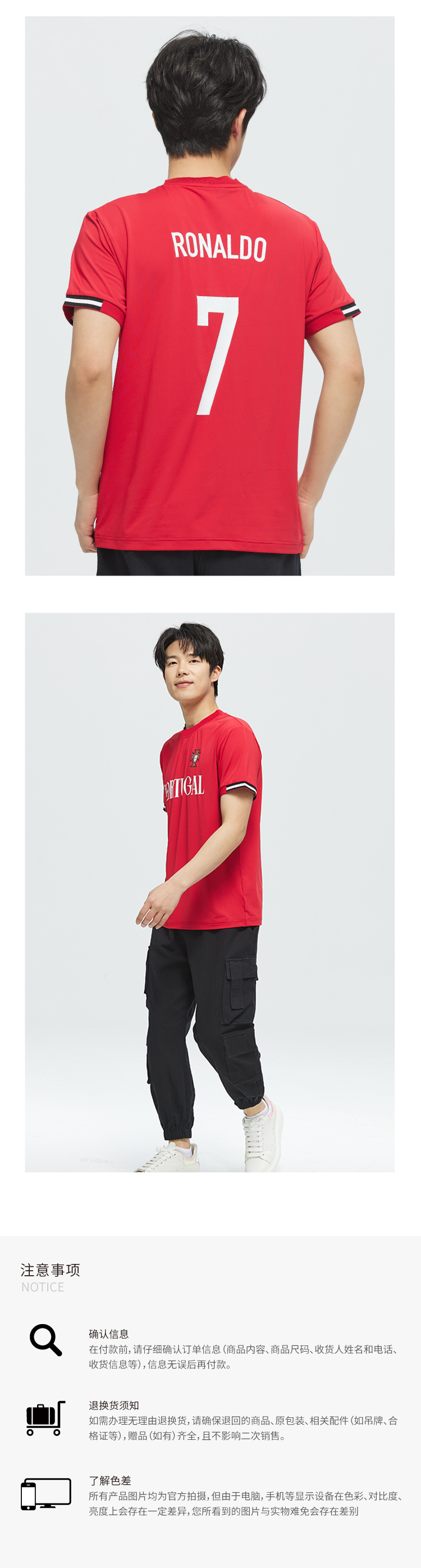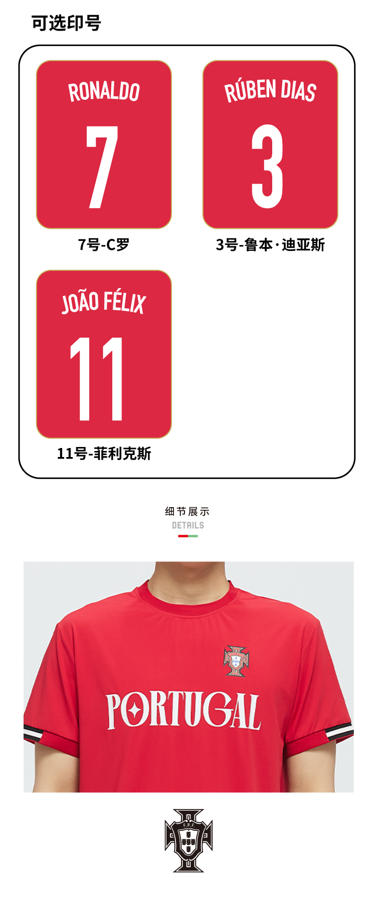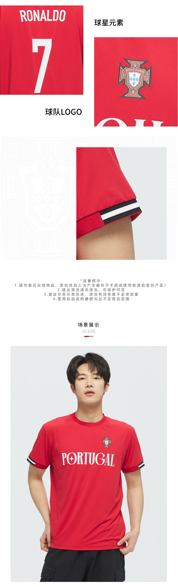 【官方正版】葡萄牙国家队 | 春夏红色球员印号透气T恤球迷