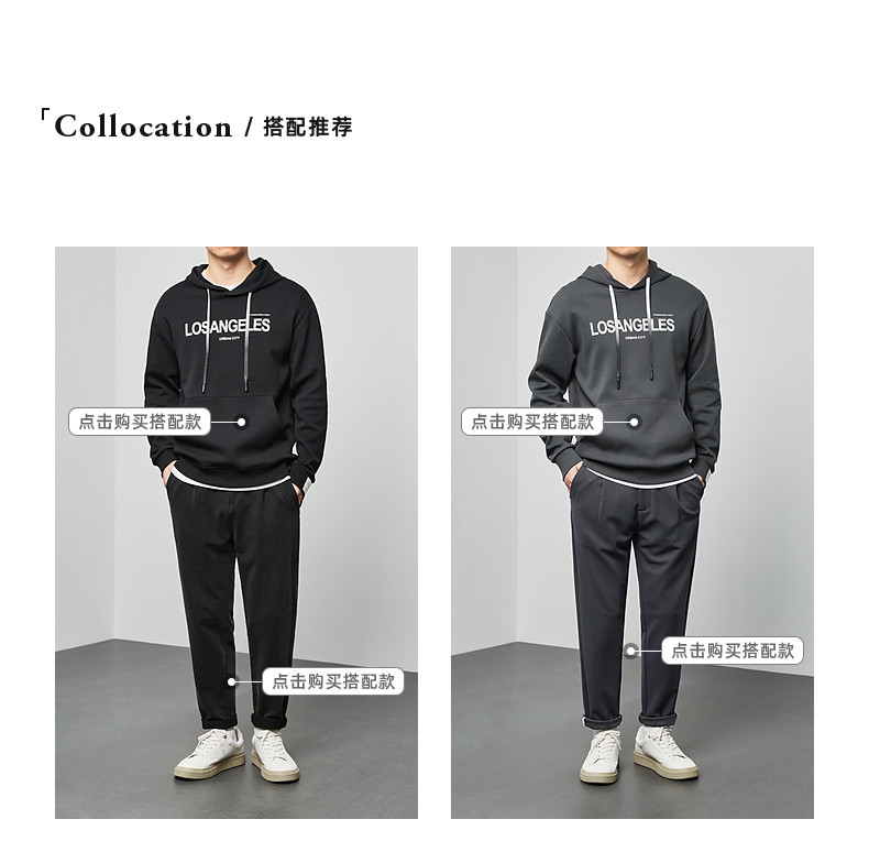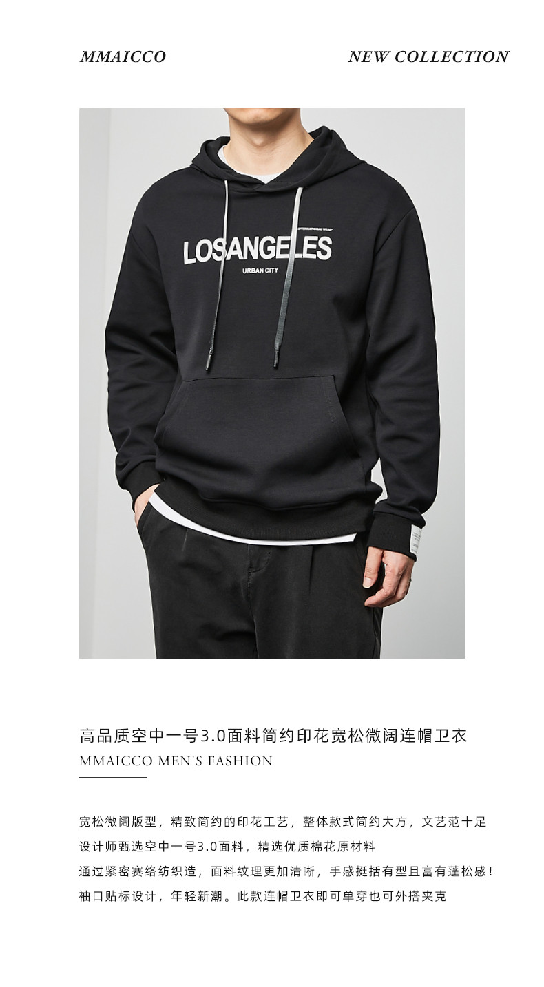 墨麦客男装2021新款连帽卫衣男秋季简约宽松长袖韩版潮流印花外套