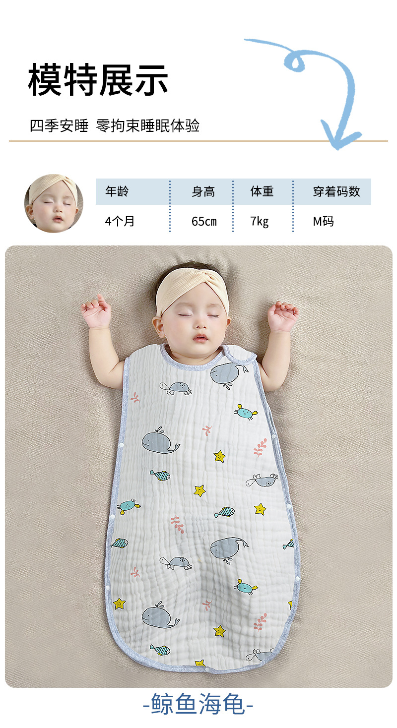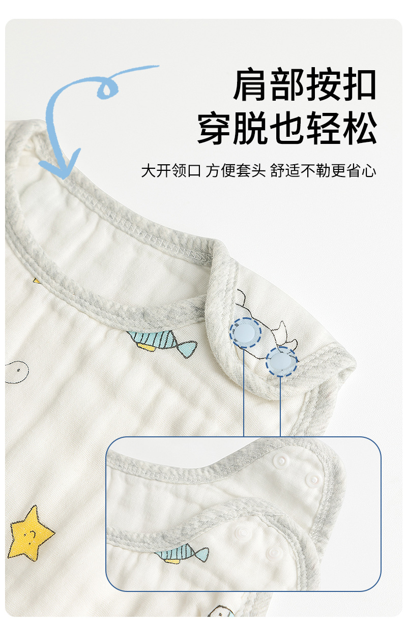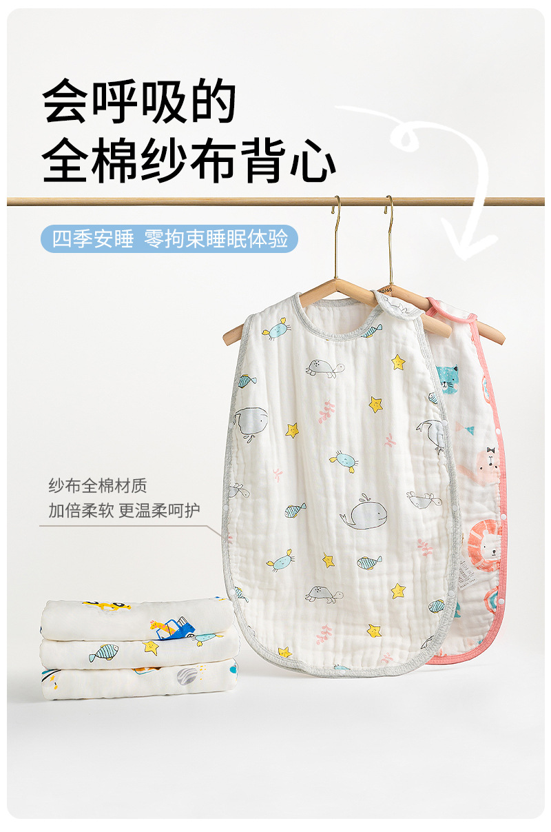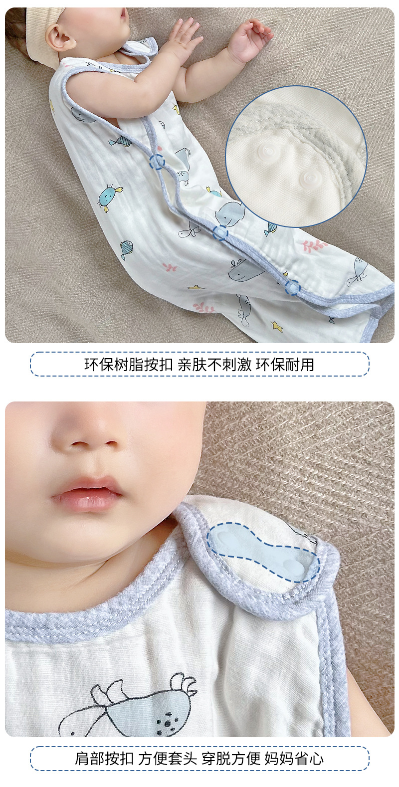 婴儿背心睡袋夏季新生儿宝宝无袖四层纱布纯棉儿童防踢被四季通用
