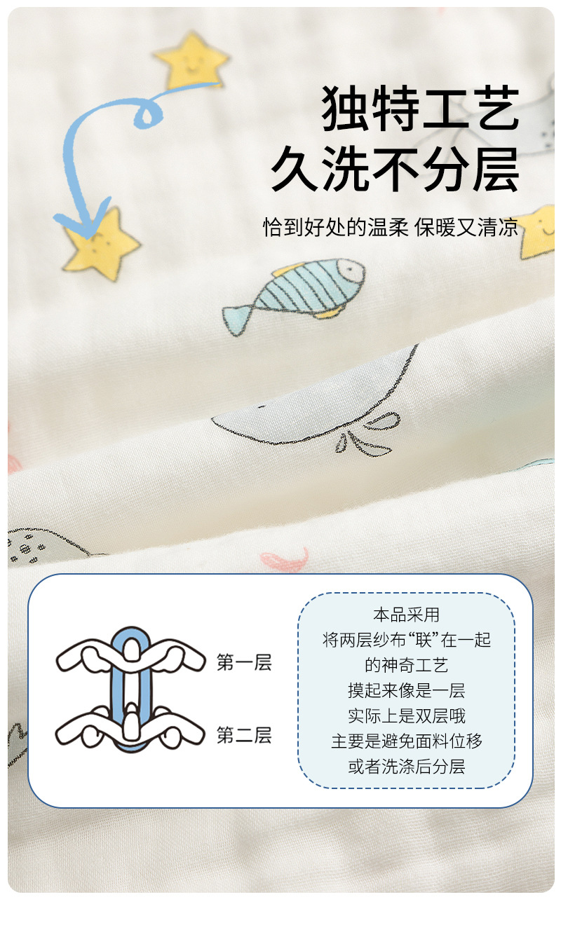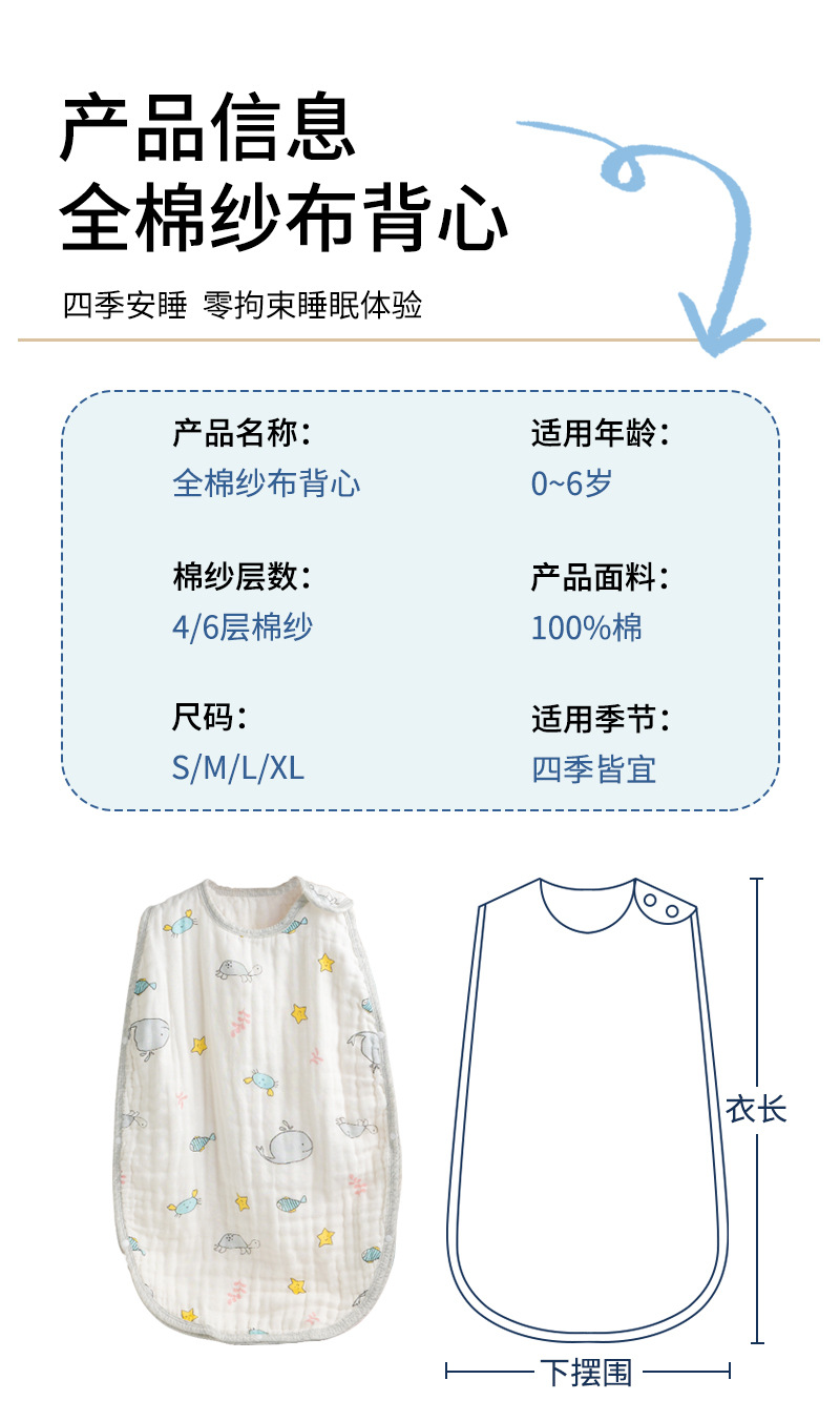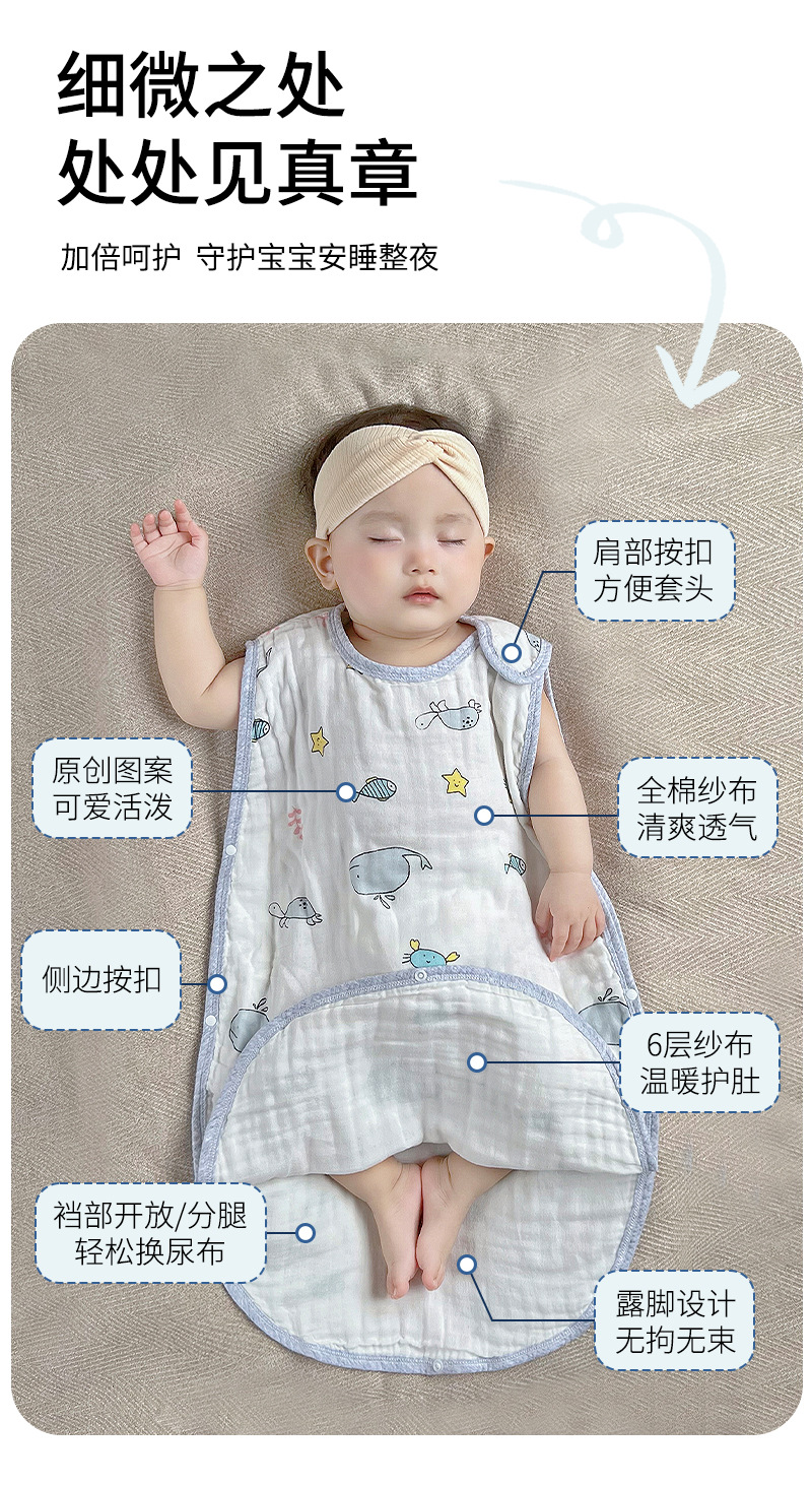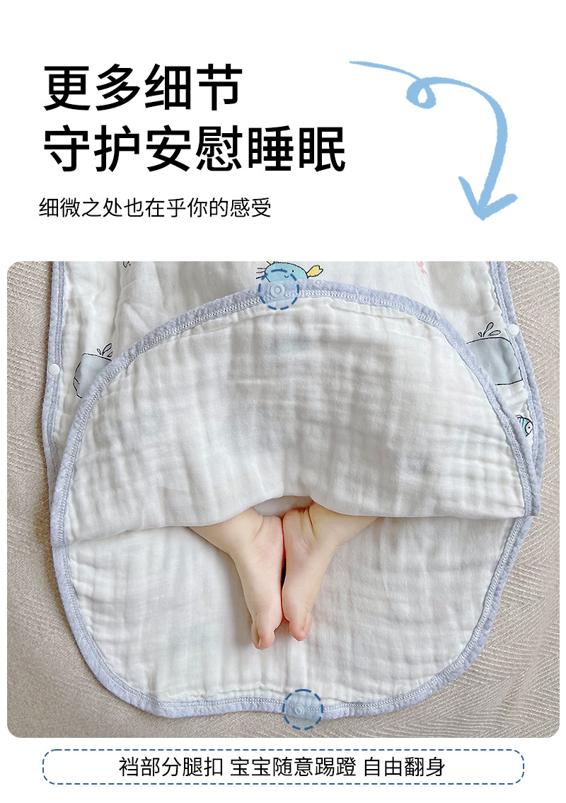 婴儿背心睡袋夏季新生儿宝宝无袖四层纱布纯棉儿童防踢被四季通用
