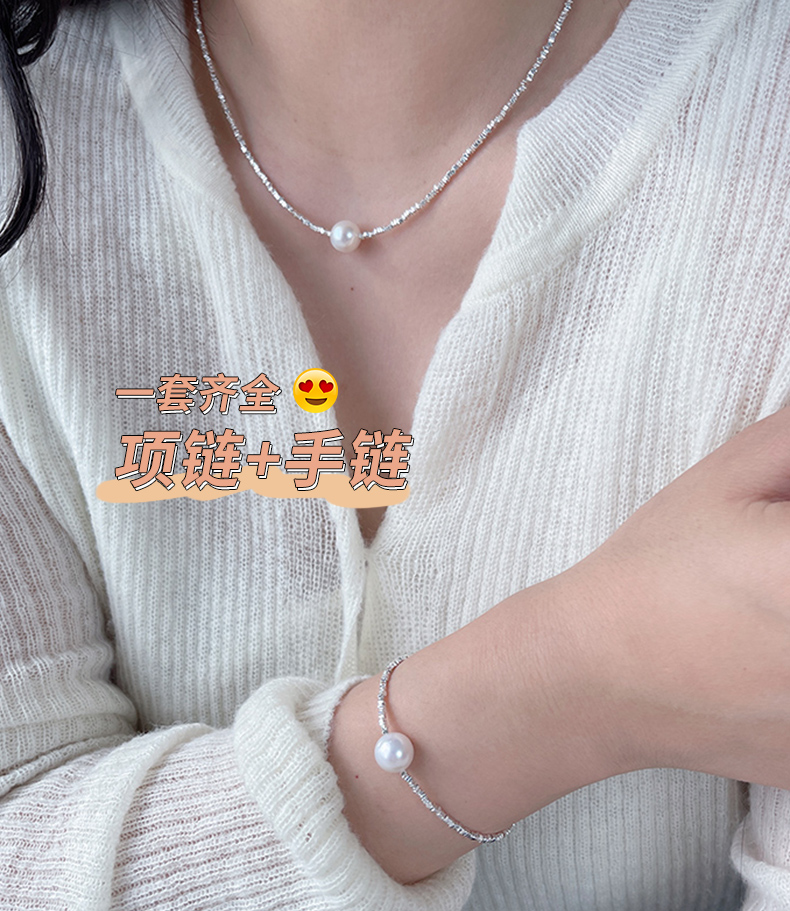 施华洛世奇极光满天星辰碎银子珍珠项链+手链