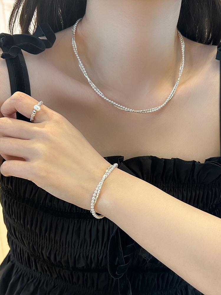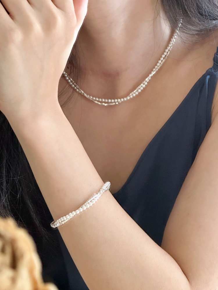 施华洛世奇珍珠串珠满天星辰碎银子双层珍珠项链+手链