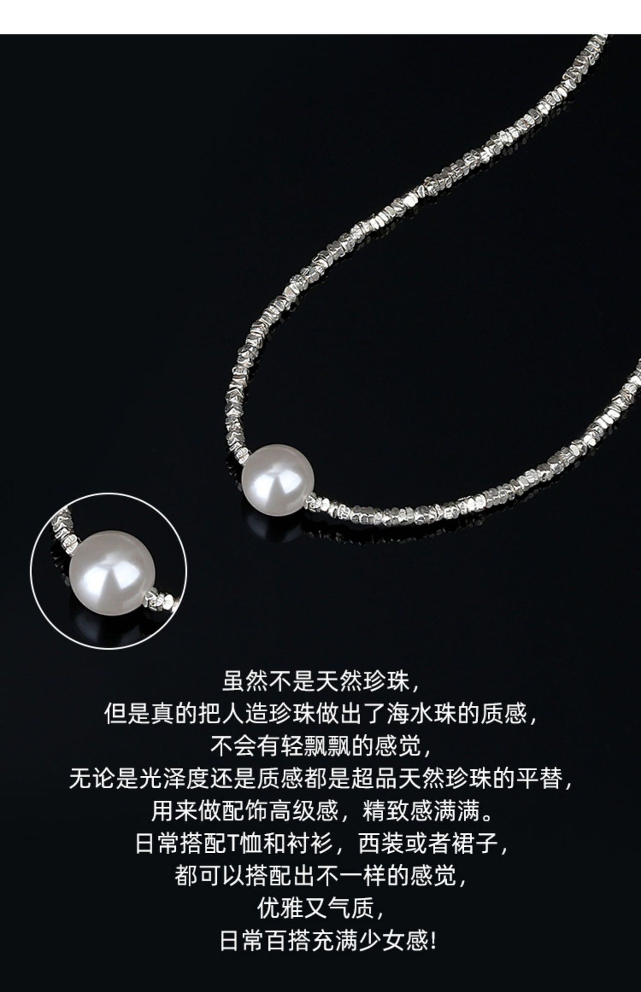 施华洛世奇925碎银子珍珠项链