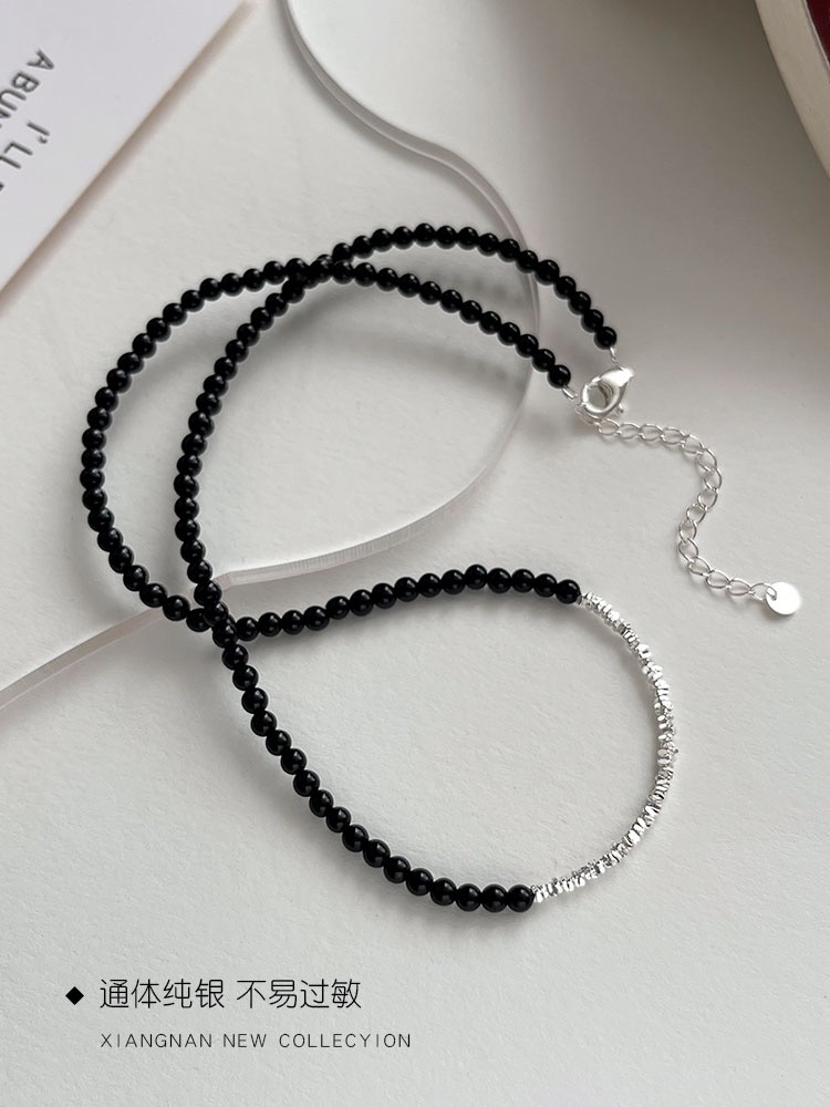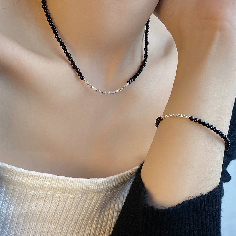 黑玛瑙轻奢串珠满天星辰碎银子玛瑙项链+手链