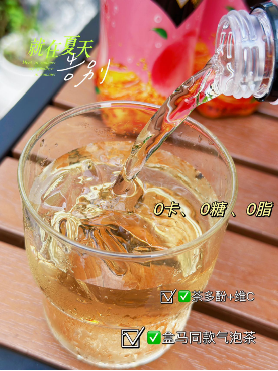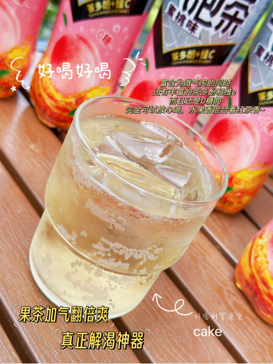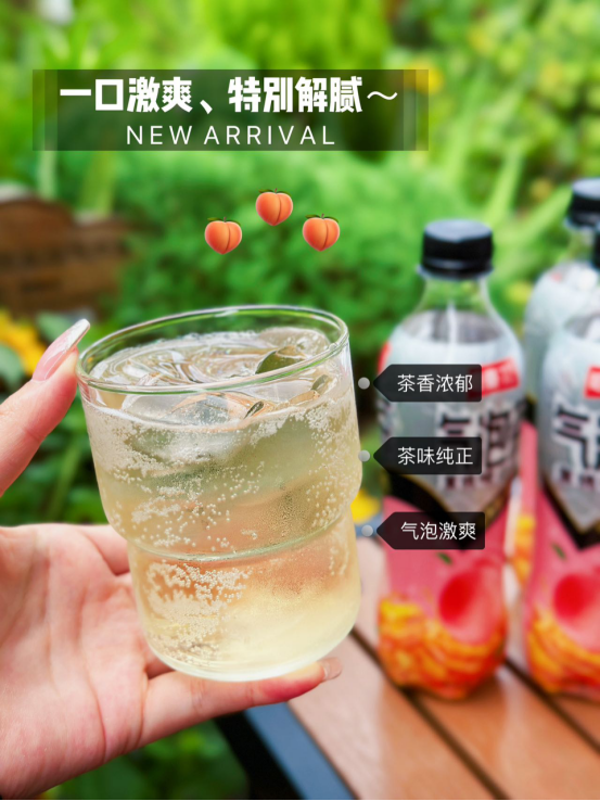 颜值天花板,种草Z世代 气泡茶(蜜桃味)真的是茶饮界的颜值天花板 冰镇过的清凉口味更是爽到心里聚餐来 上几瓶太嗨场了 重油饮食te别是烤肉的时候 来上一瓶太解腻了够气够爽真提气!