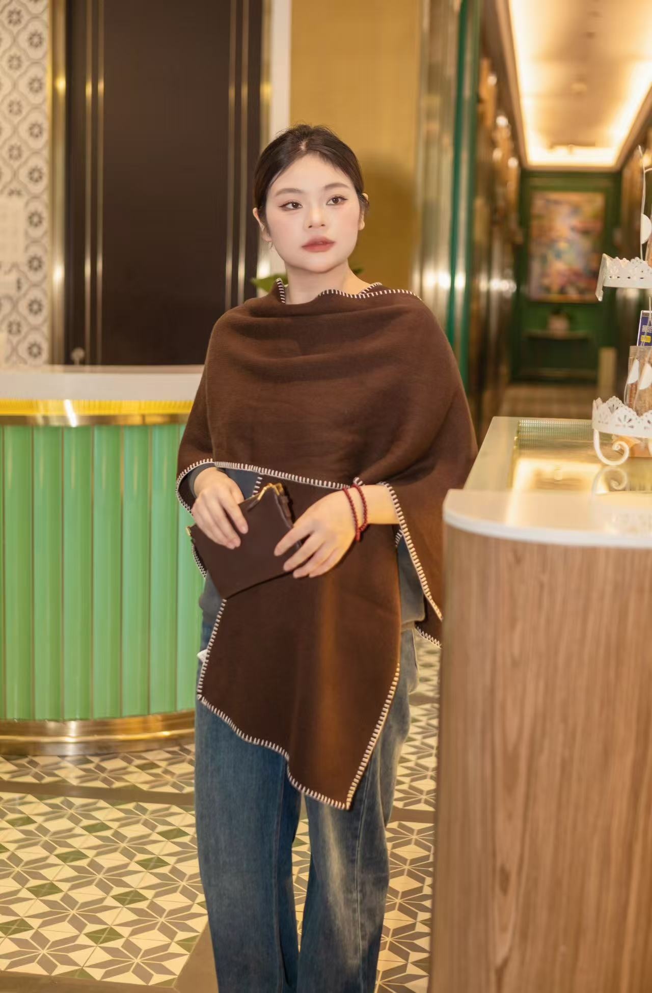 一周内发货【羊毛混纺披肩 2用】🌿 一件披肩的温柔,是懂得女人的温度。垂顺不厚重,秋冬可外搭,妥帖地护住脖颈~面料:45支羊毛混纺 成分:52.8%聚酯纤维22.4%锦纶21.1%腈纶3.7%绵羊毛