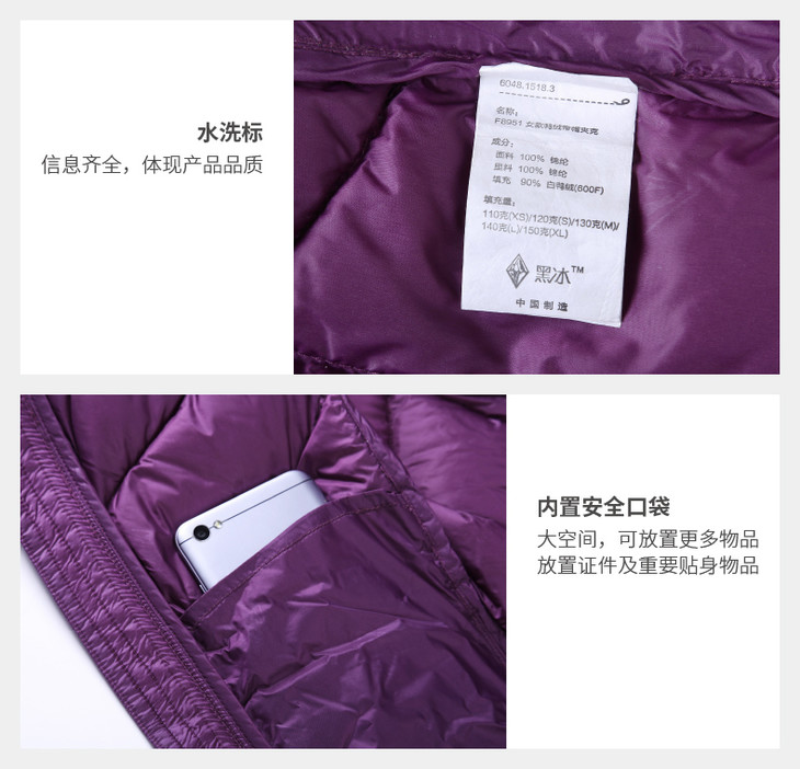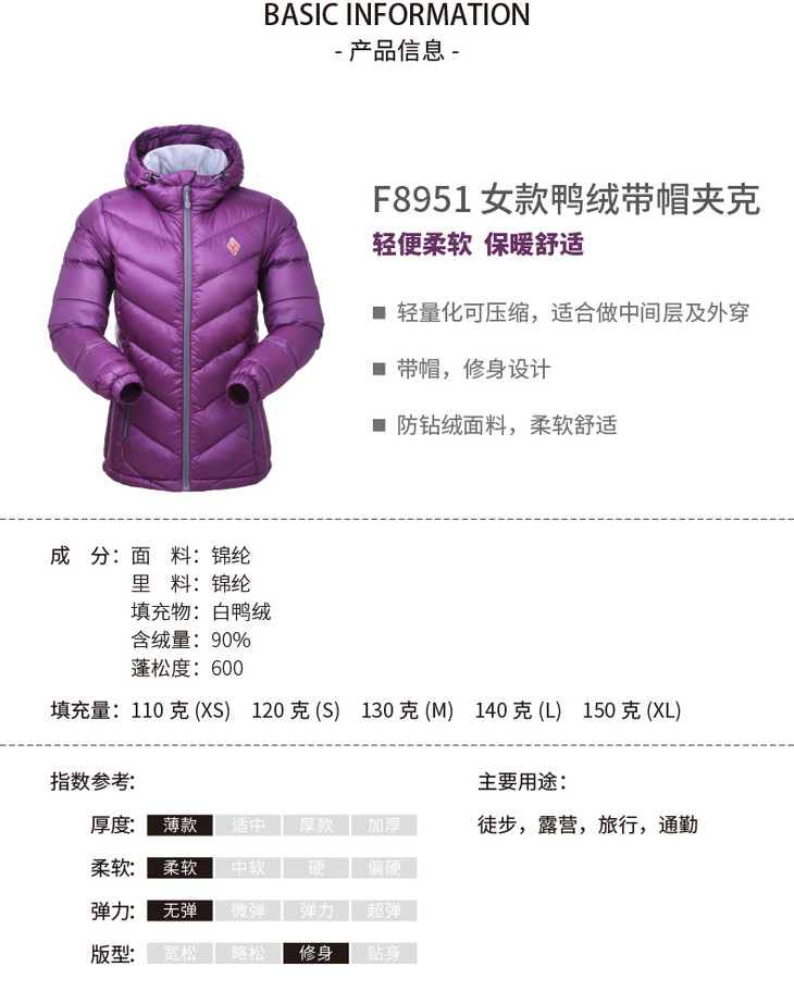 黑冰 经典款F8951 户外连帽羽绒服 冬季鸭绒羽绒外套 女