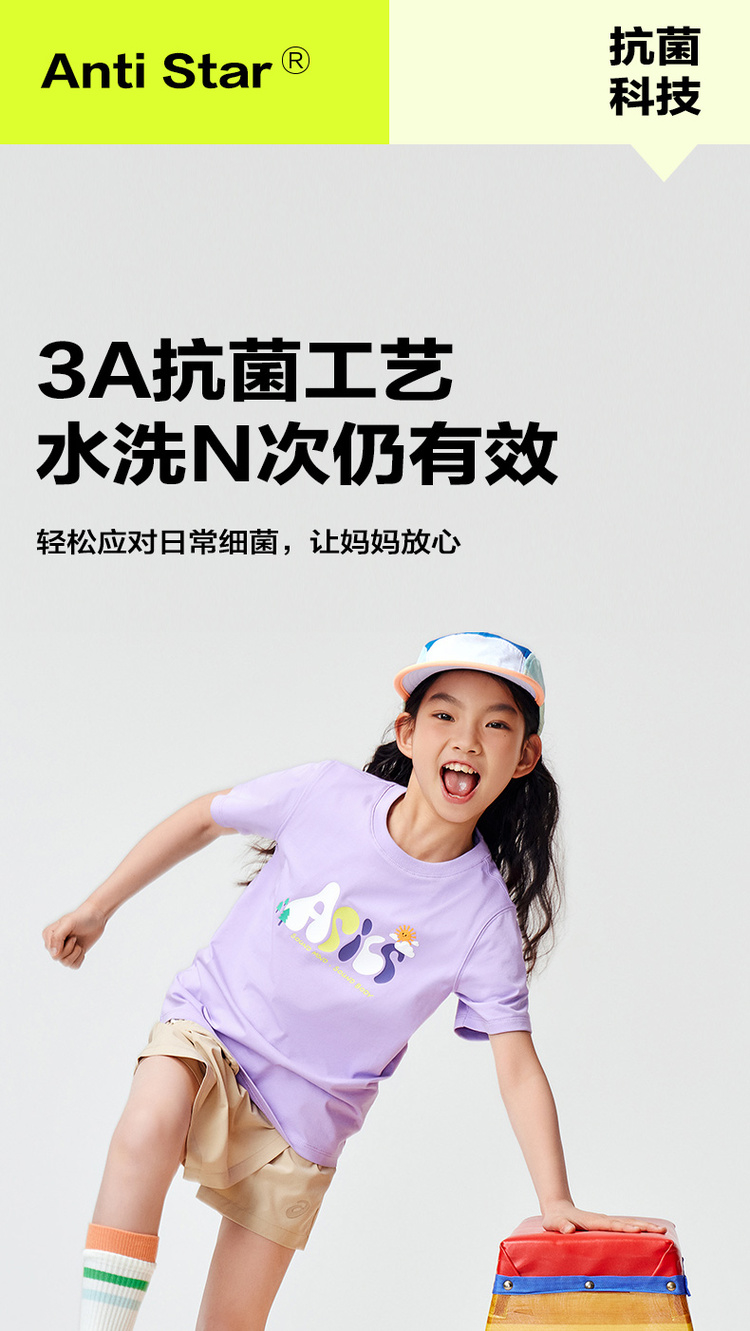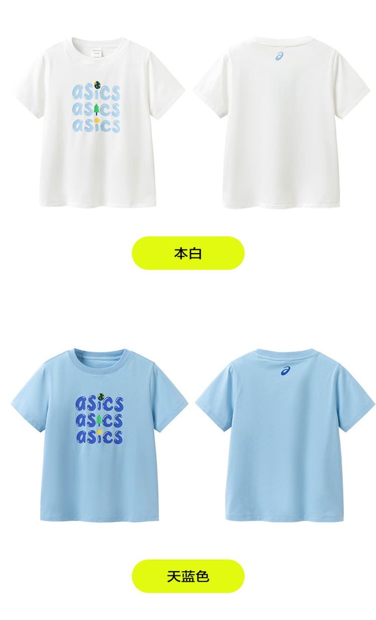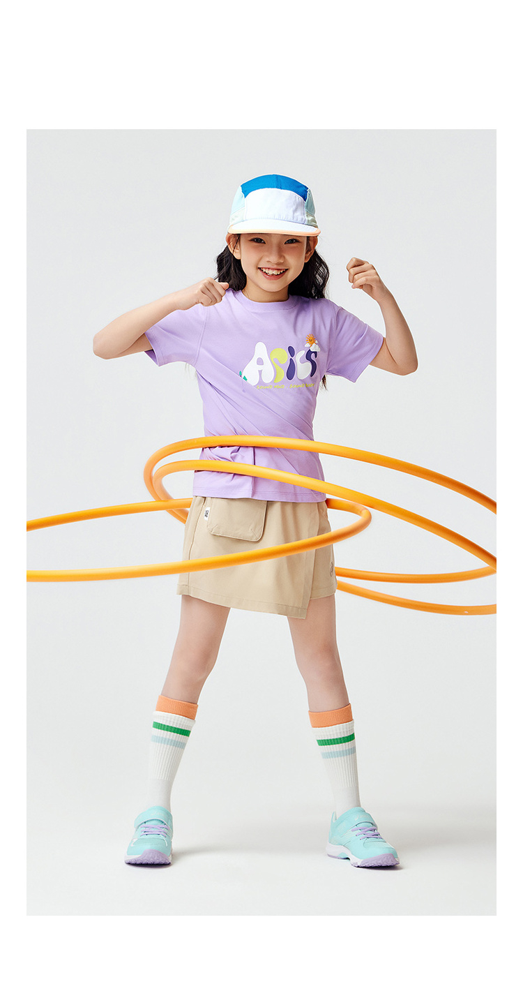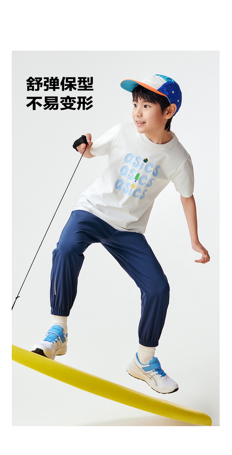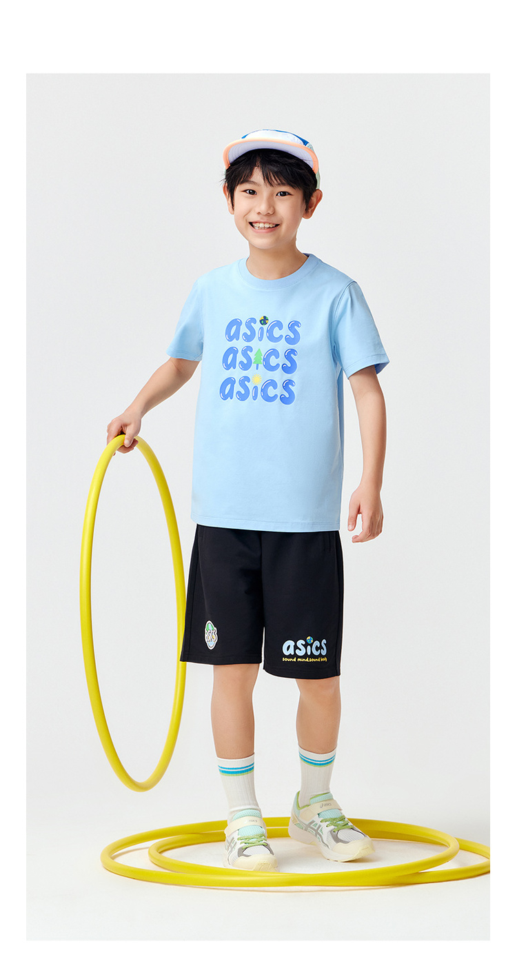 ASICS/亚瑟士童装2024春夏季男女童吸湿速干柔软舒适趣味短袖T恤