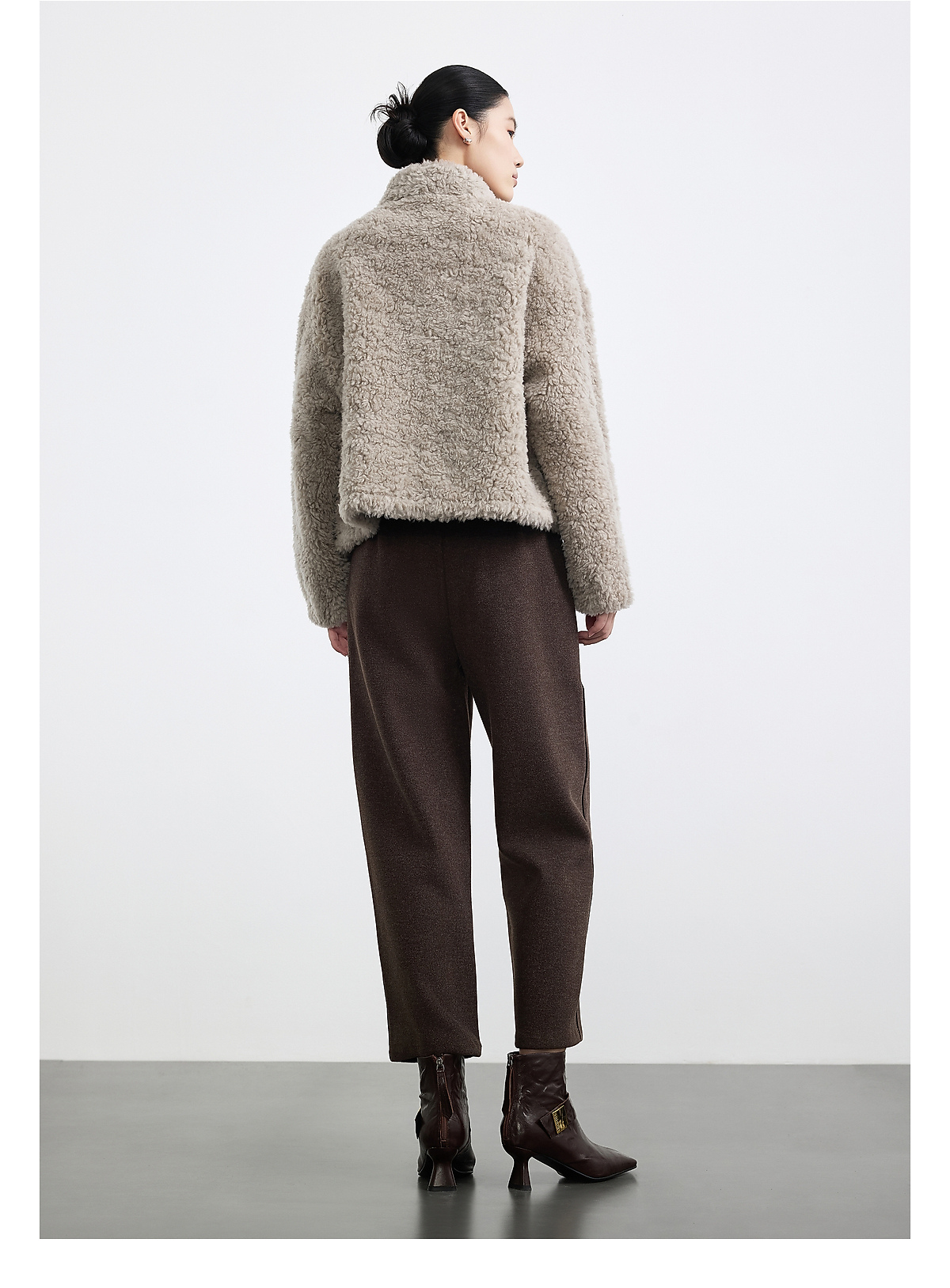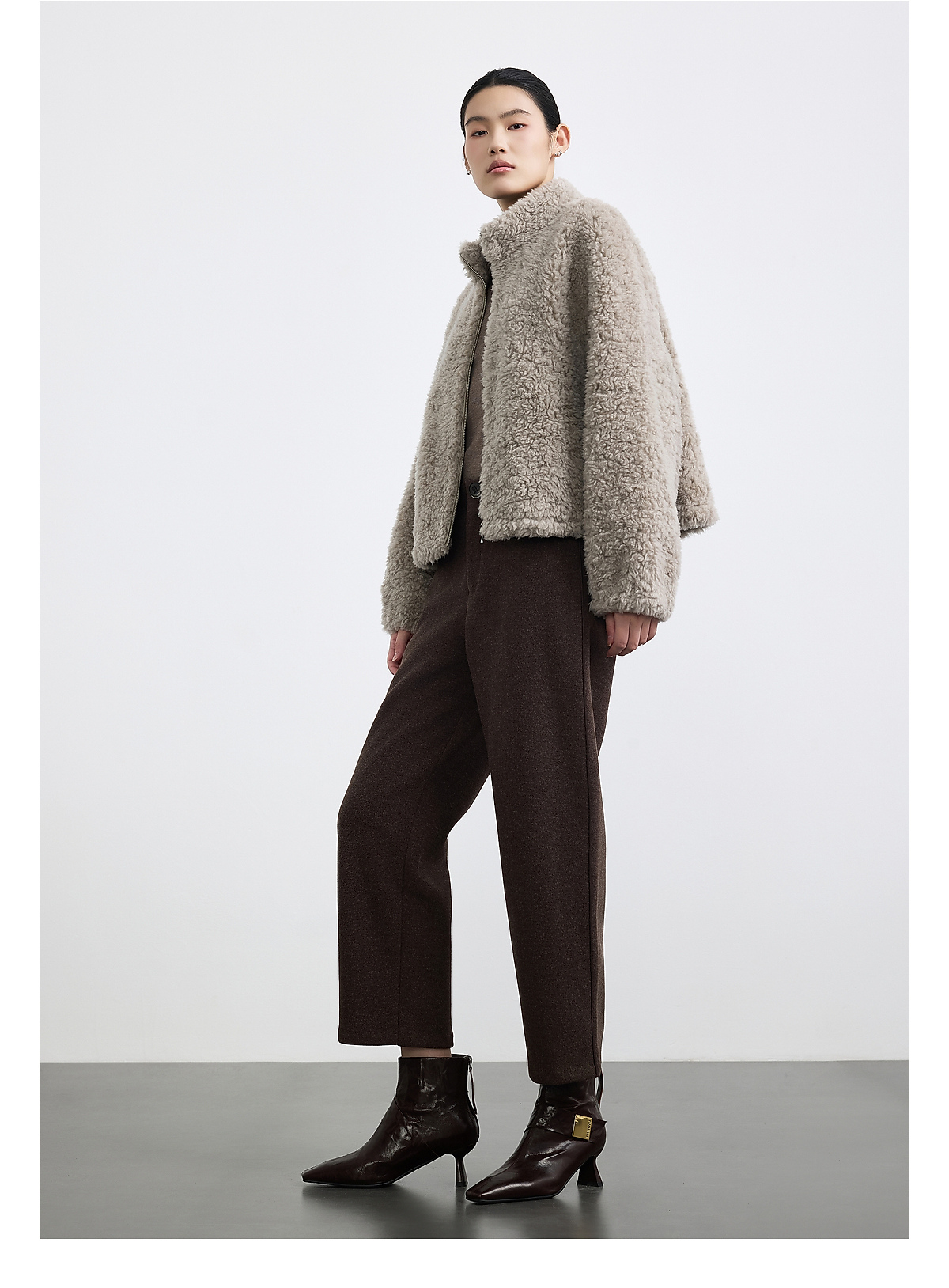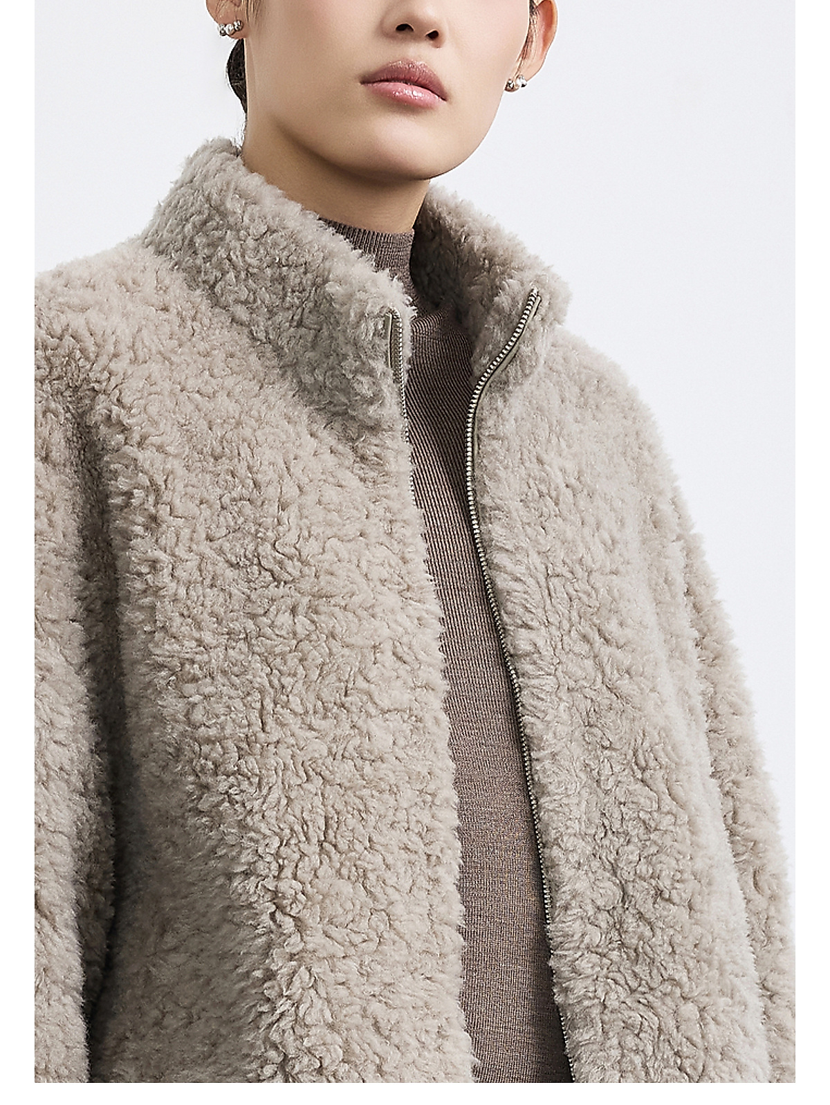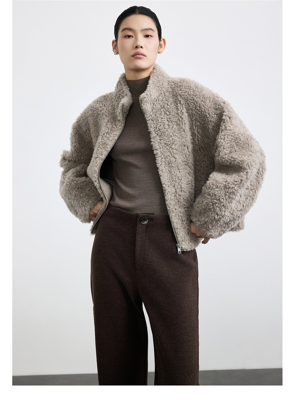 商场同款PURE TOUCH女装25冬新款立领羊剪绒短外套宽松羊毛外套
