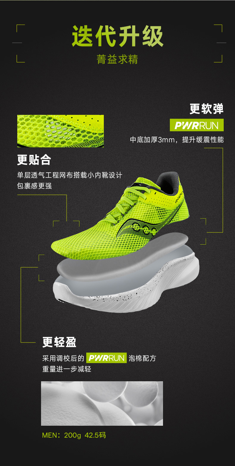 Saucony索康尼KINVARA14菁华K14男女轻便竞速跑步鞋体测中考跑鞋