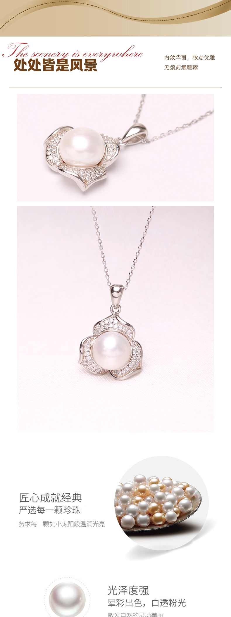 美裕 银925淡水珍珠链坠 9-10mm白 107243