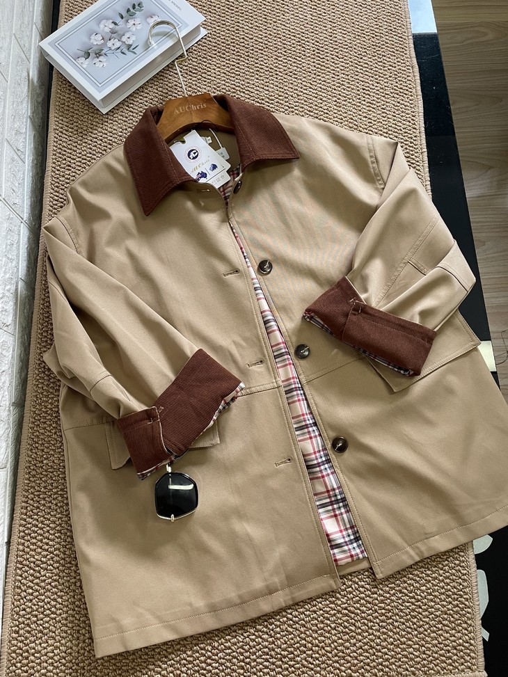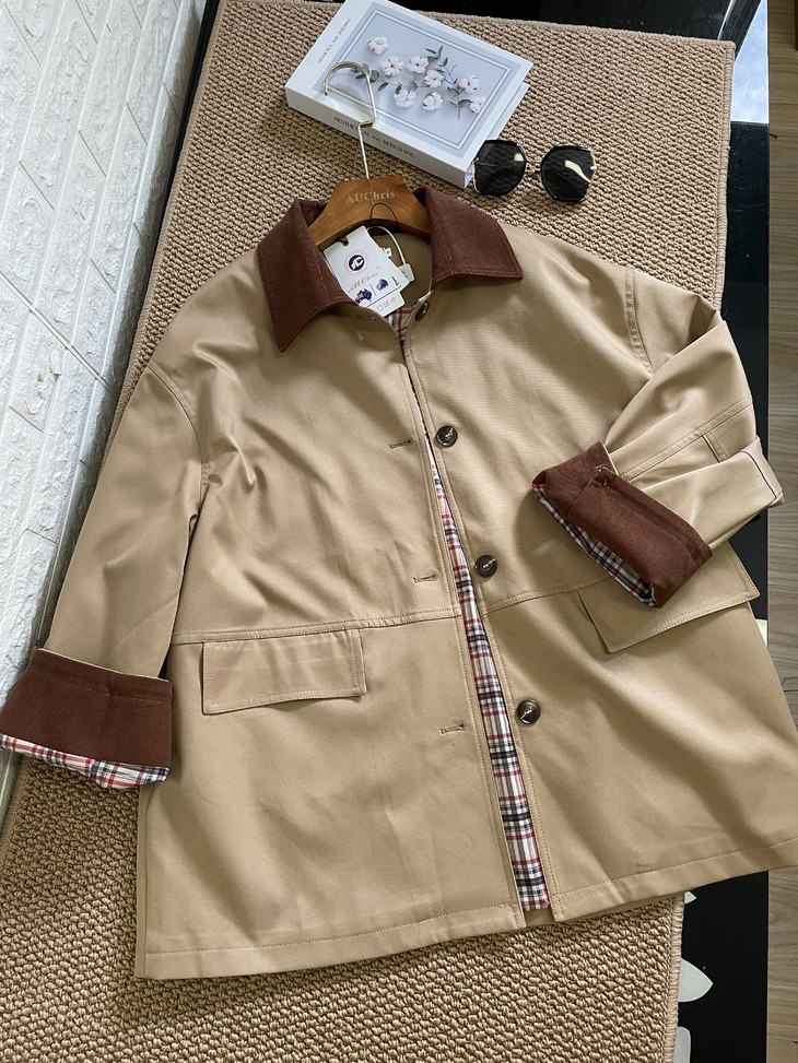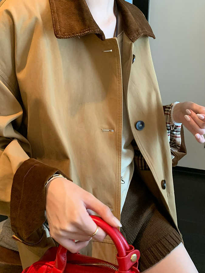 🔥国庆限时破价❗️等了超久的【AUChris奥地利假日高级感灯芯绒拼接风衣外套ACU082613】妥妥的韩系感✨秋冬必不可少的美拉德风衣~