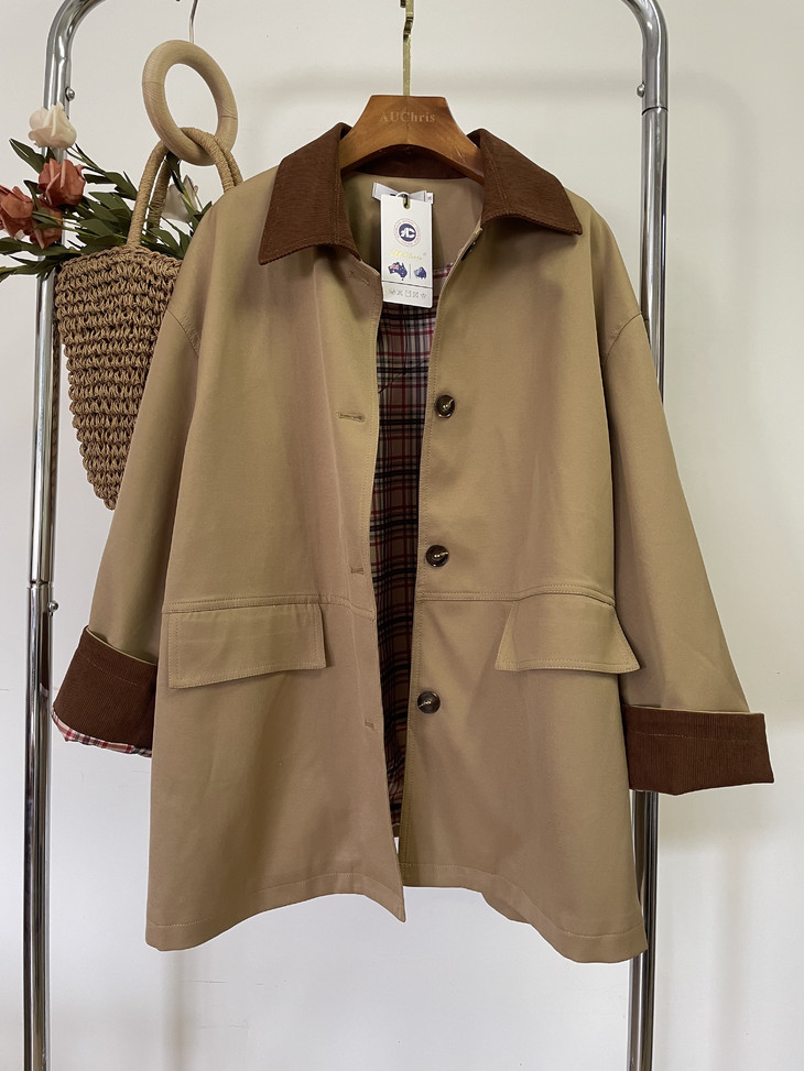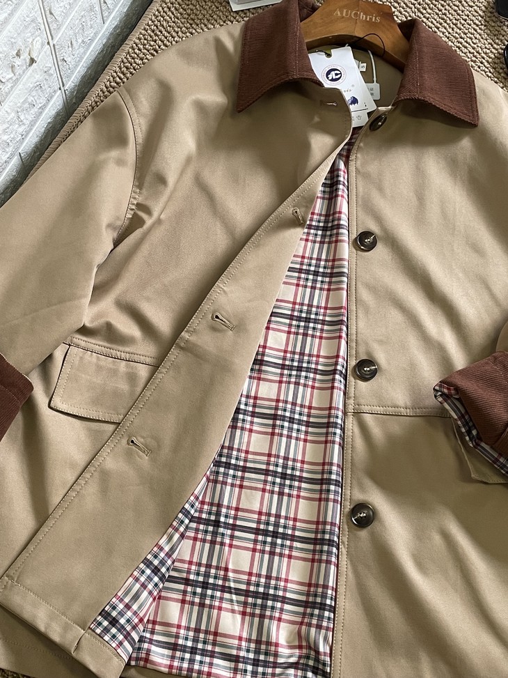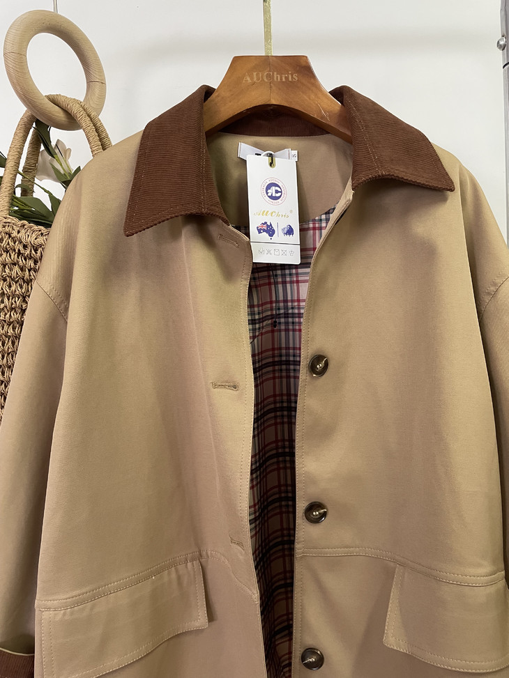 现在超火的巴恩风 核心就是 “松弛不刻意,却透着高级感” 这款风衣完全踩中了这个点! 巴恩风不追求紧绷的造型,讲究 “自在舒适” 这款的宽松版型刚好契合, 穿著不会有束缚感,一举一动都很自在 巴恩风还注重 “质感细节” 面料的挺括、灯芯绒拼接的精致 都符合巴恩风对 “高品质” 的要求 不会让人觉得 穿得廉价~