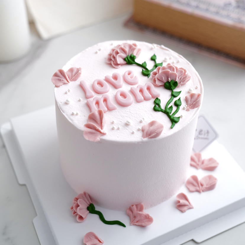 原图love mom 字母是模具做的有立体感,由于4寸直径只有10公分,如果改为汉字或者大于原图字母数量的,默认奶油写字,效果和原图会有不同