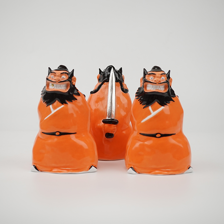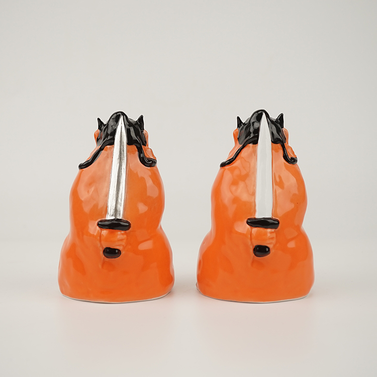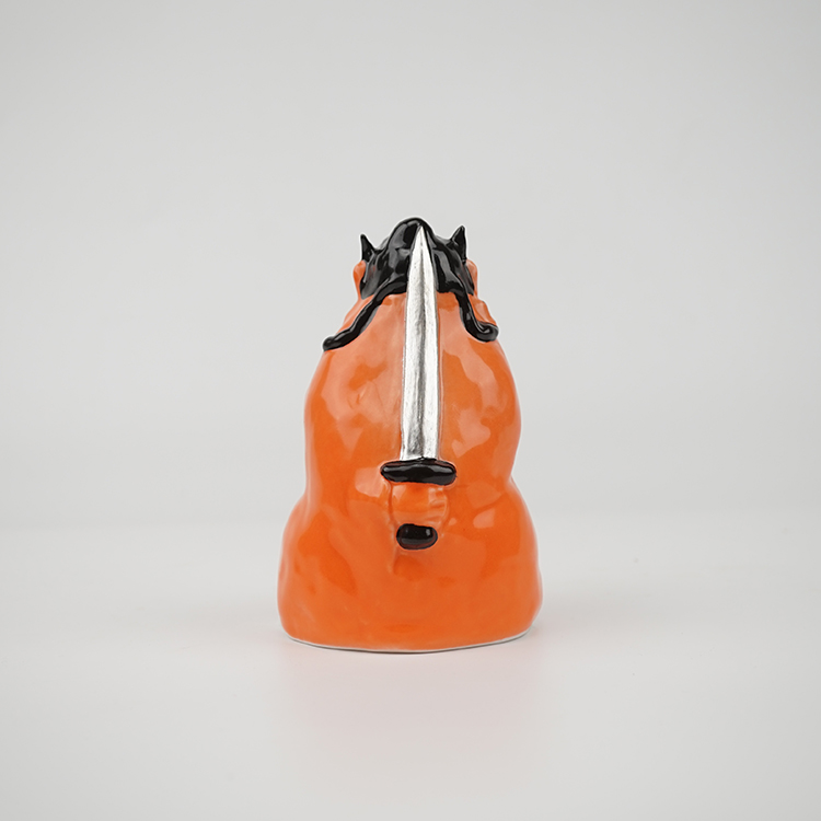薛继业老师以画钟馗著称, 这件陶瓷雕塑钟馗是薛继业老师做的件雕塑钟馗作品。钟馗,是中国道教中能打鬼驱邪的神。旧时中国民间常挂钟馗神像除灾,从古至今都流传着“钟馗捉鬼”的典故传说,也是道教中的神仙之一;他是中国传统文化中的“唐·赐福镇宅圣君”。古书记载他系唐初长安终南人,生的铁面虬鬓,相貌奇异;然而却是个才华横溢、满腹经纶、学富五车、才高八斗的人物,平素正气浩然,刚直不阿,待人正直。 春节时钟馗是门神,端午节时钟馗是斩五毒的天师,为阴曹地府的冥神,其主要职责是专司伏鬼、护佑各路百姓家宅平安。钟馗是中国传统道教诸神中的万应之神,要福得福,要财得财,有求必应。新款釉上彩釉下彩结合手绘超大号背手剑钟馗特大号:高18.5cm宽12cm深11cm特大号与大号尺寸对比超大号、大号、中号、迷你款尺寸对比小号迷你款另外链接购买:大号背手剑钟馗大号:高12.5cm-13.2cm宽8cm深6.5cm居家摆放钟馗像一般在正对进户门或进院门的内侧合理位置;客厅的中堂;居室中朝向窗户的位置;餐厅中的主要位置;其他正对煞气和需要赐福的位置;如布置钟馗香案应按正神安置;在厨房、厕所、贮藏室等一般不宜悬挂钟馗像。金牙银剑定制(金牙部分为真金)