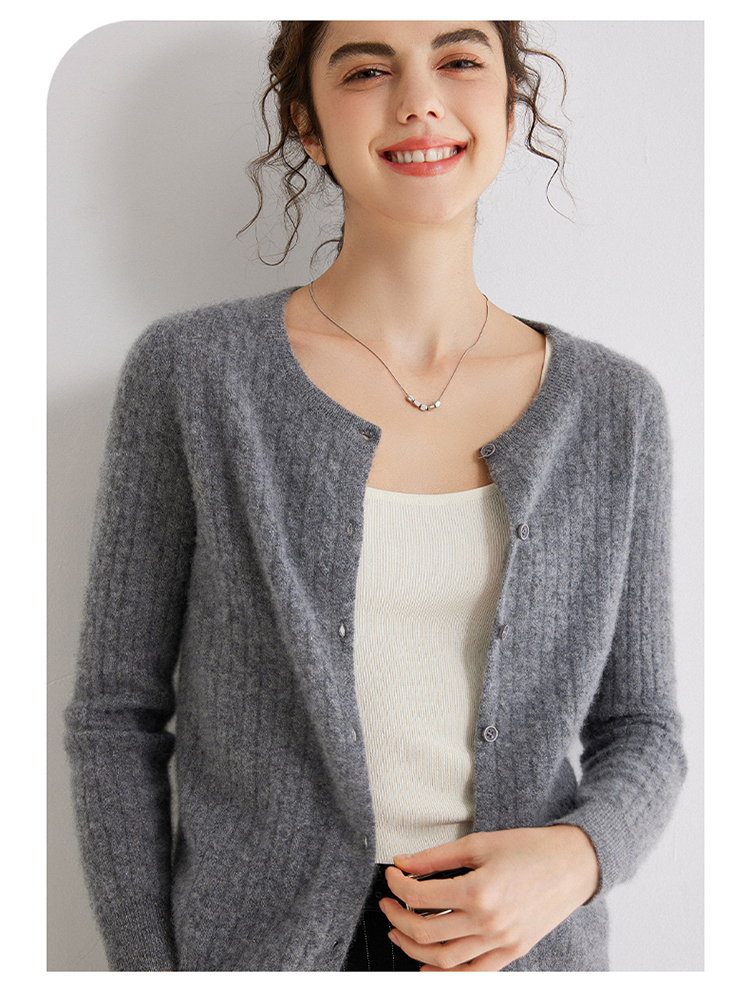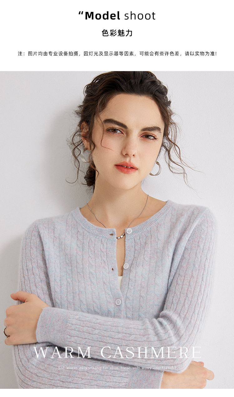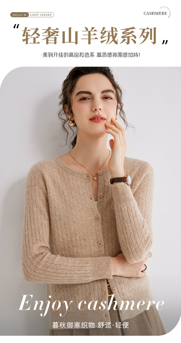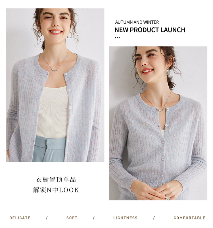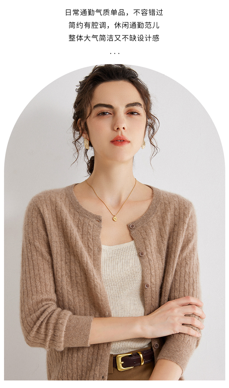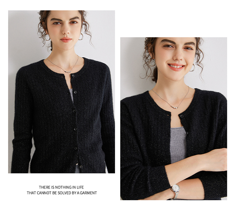 Avann阿曼衣金丝扭花羊绒开衫MY003