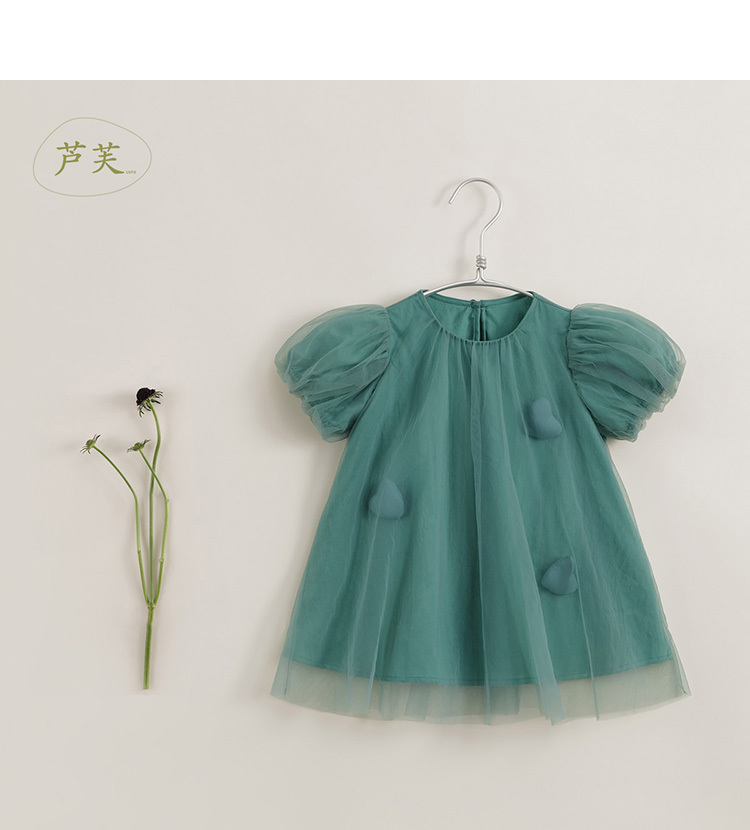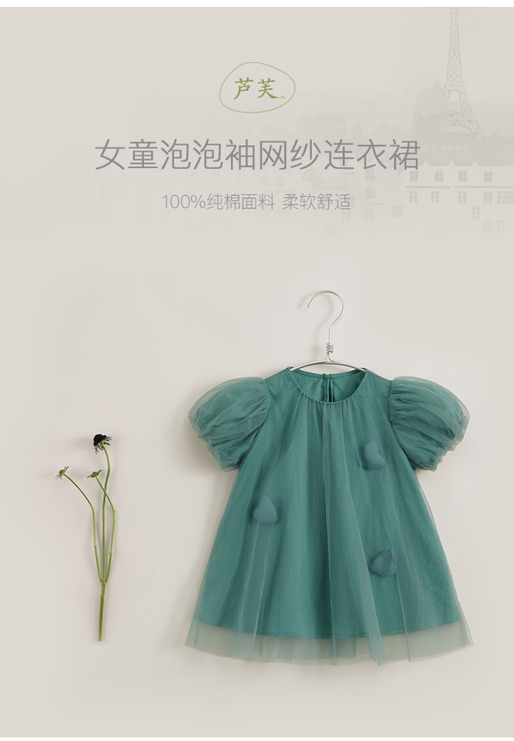 【马克珍妮 芦芙】新款夏装 女童泡泡袖网纱连衣裙230779