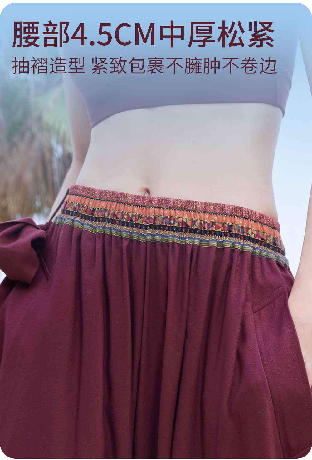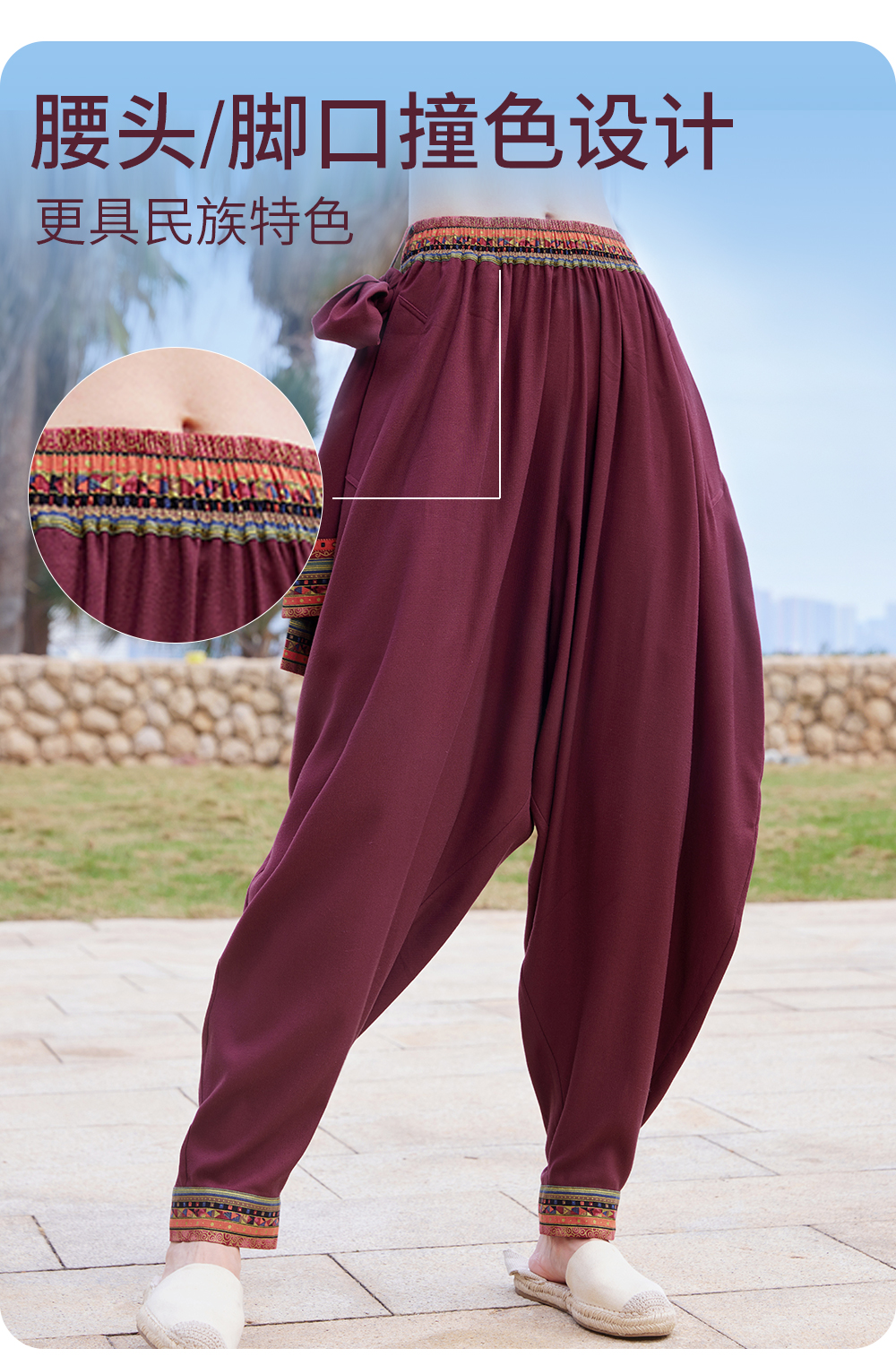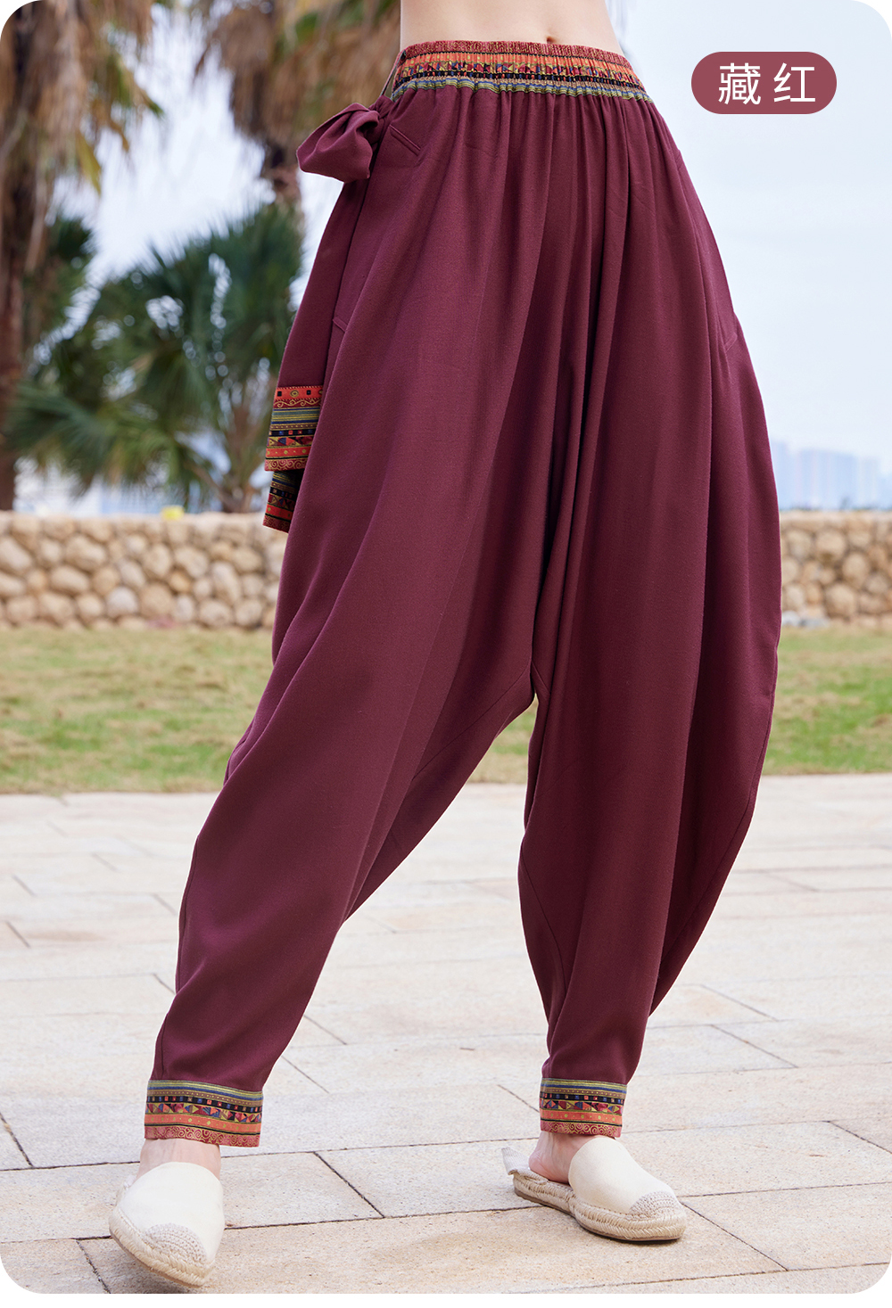 FM14929【男女同款】禅风棉麻系带灯笼裤