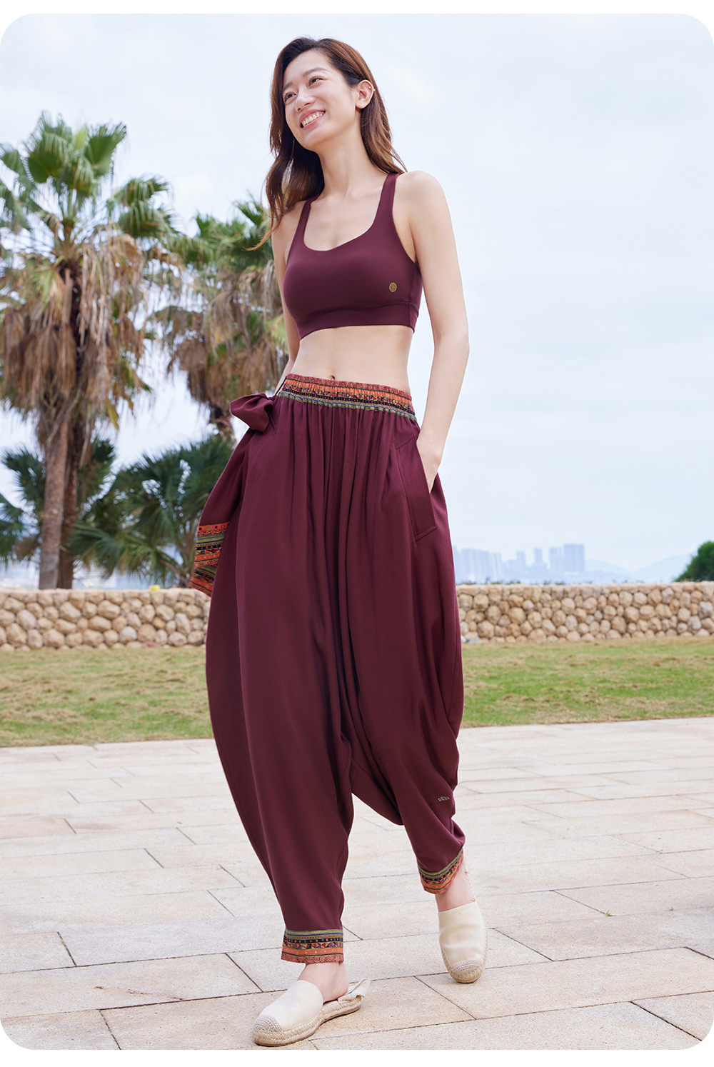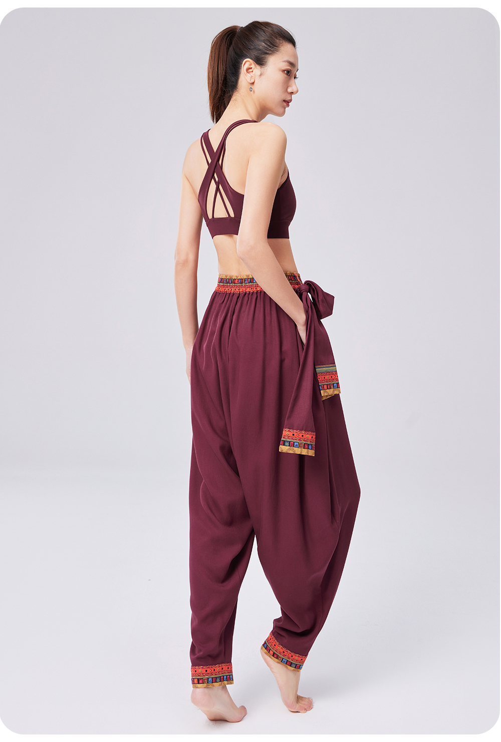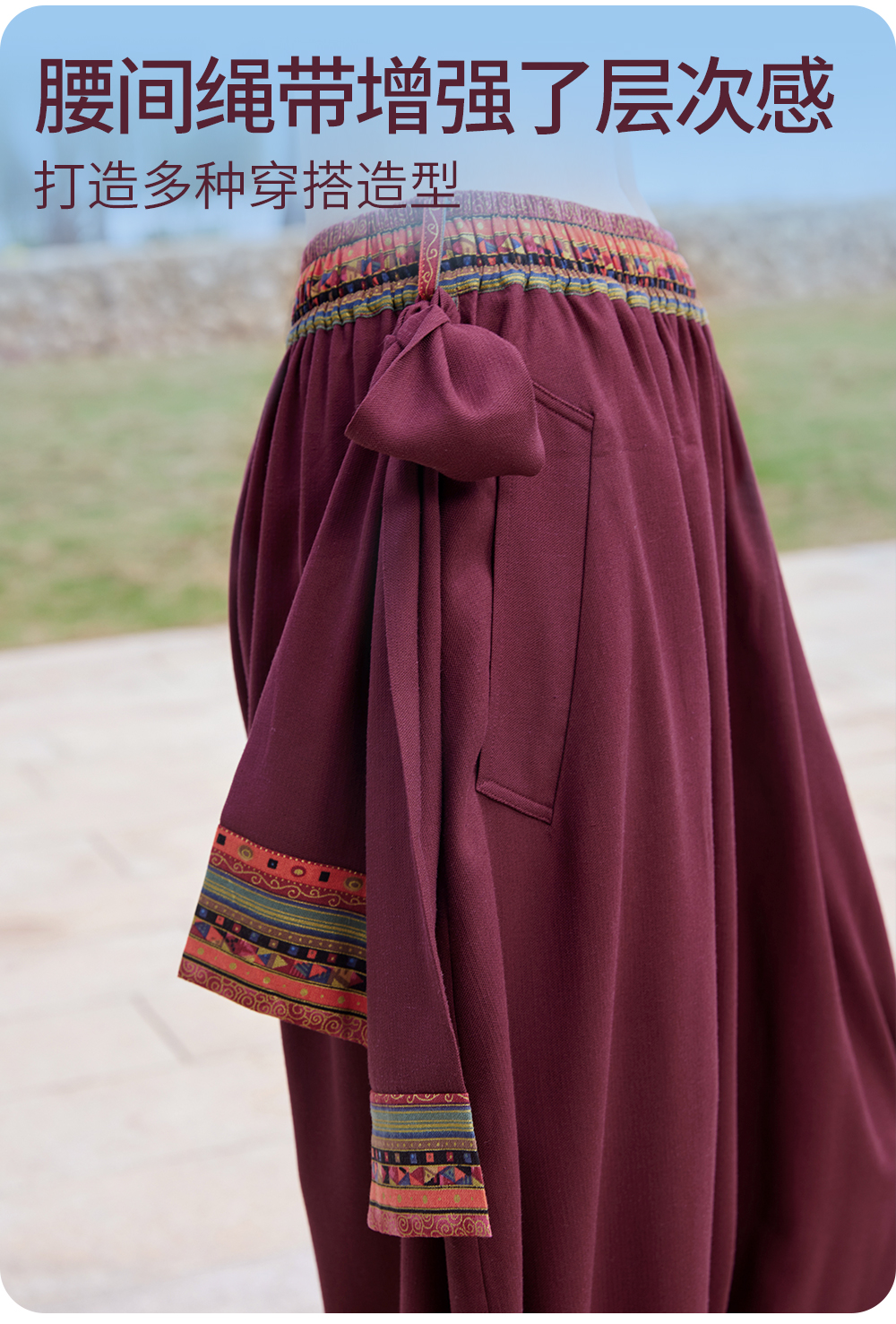 FM14929【男女同款】禅风棉麻系带灯笼裤