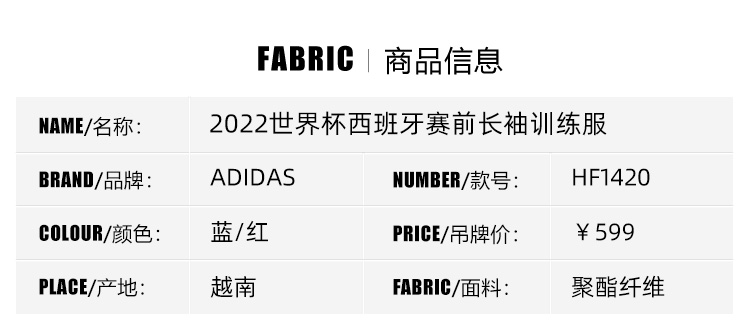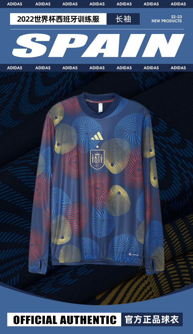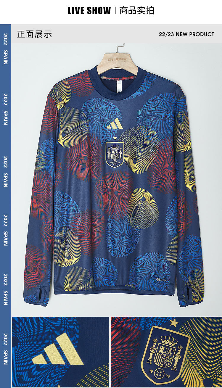 SFS阿迪达斯Adidas正品2022西班牙世界杯长袖拇指扣热身训练服HF1420