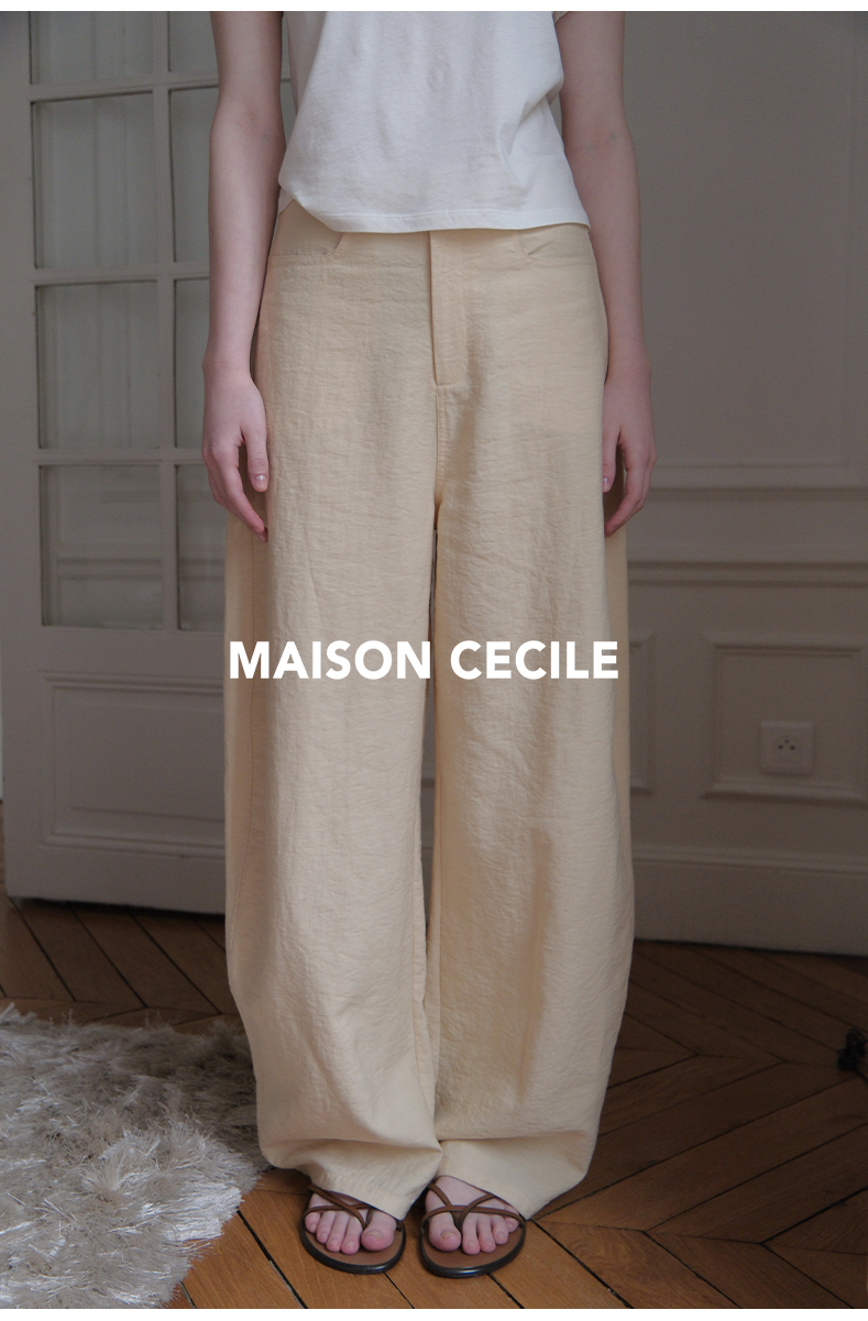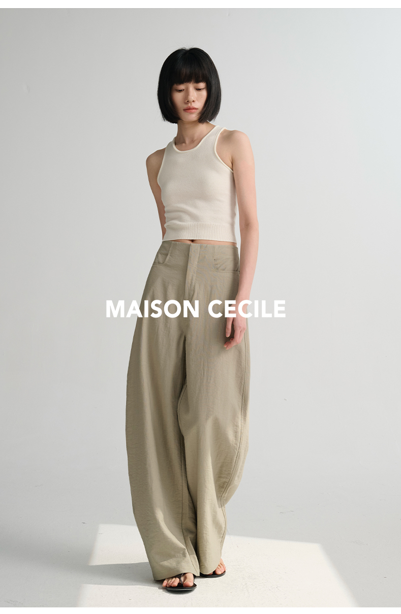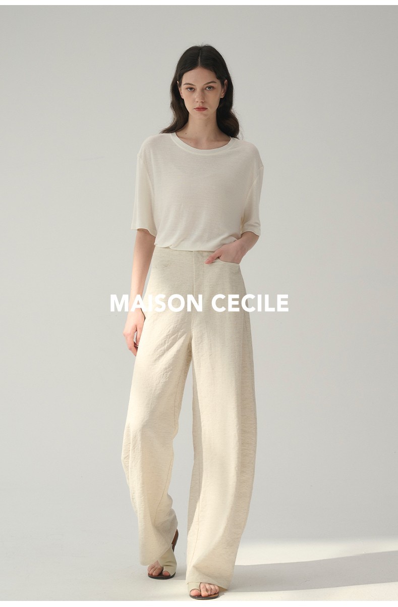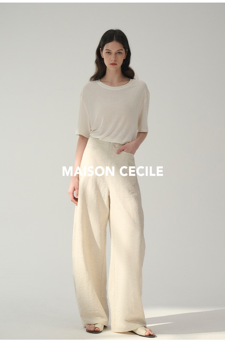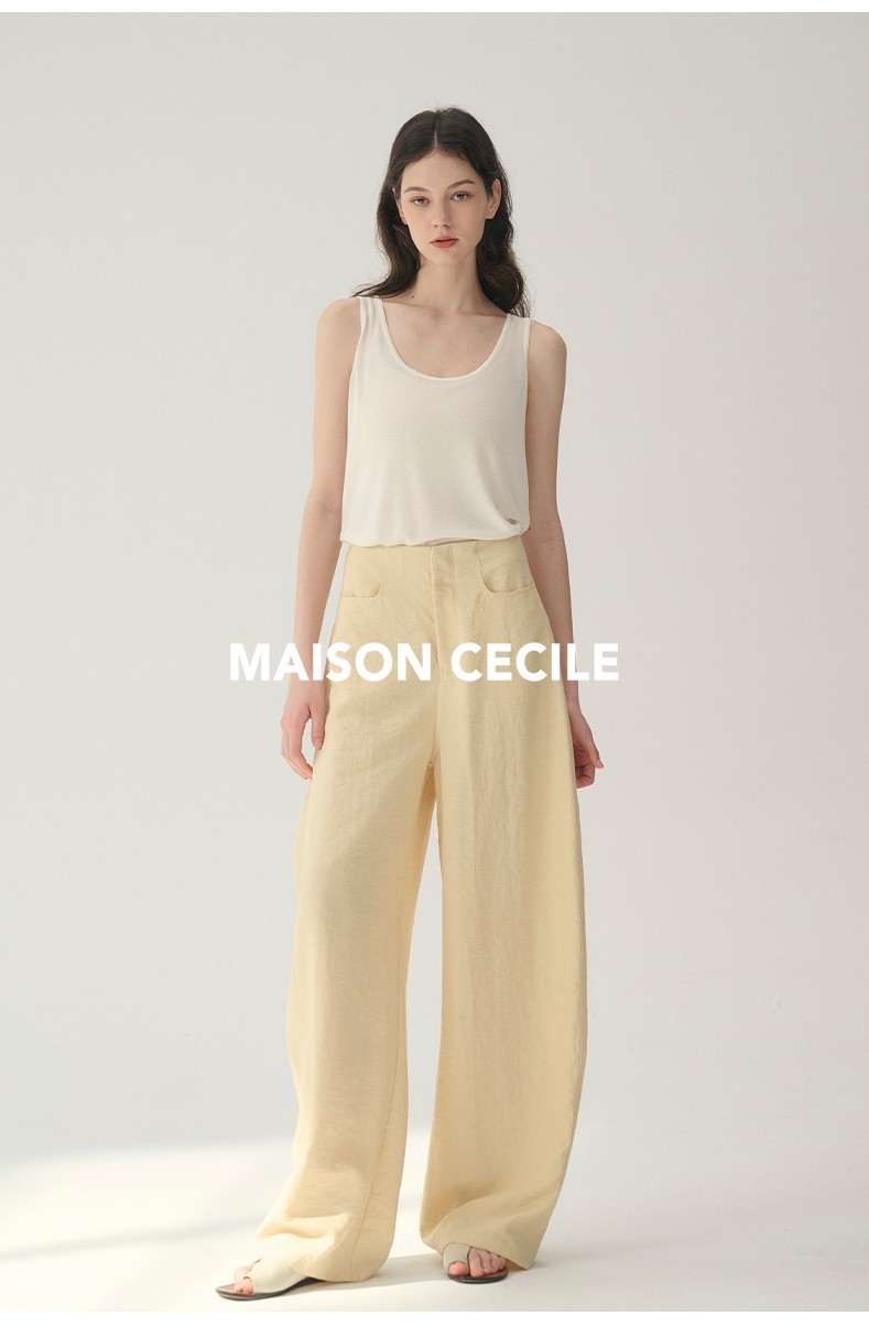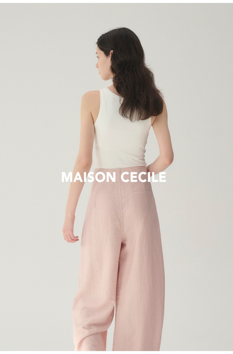 MAISON CECILE 多色/亚麻舒适百搭立体显瘦镰刀弧形裤