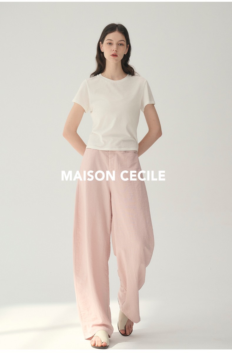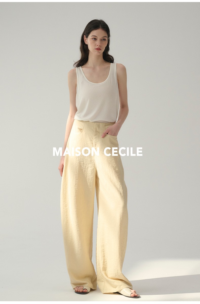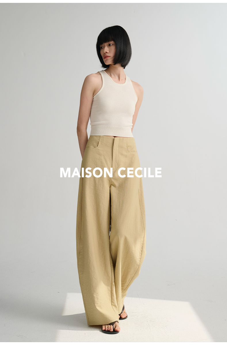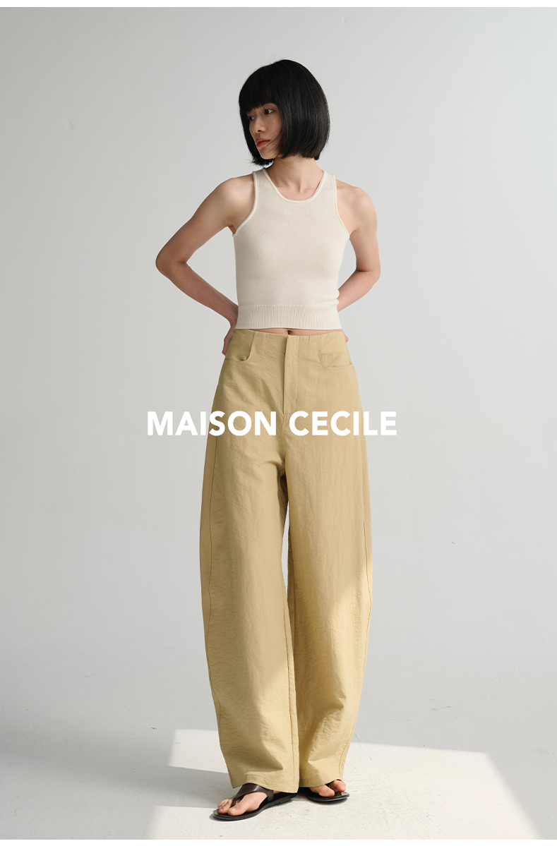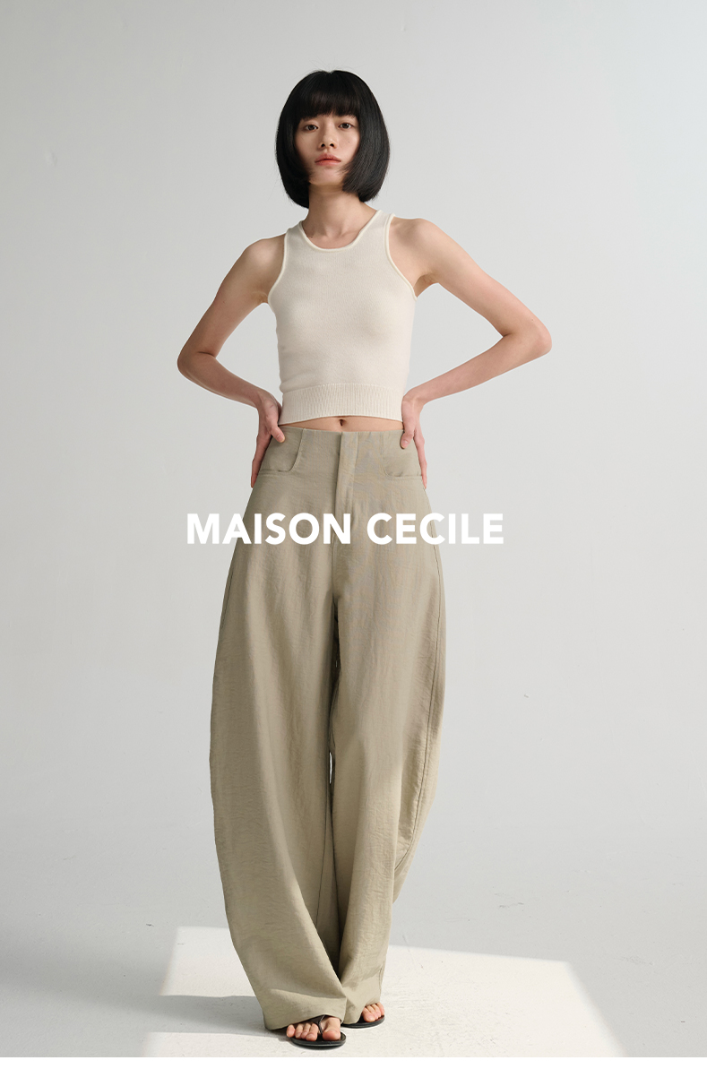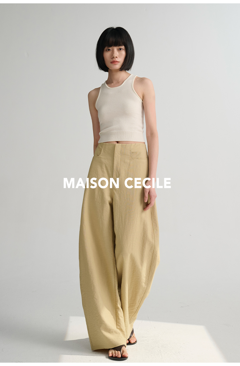 MAISON CECILE 多色/亚麻舒适百搭立体显瘦镰刀弧形裤
