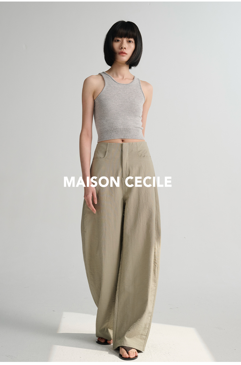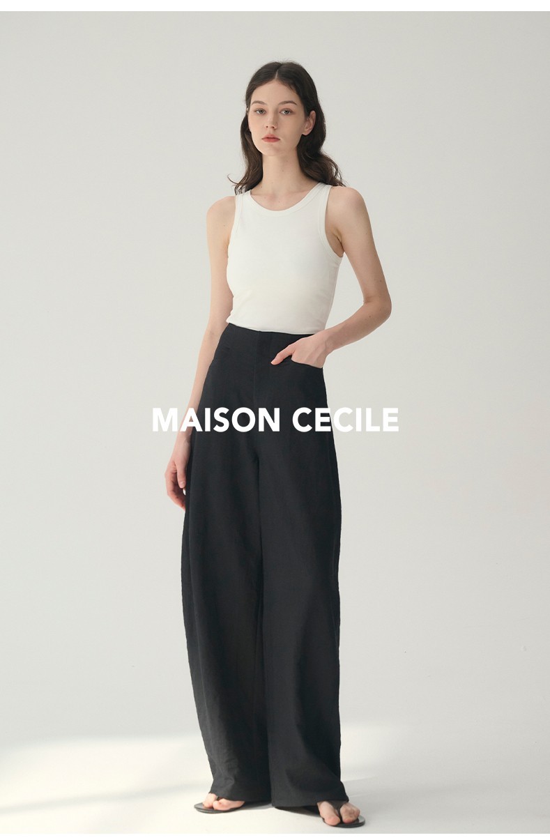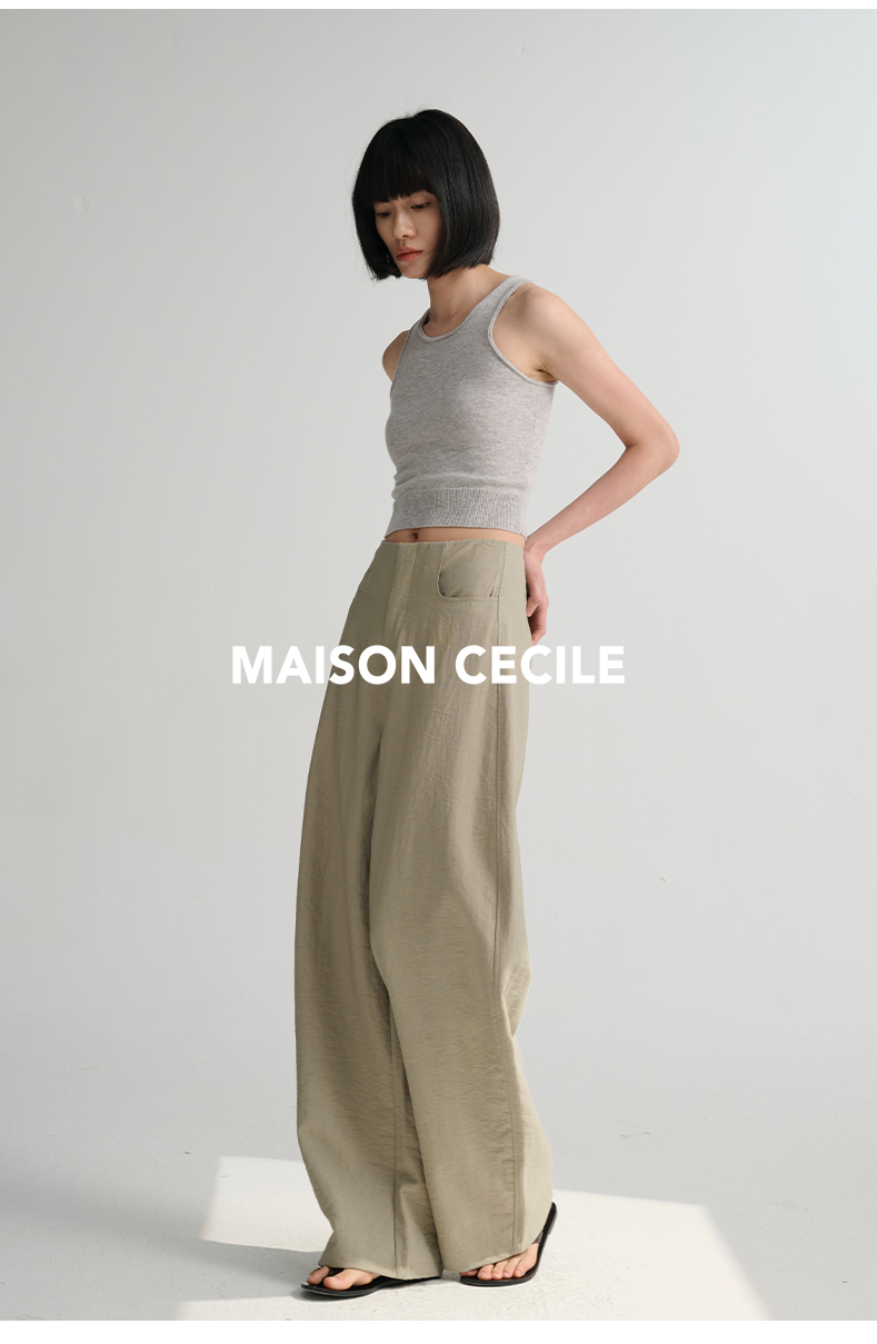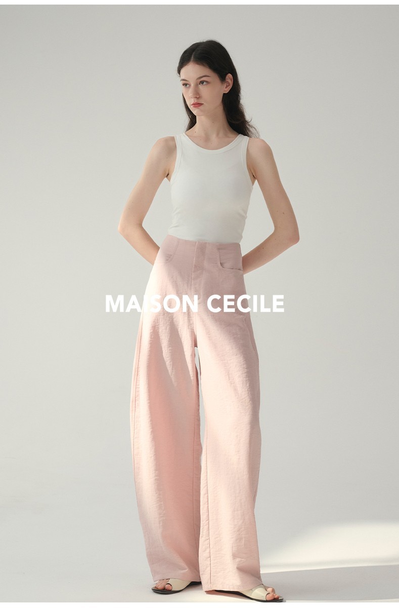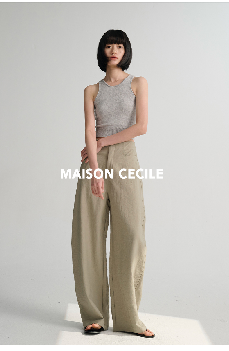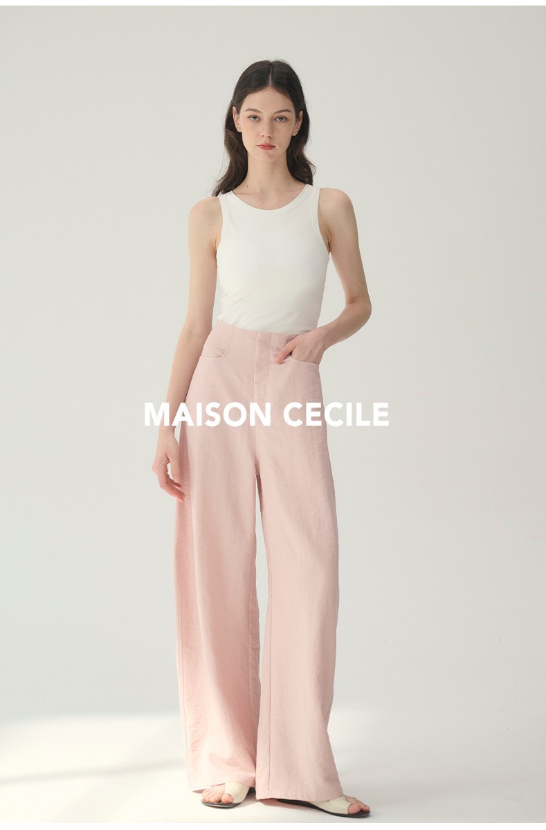 MAISON CECILE 多色/亚麻舒适百搭立体显瘦镰刀弧形裤