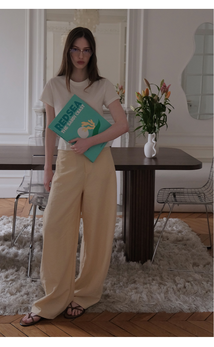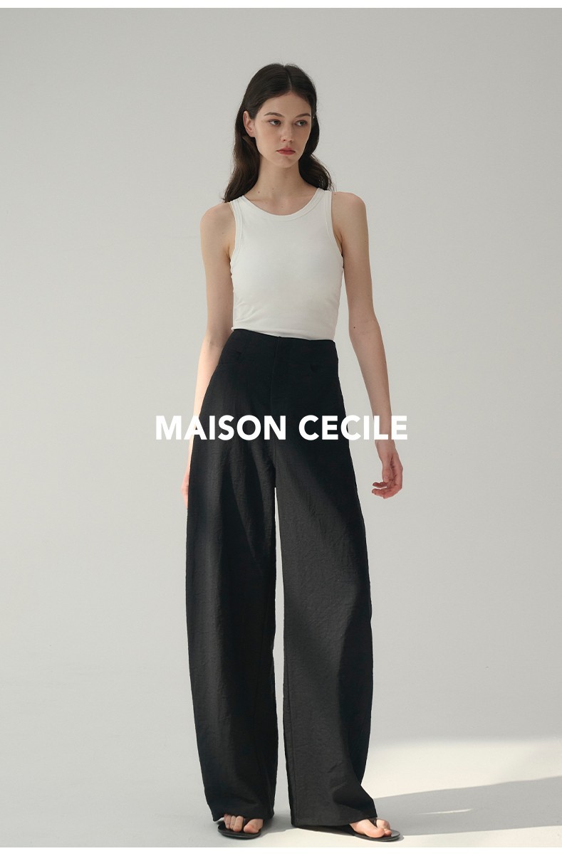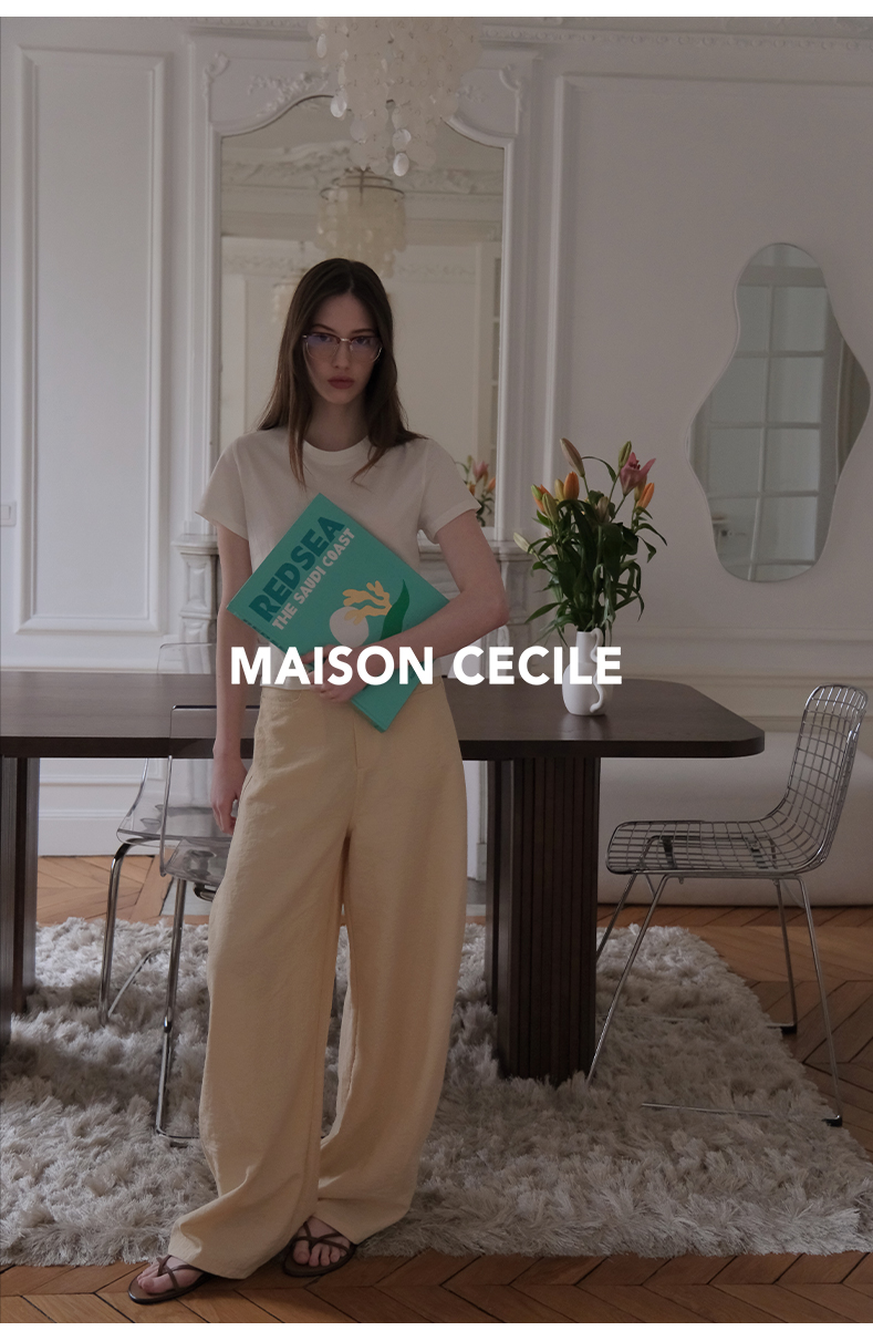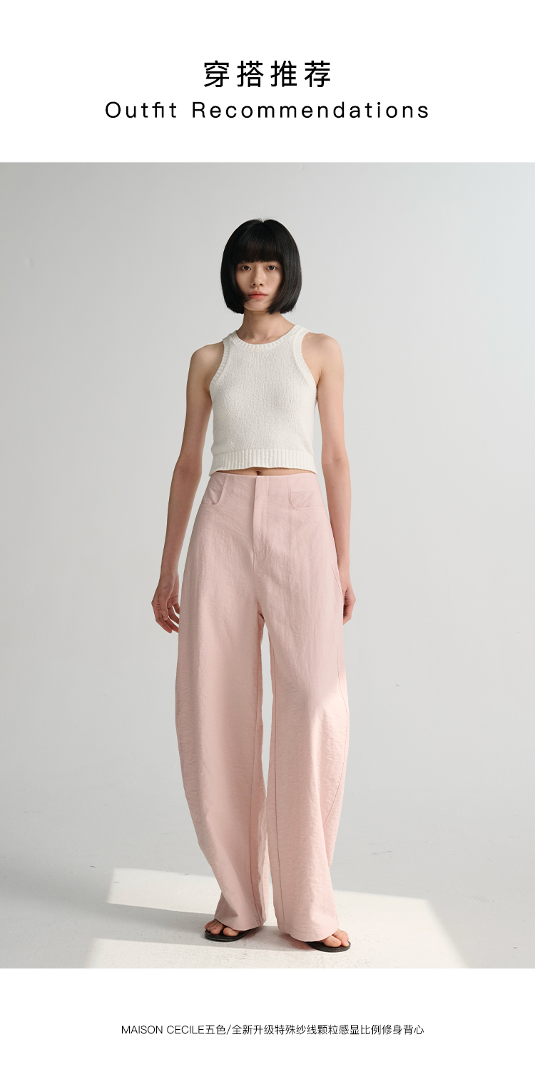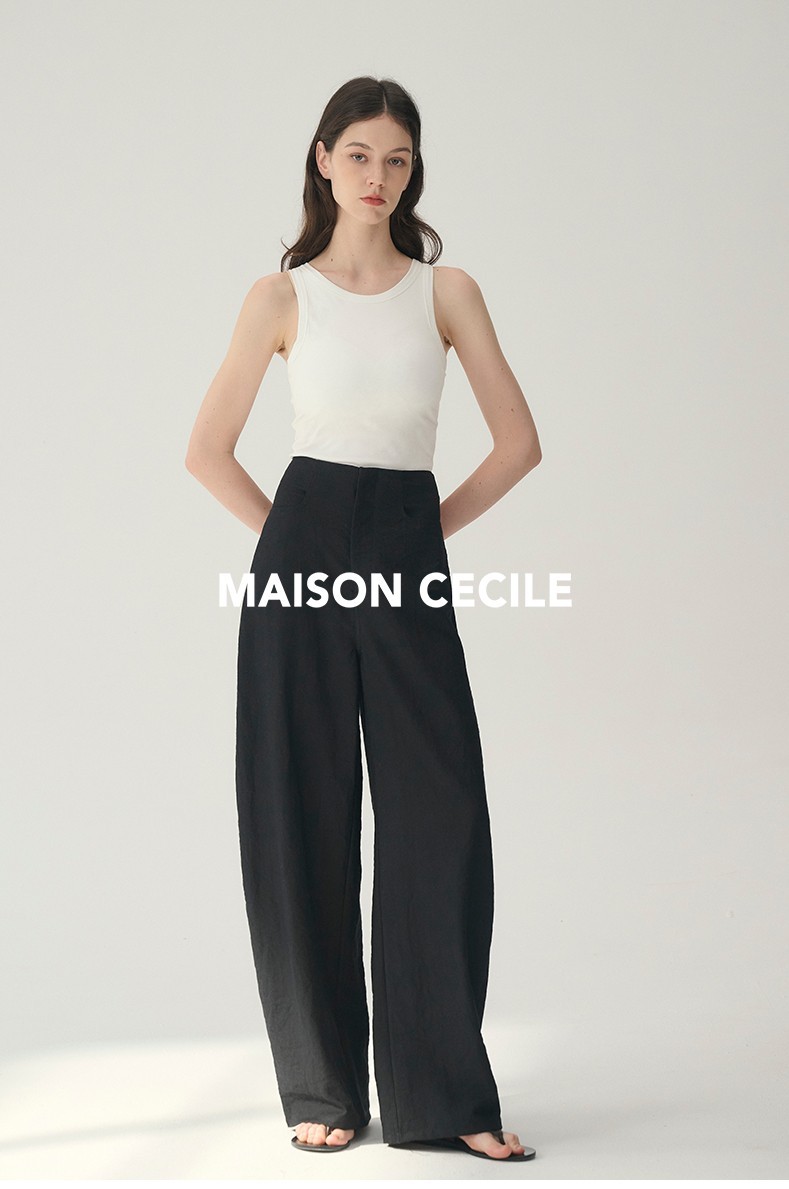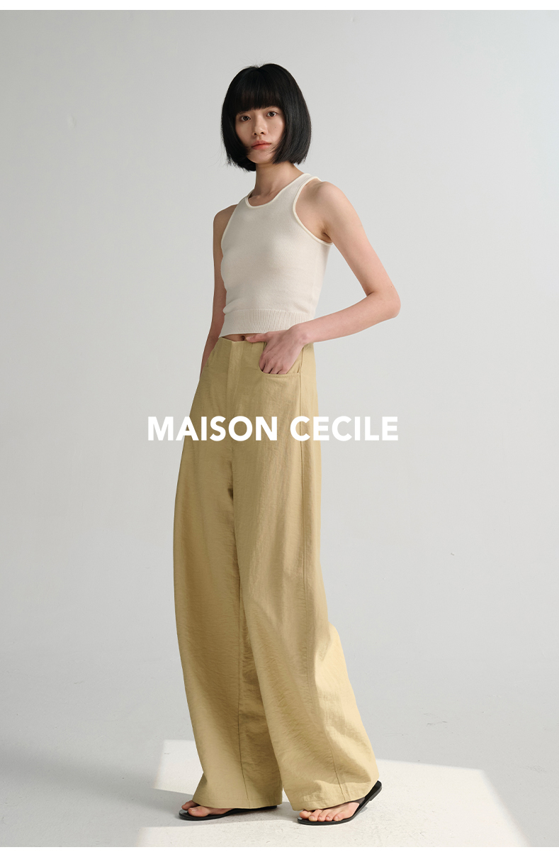 MAISON CECILE 多色/亚麻舒适百搭立体显瘦镰刀弧形裤
