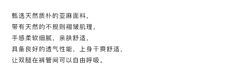 用松弛的裁剪与天然的面料,书写简单生活的诗意,让衣物回归「穿着」本身,打造独一无二的个性衣橱。