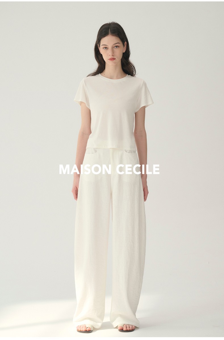 MAISON CECILE 三色|天丝羊毛混纺百搭柔软亲肤圆领正肩显瘦T恤