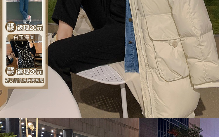 鲁克林白色白鸭绒长款羽绒服冬新款加厚防寒外套女圣诞
