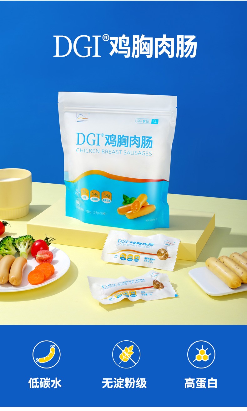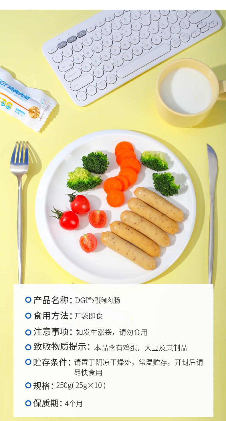 DGI低脂鸡胸肉肠即食鸡肉肠高蛋白无淀粉健身代餐饱腹零食解馋 海盐黑胡椒味 250g