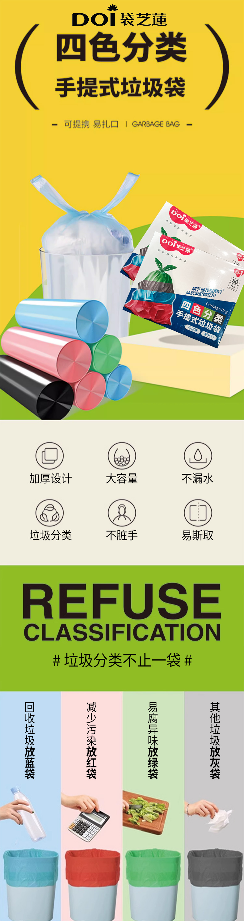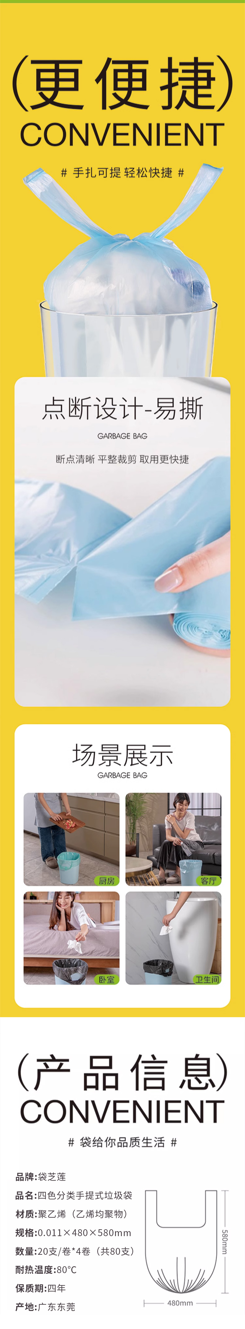 袋芝莲四色分类手提式垃圾袋20只*4卷